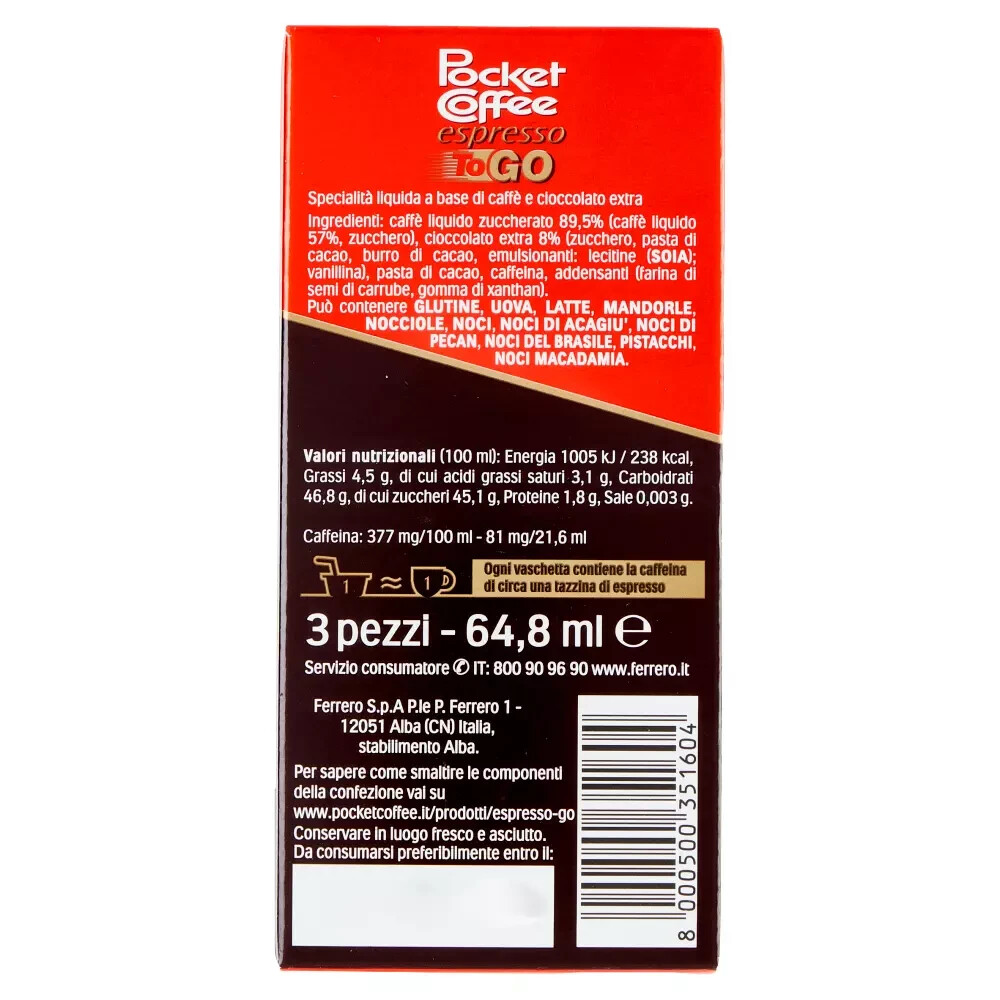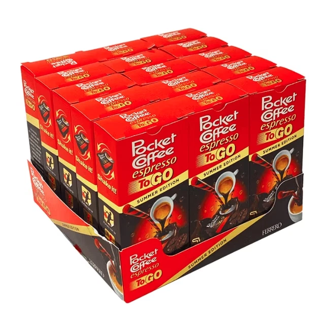 ✅ Ferrero Pocket Coffee To Go Summer Edition Fresh Italy Imported 75g / 2.6oz 3 Servings Pack ✅ Ferrero during the summer stops production for the Regular Pocket Coffee because melting and replaces it with the To go Liquid Summer Edition. ✅ Avoid buying the Pocket Coffee regular version during the summer they not only melt but you will most likely buy an expired product. ✅ Our products are never stored in hot warehouses, they are kept in temperature controlled rooms to preserve them. ✅ We ship our products in our special Fast-Shipping packaging to guarantee protection against heat and rain. ✅ We ship out all orders fast to guarantee freshness so you can enjoy your order right away. ✅ Our products are fresh and never old stock. Note: Expiration Date on boxes in European format: DD/MM/YYYY. ALL ORDERS PLACED BEFORE 3PM CT MON/FRI AND BEFORE 11AM CT SAT WILL BE SHIPPED OUT SAME DAY! WE ARE FAST-SHIPPING! Liquid Espresso Coffee to go. From 1968 Italians love it. Carry authentic Italian espresso in your pocket on the go! Enjoy an Italian moment with Ferrero Pocket Coffee that invigorates your spirits. Its strong taste blends perfectly with the fine sweetness of the chocolate. After lunch, at work or on the road, you can enjoy an invigorating break with this coffee candy to recharge your batteries. Taste coffee from its chocolate side. Ferrero Pocket Coffee for any occasion when that little caffeine boost and chocolate love is needed! The perfect gift! At Work! During long hours for that last meeting! When Exercising! To give you extra energy for the final push! When Studying! That last chapter won't read itself! When Traveling! When those flight connections hunt you!