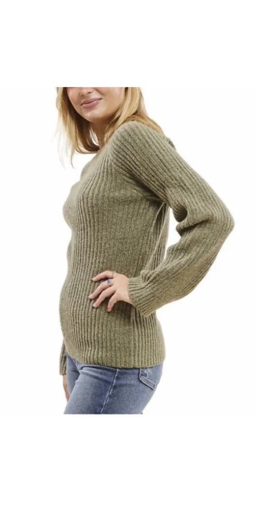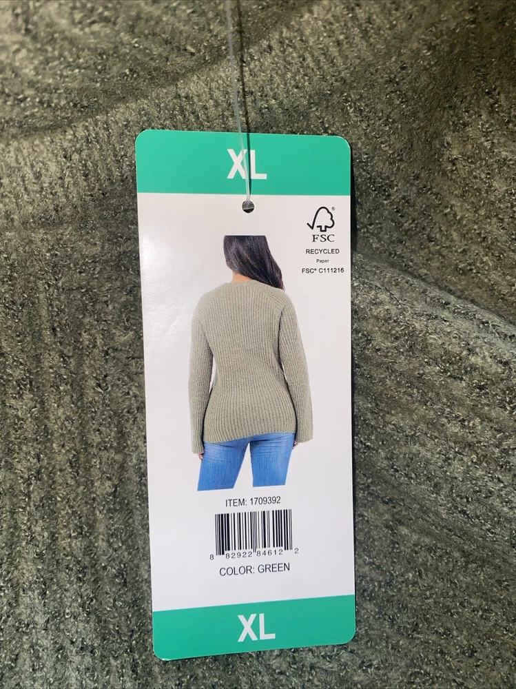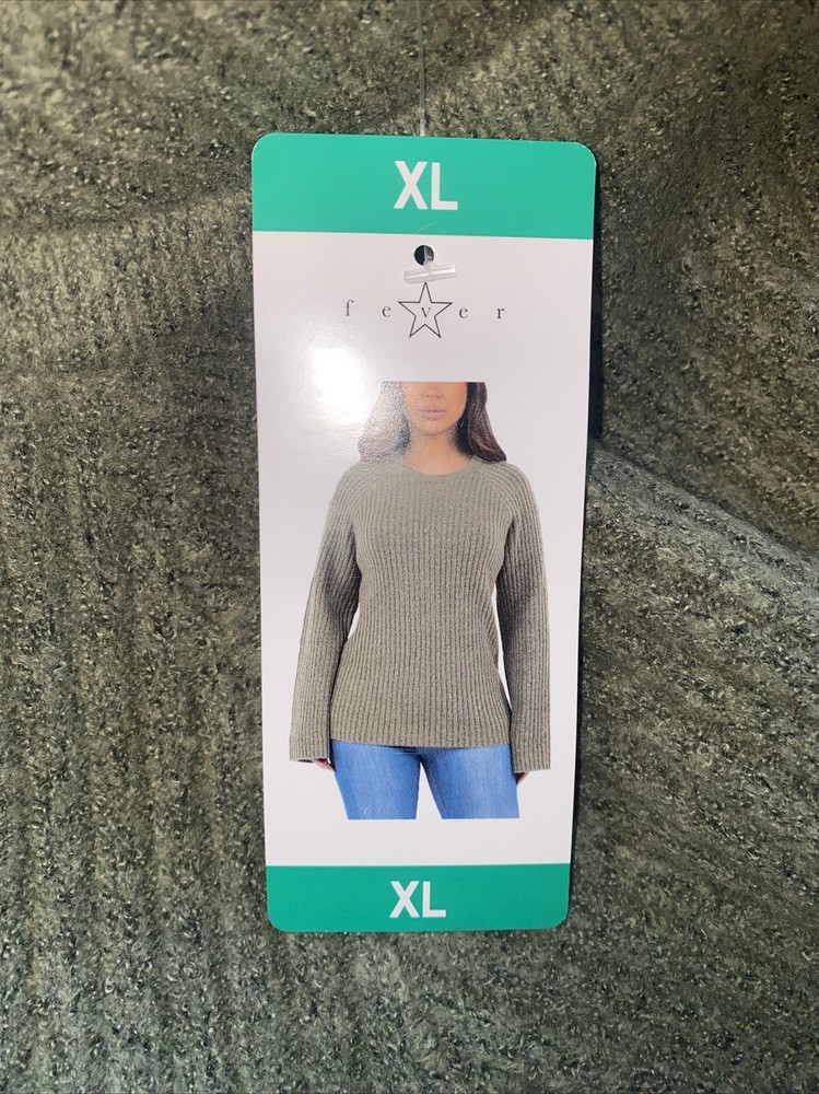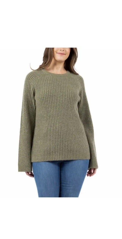 Fever Womens Sweater Green Ribbed Crewneck Long Bell Sleeves Soft Cozy XL |B6. Condition is New with tags. Shipped with USPS Ground Advantage....