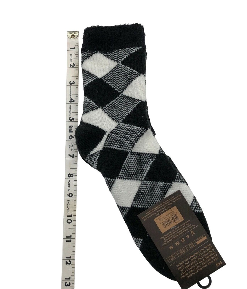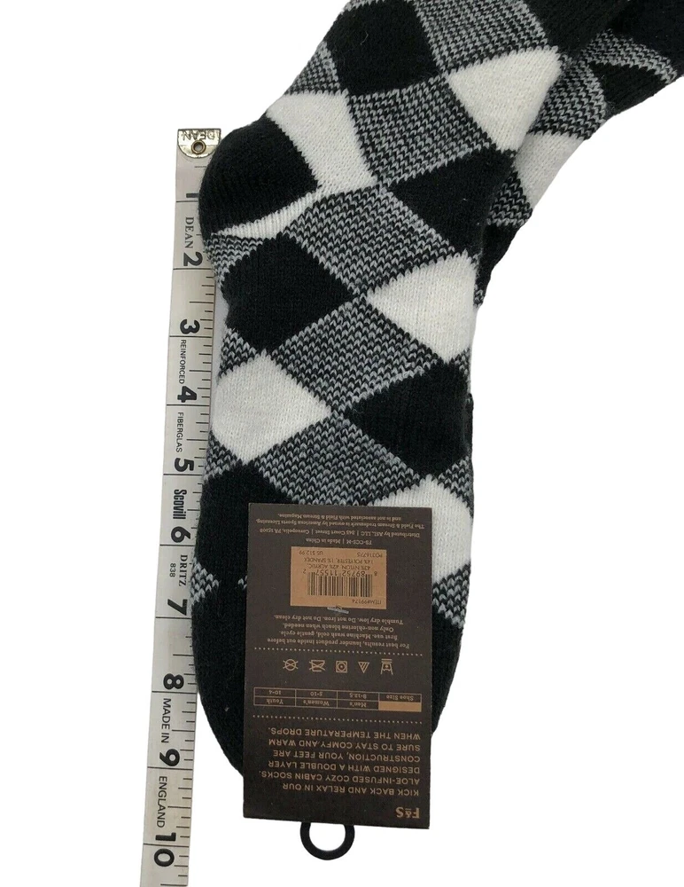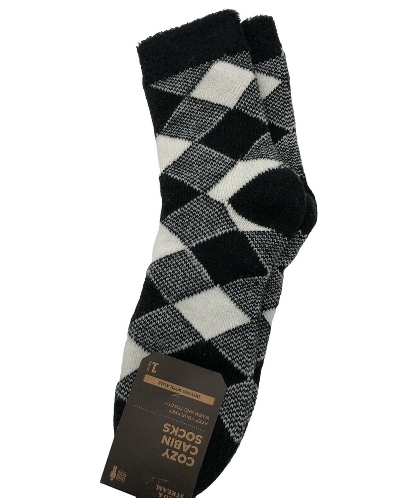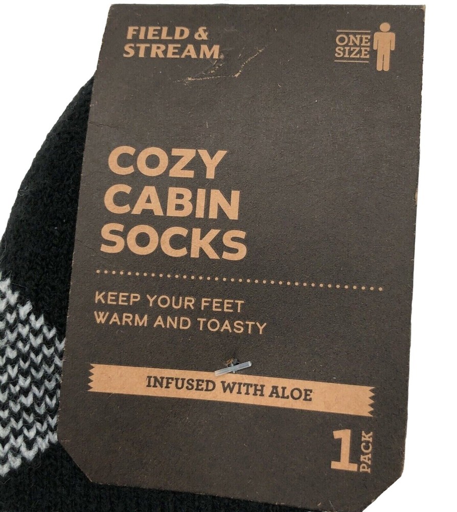 New with tags Field & Stream Cozy Cabin Socks Men's Fit Shoe Size 8-12.5 Women's Fit Shoe Size 5-10 Crew socks Black & White Very thick and double layered Comfortable & warm. Infused with aloe, making them soft and soothing. Nylon, acrylic, polyester, spandex Machine washable