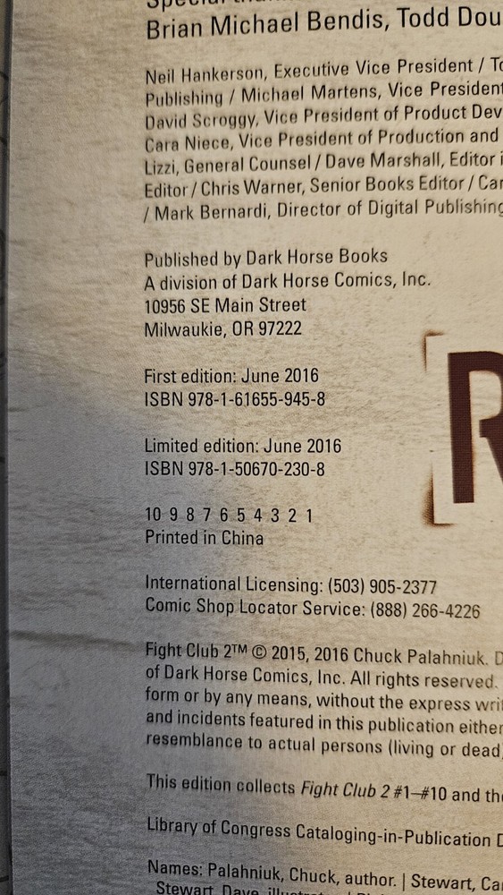 Fight Club 2 Chuck Palahniuk Cameron Stewart Graphic Novel Dark Horse Comics Like new condition, first edition....