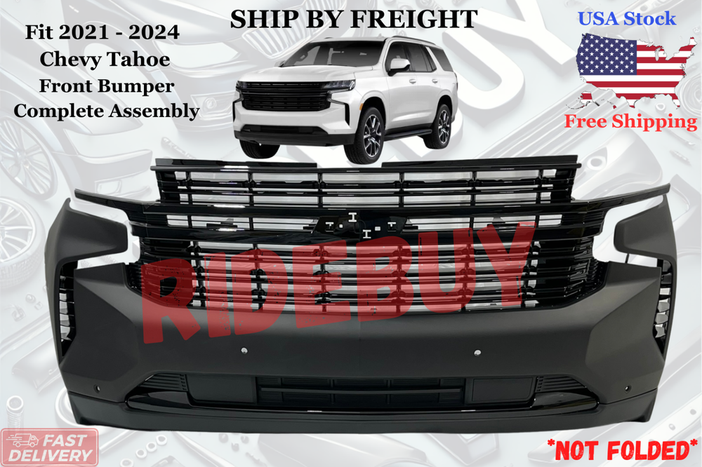 For 2021 2022 2023 2024 Chevy Tahoe/ Suburban RST Front Bumper Complete Assembly with Sensors holes Brand New Aftermarket Replacement USA Stock Free Shipping to most states Ship by Freight - Valid Phone number required Ship Complete Assembled Not Folded