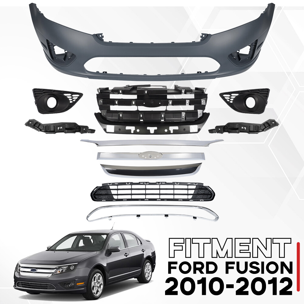For 2010-2012 Ford Fusion Front Bumper Cover Assembly W/Fog Light Housing Kit Fitment: For 2010 2011 2012 Ford Fusion Specification: Condition: 100% Brand New Type: Bumper complete assembly set Material: polypropylene 、 metal Color: Black+Chrome Fitment Type: Direct Replacement Placement on Vehicle: Front Style: OEM style Finish: Primed Description: 100% brand new in factory original package. Made from high grade OE comparable materials to withstand rough road wear and the test of time. An excellent replacement / accessory for your vehicle,No Modification Needed.The quality is the same as the OEM Direct Replacement. Perfect fitment. Give your vehicle a new style and appearance. Package including: 1PC Bumper Cover(AE5Z-17D957-BAPTM) 1PC Bumper Grille(AE5Z-8200-DA) 1PC Grille Surround(Grille Surround) 2PCS Fog Light Housing(AE5Z-17E810-CA AE5Z-17E811-CA) 1PC Mount Panel(AE5Z-8A284-AC) 1PC Upper Grille(AE5Z-8200-C) 1PC Center Grille(AE5Z-8200-A) 1PC Lower Grille(AE5Z-8200-B) Installation: We offer some screw fasteners with our products.It can be directly installed in the parts that are compatible with our product model. Note: Please note that our products are delivered by folded. If You Are Not Sure The Item 100% Fit For Your Vehicle Before Your Purchase. -Please Allow 1-3CM Differs Due To Manual Measurement. -Due To The Different Display And Different Light, The Picture May Not Reflect The Actual Color Of The Item. Thanks For Your Understanding. Please send me the photo of the vehicle you need to purchase for confirmation Shipping: Notice: The Guaranteed Date is automatically generated and displayed by ebay. We can't change it and can't control the speed of delivery, it's depend on the carrier. We will ship your item out asap after the payment is clear. Usually your Items will be shipped within 1-3 business day after your payment is cleared. International orders may take 10 to 30 business days to arrive. Return: All items sold by us are being described to the best of our abilities, as accurate as possible, and with utmost conscientiousness on our part. However, to avoid any potential oversights, we respectfully request your assistance in helping us to make this a mutually satisfactory transaction by THOROUGHLY reviewing item description and photos, and asking all questions PRIOR TO BIDDING. We stand behind the quality of all of our products. All products are double inspected before stocking and dispatching. However, sometimes mistake may slip by and the product may get damaged during the process of delivery. If such trouble occurs to you, please take a minute to refer to the following instruction. If the package arrives at your location with obvious shipping damage (including broken envelop, empty package and etc), please refuse the shipment. If you find the item is defective after you accept the shipment, please save everything that is attached in the package, including all the documents, and contact us immediately, either through eBay message or email address. You should state your item ID, item title and what the damage is clearly in your email. And please be advised that digital photos must be attached to the email you send. And please bear in mind that you should contact us within 3 days since the day you receive the package, or it will be your own responsibility to take the lost of the defective item.Items to be returned must be in original factory condition. Contact us: Welcome to my Store,more product more surprise. If you like our product,you can add us to favourite seller. And if you want to see more products, you can visit. Before leaving us neutral or negative feedback, please contact us first. We will do everything we can to give you a satisfying solution. We do our best to resolve any issue. Leaving negative feedback and low ratings doesn't get things solved. So please talk with us and we will not let you down.