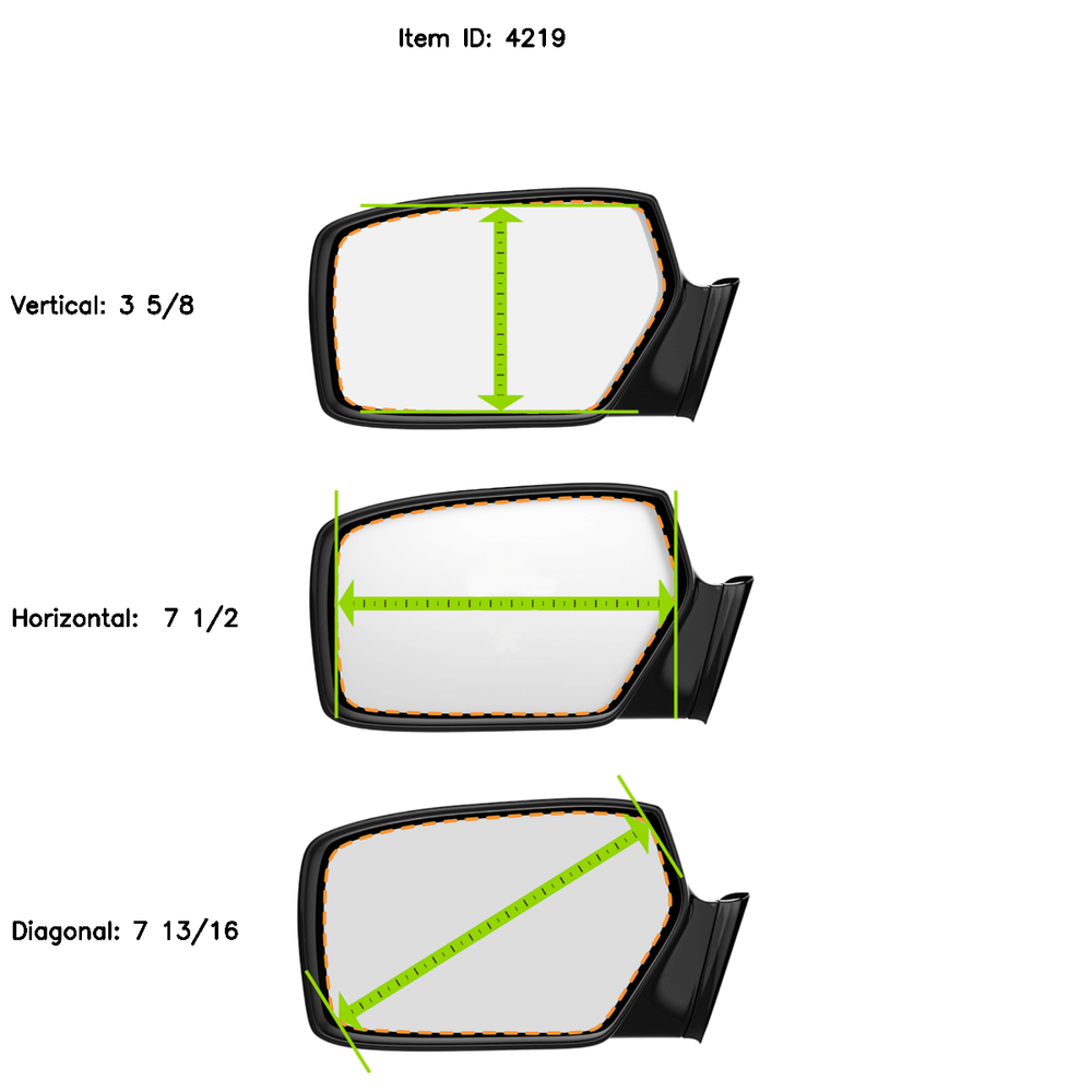 Fits 08-11 STS Driver Fit Over Mirror Glass Lens No Rear Mount For Auto Dim SKU: SMR-4219 FO MSRP: $32.99 Brand: VAM Condition: New Package Quantity: 1 Interchange Part Number: GM1323384 Placement on Vehicle: Front Left Warranty: Yes Surface Finish: real mirror glass Parts Link #: GM1323384 Part Number: SMR-4219 FO Model: 4219 Material: Glass Mounting Hardware Included: No Number of Pieces: 1 Features: see details below Attachment Method: Silicone Adhesive (Included) Upgrade your driving experience with Burco Replacement Automotive Mirror Glass, the epitome of quality and performance. Engineered in the USA with state-of-the-art CNC equipment, our premium glass adheres to OEM specifications, guaranteeing unparalleled clarity and longevity for all your visibility needs. Crafted to perfection, each Burco mirror glass is meticulously designed to seamlessly integrate with your vehicle's existing mirror, ensuring an exact match in size, shape, bend, and features. But don't just take our word for it - experience the difference yourself. Installing Burco Replacement Automotive Mirror Glass is a breeze, thanks to the included mirror silhouette and comprehensive instructions provided in every box. Our commitment to convenience extends further with easy-to-use double-sided adhesive pads or silicone, eliminating any hassle during installation. Just follow our simple step-by-step guide, and within minutes, you'll be enjoying crystal-clear visibility on the road. Remember, precision matters. Before installing, always verify that the dimensions of our mirror glass: Diagonal Inches Vertical Inches Horizontal Inches Match the dimensions posted on the bullet points to your factory glass. Your safety is paramount, ensure a perfect fit before proceeding with installation. Elevate your driving experience with Burco Replacement Automotive Mirror Glass - where quality meets performance, and clarity meets convenience. This automotive mirror glass is the lens only and doesn't come with the rear mount. Every Burco mirror comes with instructions and double sided adhesive pads so you have everything you need to install your mirror. Installs in minutes: *Always test fit the mirror to ensure it's the correct shape and size before proceeding with your mirror installation. Ensure the mirror and or backing plate are clean and free of any debris to allow the adhesive a clean surface to adhere to. Burco's mirror has the part number etched into every glass, ensure that it is forward facing and at the bottom center of the glass. When professionally installed Burco's mirror are guaranteed by a break-free guarantee. Exact Fit: *Made in the USA* High-quality premium mirror glass designed for precise replacement. This durable lens meets or exceeds OEM specifications for clarity and performance, ensuring a perfect fit every time. Dimensions: This Mirror Measures - Vertical Inches - 3 5/8, Horizontal Inches - 7 1/2, Diagonal Inches - 7 13/16. Most vehicles have multiple mirror options; to ensure proper fitment, verify your mirrors size and shape before purchasing. What is Included: Detailed instructions for quick, easy installation and silicone adhesive for a more precise fit and a more reliable, lasting bond. Mirror Lens Only (No Motor Mount): This listing is for the mirror lens only, designed for seamless replacement. Note: Does not include motor mount or additional hardware. Perfect for quick lens swaps on existing assemblies. Additonal Notes: - Burco mirror is not auto-dimming - Fits auto-dimming OE mirror only - Glass Only - Backing Plate not Included - Driver Side PAYMENTS We are a PayPal-certified seller and we accept all major credit cards. DOMESTIC SHIPPING We offer free shipping on most of our items within the continental USA. Shipments to Alaska, Hawaii, Puerto Rico and other U.S. territories may not be eligible for free shipping. INTERNATIONAL SHIPPING International shipments and shipments going outside of the continental USA may require 2-3 days prior to shipment. Our parts are designed for USA production models and may not cross fit for worldwide applications. Buyers are responsible for confirming international applications prior to purchasing. RETURNS If there are any issues with your order please contact us prior to returning any parts. We are happy to help correct any problems. Buyers are responsible for return shipping costs, unless the error was on our end. We are set up with Ebay returns, which should be used to process and print a return label. Returns will be accepted within 60 days. Orders must be returned in original packaging and in re-sellable condition. If the item shows any sign of wear or damage no refund will be issued. Orders must be returned in original packaging and in re-sellable condition. If the item shows any sign of wear or damage no refund will be issued. The Vehicle Compatibility chart should only be used as a guide and does not confirm all possible options that may be available for your vehicle. Due diligence is the responsibility of the Buyer to confirm that the part(s) they order are correct, using the information provided within the Seller's details. When in doubt, it is highly recommended to ask questions prior to ordering. We are happy to help in any way we can.