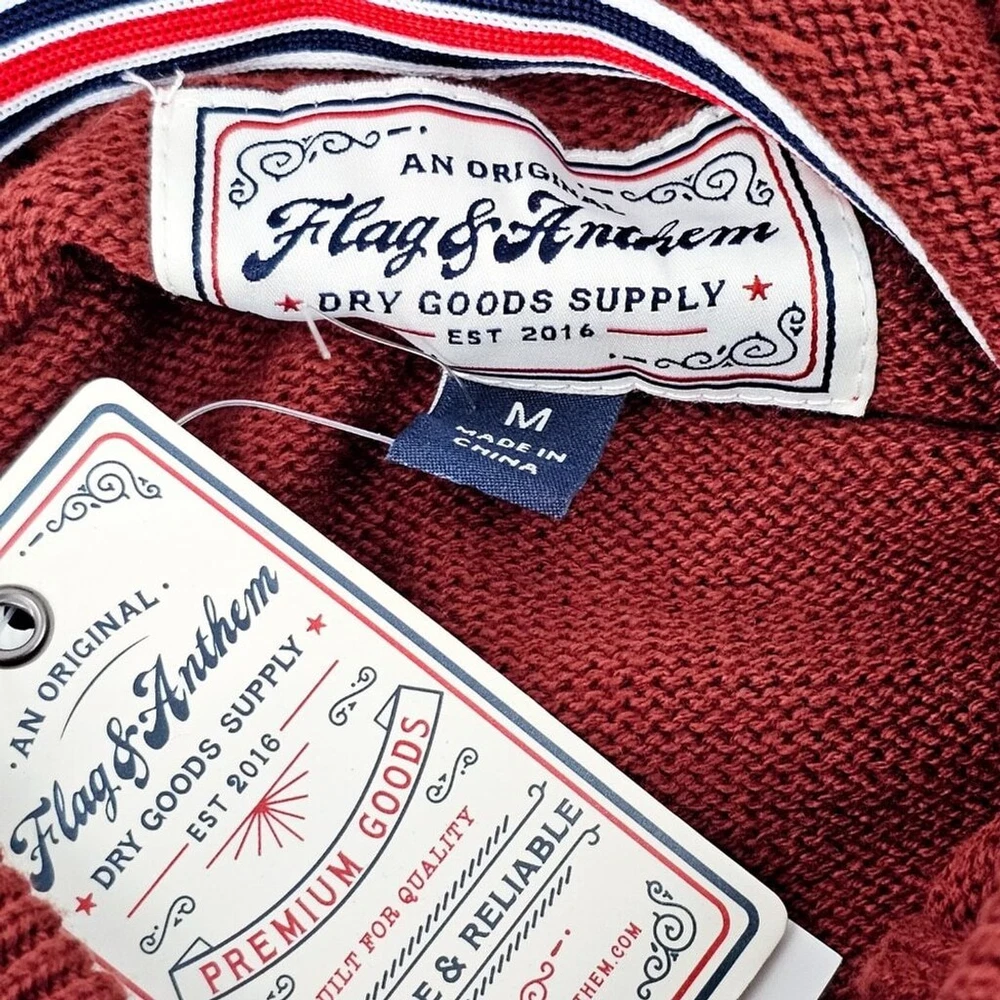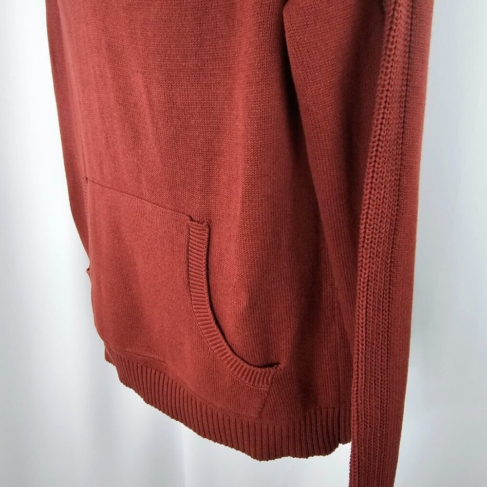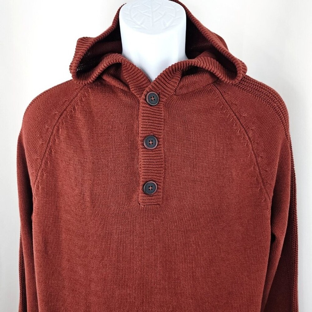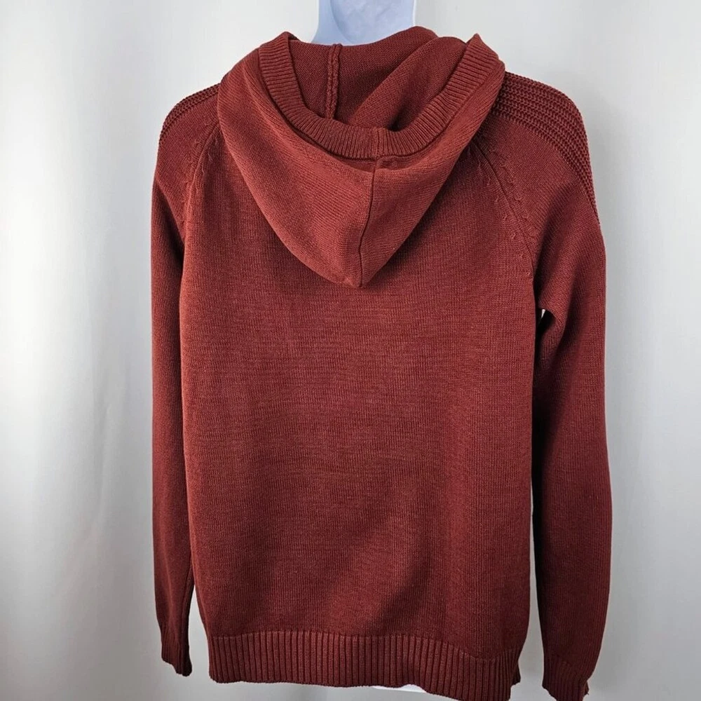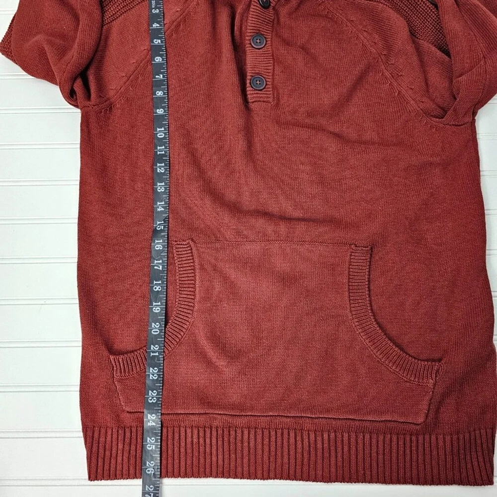 Flag & Anthem's Men's Rust Red Hooded Knit Sweater. Combining comfort and style, this sweater features a warm hood, convenient pouch pocket, and a classic rust red color for a sophisticated look. Perfect for any occasion, whether lounging at home or out on the town. - NWT - 3 button henley style neckline - Warm hood for added coziness - Convenient pouch pocket for storage - Classic rust red color - Raglan sleeves with contrast knit accent - Ribbed cuffs and hem - Versatile for all occasions - Slim fit - 100% Cotton - Approximate lay flat measurements: PTP 20.5" Waist 18.5" Length 26.5" Sleeve 27.5" - Men's sweater size Medium Smoke free location Same or next day shipping Offers welcome #MensSweater #RustRed #OutdoorStyle #FlagAndAnthem