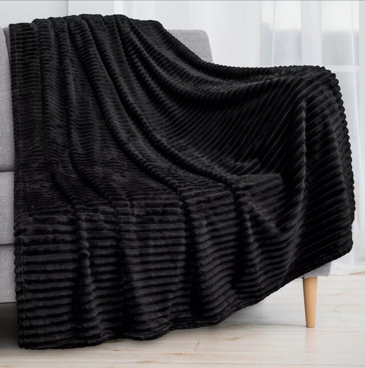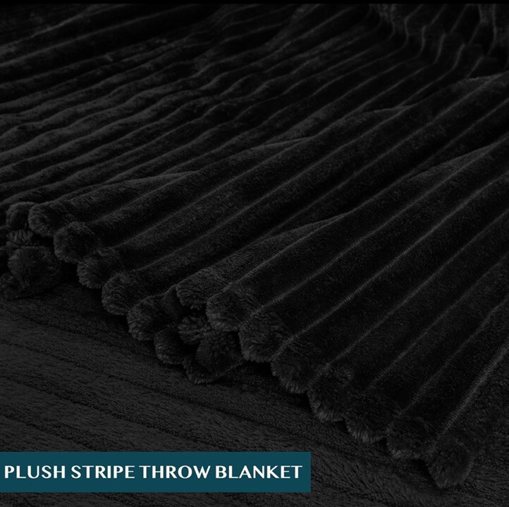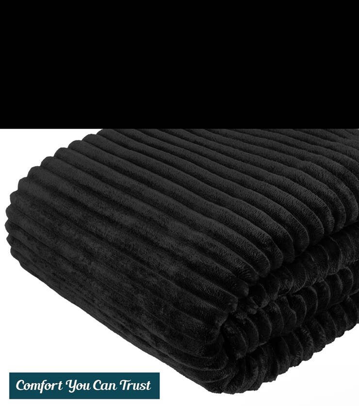 This flannel blanket is the perfect addition to any room. Its solid black color and minimalist style make it versatile enough to use with any decor. The blanket is made of 100% polyester and has a lightweight fabric warmth description, making it ideal for all seasons. The queen size blanket features a 3D ribbed jacquard design, adding a unique touch to the classic blanket. It is machine washable and easy to care for, making it a practical choice for any home. This soft and cozy blanket is perfect for outdoor activities, camping, or just lounging around the house.