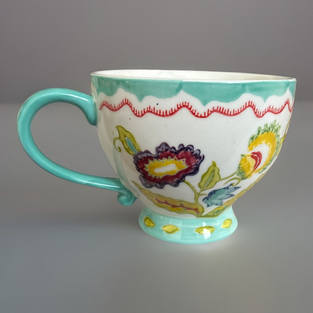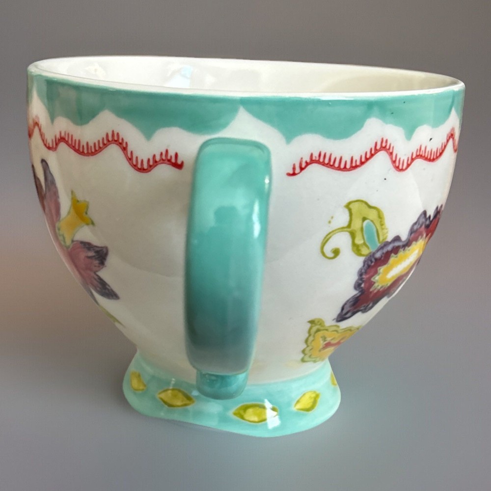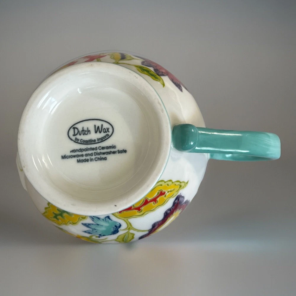 Floral Dutch Wax Mug Coastline Imports Handpainted Ceramic 12oz Teal Footed Great preowned condition