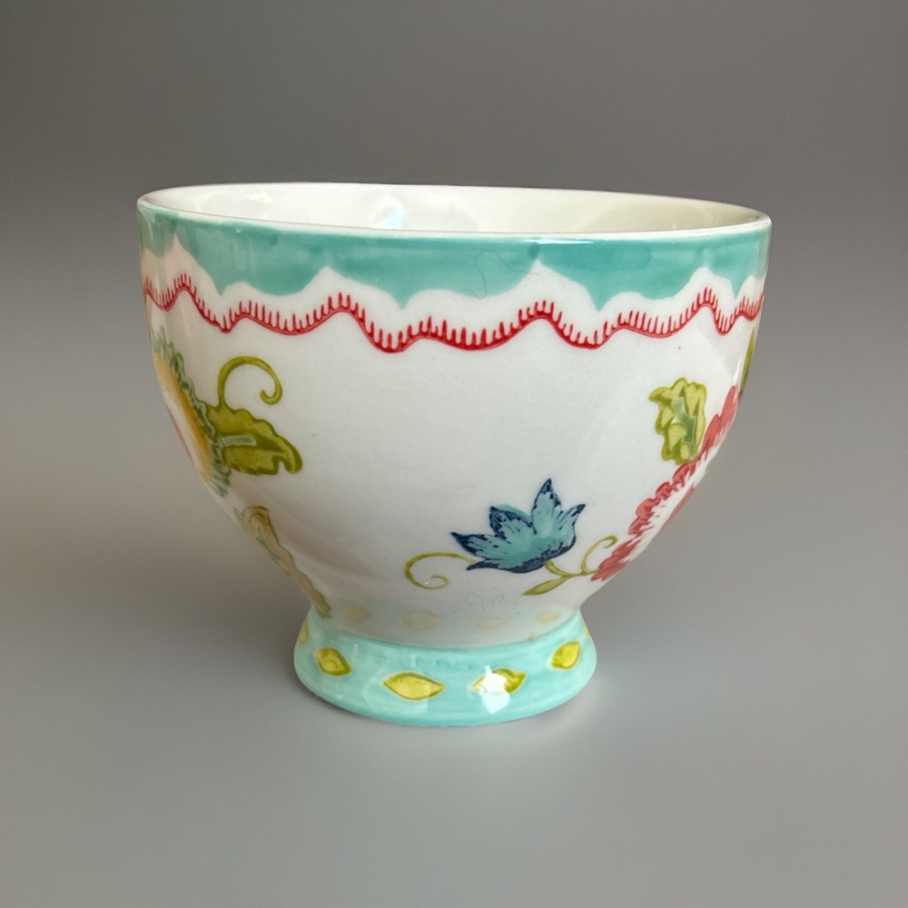 Absolutely love this vibrant Dutch wax mug! The hand-painted floral design is stunning, and the teal color pops beautifully. The footed base adds a unique touch, making it feel elegant yet sturdy. Perfect size for coffee or tea, and it’s in fantastic preowned condition—looks brand new! Adds a cheerful, artsy vibe to my morning routine. Highly recommend!