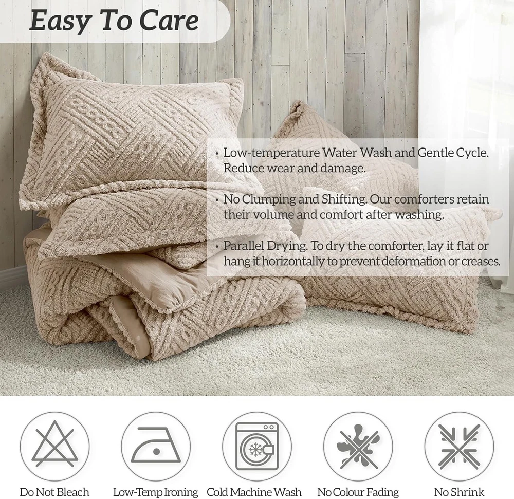 Fluffy King Fleece Comforter Set - 3 Pieces, Warm Beige Bedding Luxurious Touch < class="slides"> ‹ › ‹ › ‹ › ‹ › ‹ › ‹ › ‹ › ‹ › ‹ › Fluffy King Fleece Comforter Set - 3 Pieces Warm Beige Bedding Luxurious Touch Features: Soft & Cozy Warmth: Double-sided design with fluffy fleece on one side and ultra-soft microfiber on the other. High Density Stitching: Prevents shifting and clumping for a visually pleasing and durable comforter. OEKO-TEX Standard 100 certified: Guaranteed quality for a peaceful sleep. Easy Maintenance: Machine washable with guidelines for cold washing and low-temperature ironing. Elegant Design: Available in various sizes and colors with a stylish tufted 3D cable pattern. Why Choose Our Fluffy King Fleece Comforter Set? Indulge in the ultimate sleeping experience with our Fluffy King Fleece Comforter Set. This luxurious bedding ensemble is crafted to provide not only comfort but also a stunning aesthetic for your bedroom. With one side enveloped in plush fleece and the other in gentle microfiber, you will experience warmth like never before. This comforter is not just a blanket; it’s an experience of coziness, ideal as a thoughtful gift for any occasion, including Father’s Day, Mother’s Day, or even housewarming events. It is perfect for individuals looking to enhance their home decor while ensuring a dedicated space for relaxation. Worried about maintenance? Our comforter set comes with simple care instructions that ensure longevity and enduring quality without the hassle of complex washing routines. The colors are resistant to fading, making it a reliable choice that retains its beauty and charm. Available in twin/twin XL, queen/full, and king sizes, with versatile shades like Dark Grey, Pink, Green, and Teal Blue, you're sure to find the perfect fit for your home. Your satisfaction is our priority; if our comforter doesn't meet your expectations, feel free to out to us. Experience Better Sleep Today! Transform your bedding into a sanctuary of warmth and luxury with our Fluffy King Fleece Comforter Set. Order yours today for the ultimate touch of comfort in your home! Shipping Free & Fast Shipping - We offer free shipping to most of the USA with a normal delivery time of 3-7 days. However, due to the current situation, additional delivery time (up to 3 weeks) may be required for some items. Alternative Carriers - We may use alternative carriers (e.g. USPS, FedEx, UPS, etc.) to ensure your package arrives safely and on time. Due to the use of multiple carriers, we are unable to provide a tracking number automatically. Handling Time - Orders are processed and shipped within 1-2 business days of receiving cleared payment. Shipping Restrictions - Shipping to Alaska, Hawaii, Puerto Rico, Guam, and other US territories may incur shipping charges or delivery restrictions. Please contact us before ordering, or your order can be refunded/cancelled. State Restrictions - There may be restrictions based on your state of purchase. For example, certain items may not be shipped to California due to state regulations. Contact for Tracking Updates - If you require tracking updates or have any concerns about the delivery of your order, please feel free to contact us, and we will be happy to assist you. Return 30-Day Hassle-Free Returns - We want you to be completely satisfied with your purchase. If you are not, you can return the item within 30 days of receiving it for a full refund or exchange. Easy Return Process - To start a return, simply contact us and we will provide you with a prepaid return shipping label and detailed instructions. Restocking Fee - There are no restocking fees for returns. However, the buyer is responsible for return shipping costs if the return is not due to a seller's error. Refund Processing Time - Refunds will be processed within 5 business days of receiving the returned item in its condition. Payment We accept all major credit cards, PayPal, and Apple Pay for your convenience. Your payment information is secure and encrypted to ensure a safe and seamless transaction. Please complete your payment within 3 days of purchase to avoid any delays in shipping. Feedback Your feedback is extremely important to us. We strive to provide the best products and customer service possible. If you are satisfied with your purchase, please take a moment to leave us a positive review. If you have any concerns or issues with your order, please contact us before leaving negative feedback. We are committed to resolving any problems and ensuring your satisfaction. Contact Us If you have any questions or concerns, please feel free to out to our customer support team. You can contact us through the eBay messaging system. We are available Monday to Friday, 9:00 am to 5:00 pm EST, and we will do our best to respond to your inquiry within 24 hours. Buy it now and enjoy a pleasant shopping experience! Set Includes: Comforter,Pillow Sham Material: Fleece,Microfiber Features: Hypoallergenic,Lightweight,Warm,Soft & Cozy Theme: Luxury Care Instructions: Do Not Bleach,Machine Wash,Machine Wash Cold,Tumble Dry on Low Heat Department: Teens,Adults Room: Bedroom Size: King Type: Comforter Set Color: Beige Fill Material: Polyester Pattern: 3d Printing Number of Items in Set: 3 Insulation: Warm Style: Modern Season: All Seasons Closure Type: No Closure Thread Count: 200 or Less GSM (Grams per Square Meter): 301 to 450