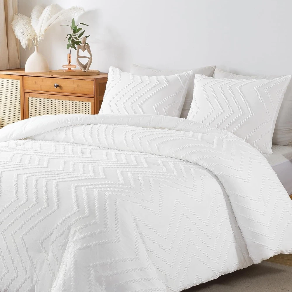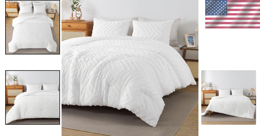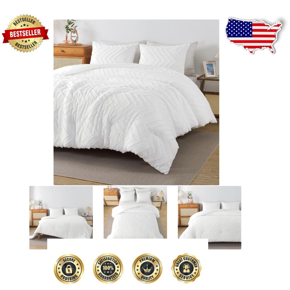 Fluffy White King Comforter Set with Chevron Tufting - Cozy Lightweight Bedding < class="slides"> ‹ › ‹ › ‹ › ‹ › ‹ › ‹ › ‹ › ‹ › ‹ › Fluffy White King Comforter Set with Chevron Tufting Cozy Lightweight Bedding Elevate Your Bedroom Aesthetic: Clean, simple tufted geometric lines instantly refresh your bedding with modern elegance. Solid white hue adds versatility, making it easy to coordinate with any décor. Exceptional Comfort: Filled with high-quality microfiber for optimum breathability and fluffiness. 100% microfiber fabric ensures softness, keeping you cozy and warm throughout all seasons. Thoughtful Details: Hidden neat stitching design prevents filling from shifting or clumping after washing. What’s Included: King size comforter: 104" x 90" 2 pillowcases: 20" x 36" (pillow inserts not included) For an even more luxurious look, consider a larger size for that picture-perfect effect. Effortless Maintenance: Machine wash cold separately on a gentle cycle for easy care. Upon receipt, allow the comforter to dry in the sun for a few hours to restore its fluffy form. Why Choose Our Fluffy White King Comforter Set? Transform your bedroom into a sanctuary of luxury with our Fluffy White King Comforter Set. Ideal for those who appreciate quality and design, this bedding set combines elegant tufting with the comfort of high-quality materials. Enjoy the versatility of solid white as it plays up your room’s aesthetics while providing the comfort you deserve. Indulge in restful nights wrapped in sumptuous softness - order your Fluffy White King Comforter Set today and experience a touch of elegance in your everyday life! Shipping Free & Fast Shipping - We offer free shipping to most of the USA with a normal delivery time of 3-7 days. However, due to the current situation, additional delivery time (up to 3 weeks) may be required for some items. Alternative Carriers - We may use alternative carriers (e.g. USPS, FedEx, UPS, etc.) to ensure your package arrives safely and on time. Due to the use of multiple carriers, we are unable to provide a tracking number automatically. Handling Time - Orders are processed and shipped within 1-2 business days of receiving cleared payment. Shipping Restrictions - Shipping to Alaska, Hawaii, Puerto Rico, Guam, and other US territories may incur shipping charges or delivery restrictions. Please contact us before ordering, or your order can be refunded/cancelled. State Restrictions - There may be restrictions based on your state of purchase. For example, certain items may not be shipped to California due to state regulations. Contact for Tracking Updates - If you require tracking updates or have any concerns about the delivery of your order, please feel free to contact us, and we will be happy to assist you. Return 30-Day Hassle-Free Returns - We want you to be completely satisfied with your purchase. If you are not, you can return the item within 30 days of receiving it for a full refund or exchange. Easy Return Process - To start a return, simply contact us and we will provide you with a prepaid return shipping label and detailed instructions. Restocking Fee - There are no restocking fees for returns. However, the buyer is responsible for return shipping costs if the return is not due to a seller's error. Refund Processing Time - Refunds will be processed within 5 business days of receiving the returned item in its condition. Payment We accept all major credit cards, PayPal, and Apple Pay for your convenience. Your payment information is secure and encrypted to ensure a safe and seamless transaction. Please complete your payment within 3 days of purchase to avoid any delays in shipping. Feedback Your feedback is extremely important to us. We strive to provide the best products and customer service possible. If you are satisfied with your purchase, please take a moment to leave us a positive review. If you have any concerns or issues with your order, please contact us before leaving negative feedback. We are committed to resolving any problems and ensuring your satisfaction. Contact Us If you have any questions or concerns, please feel free to out to our customer support team. You can contact us through the eBay messaging system. We are available Monday to Friday, 9:00 am to 5:00 pm EST, and we will do our best to respond to your inquiry within 24 hours. Buy it now and enjoy a pleasant shopping experience! Model: King Size Comforter Set Set Includes: Comforter,Pillowcase Material: Microfiber Features: Breathable,Lightweight Theme: Solid Care Instructions: Do Not Bleach,Machine Wash Cold Department: Adults Room: Bedroom Size: King Type: Comforter Set Color: White Fill Material: Microfiber Pattern: Solid Number of Items in Set: 3 Style: Bohemian Insulation: All Seasons Season: All Closure Type: No Closure Thread Count: 200 or Less GSM (Grams per Square Meter): Below 150