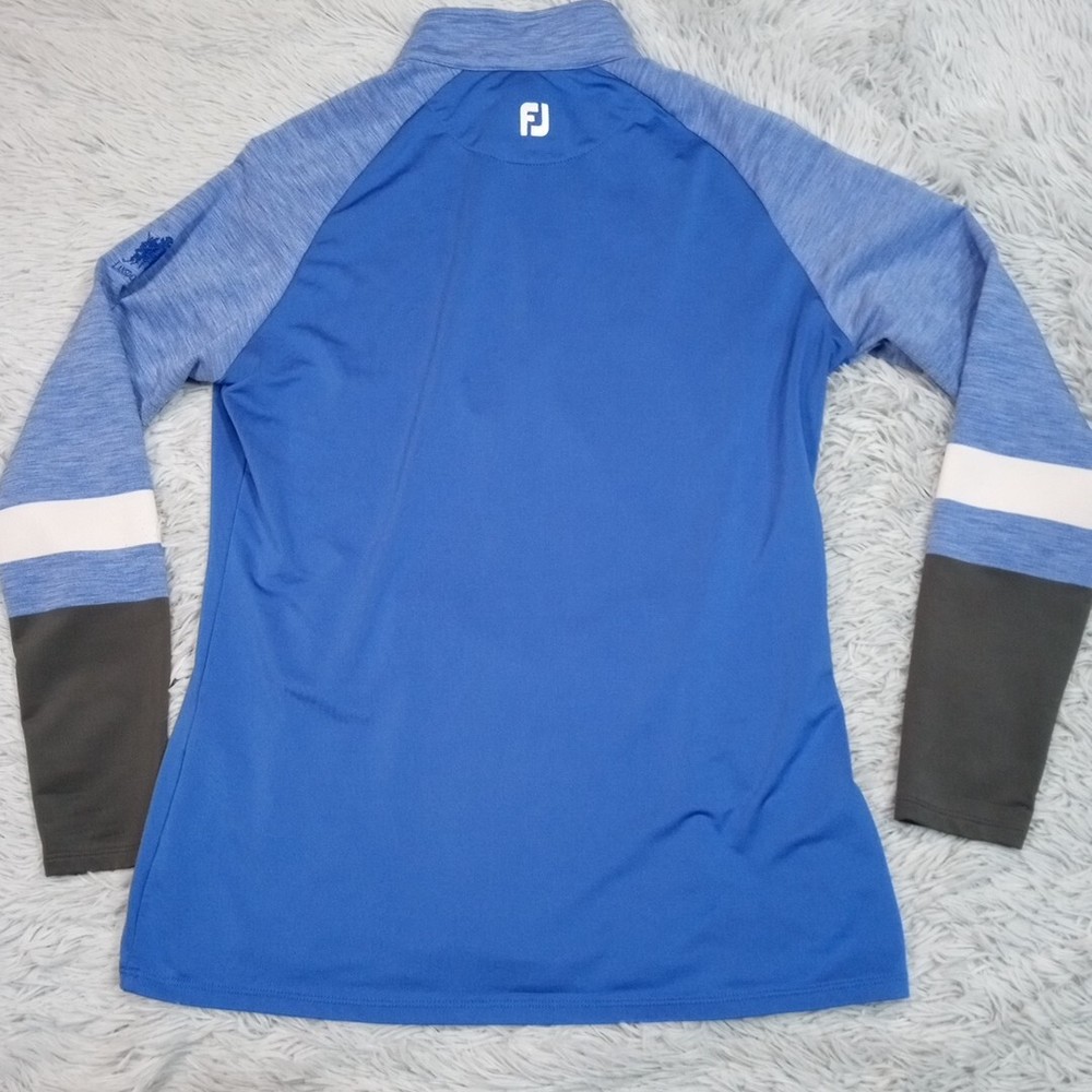 Footjoy Sweatshirt Womens M Blue Golf Lansdowne Lightweight Active Half Zip Good Condition. General wear. Pilling, light spot near zipper. Please review photos for measurements and condition. Item will be shipped within one business day. We ship items daily Monday-Friday. * Product color may vary slightly due to photographic lighting or your monitor settings.