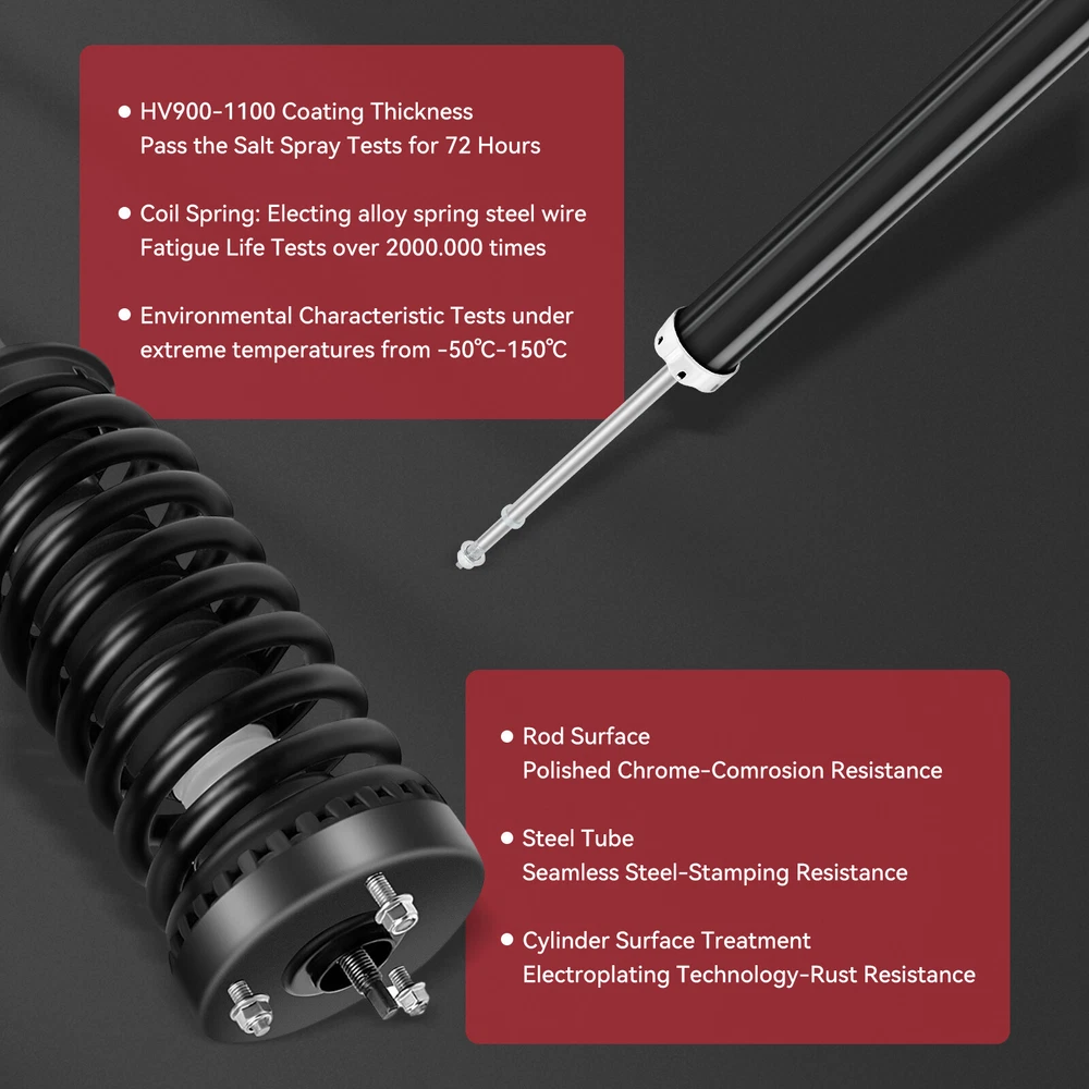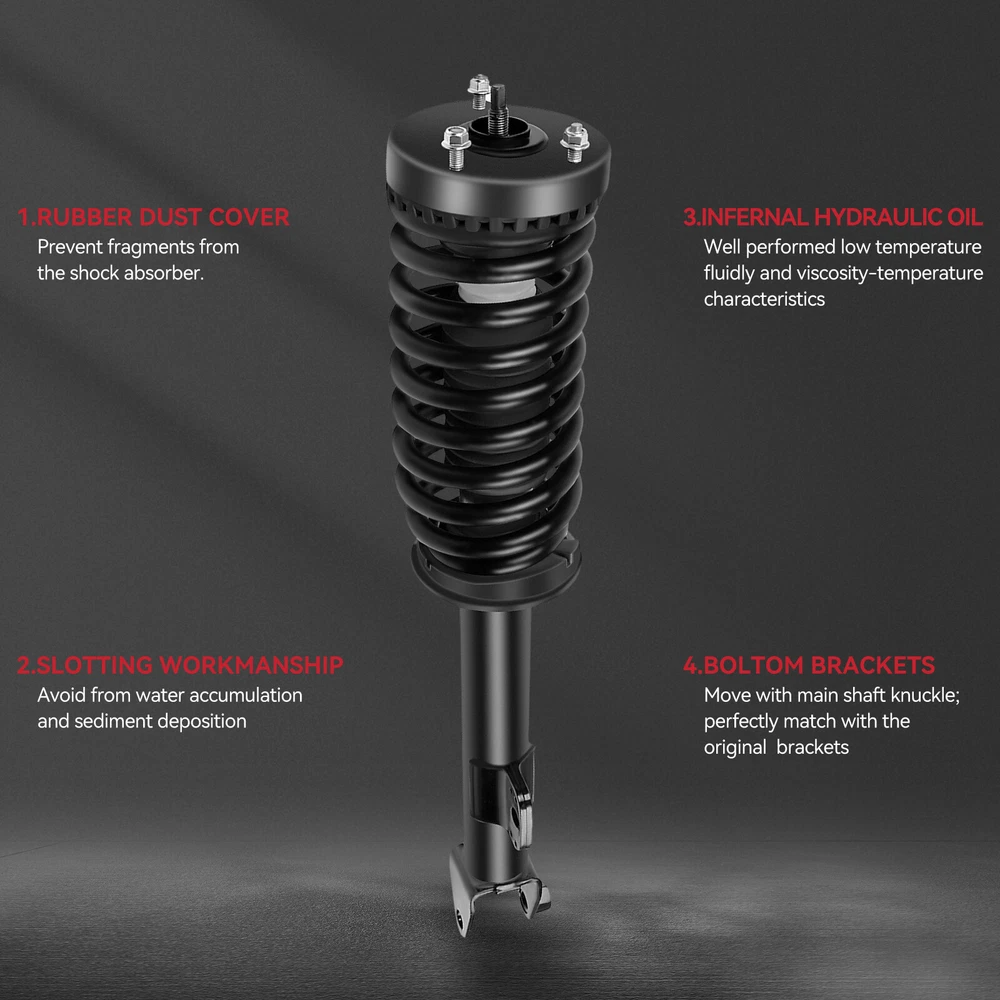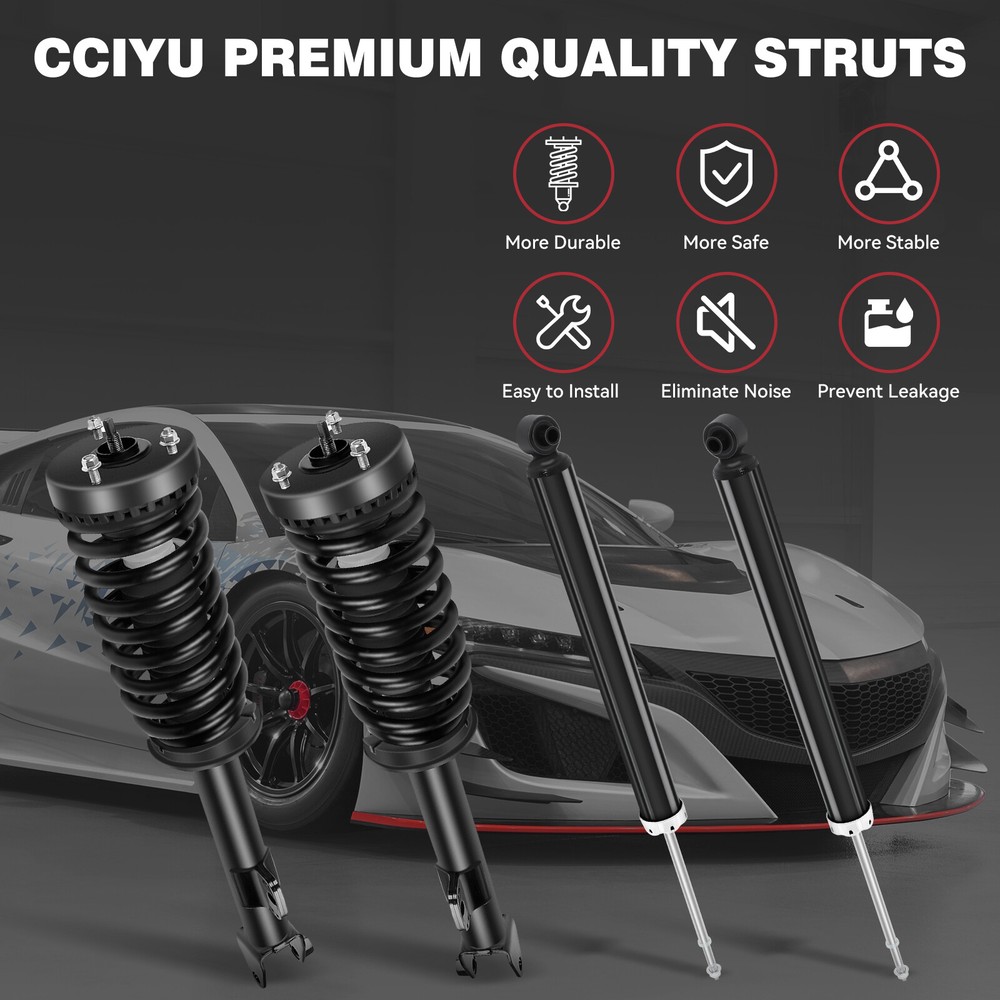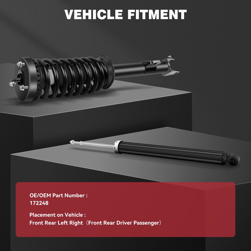 ITEM FEATURES AND ADVANTAGES: Fits Vehicles of the Following Years and Make : 2005-10 Chrysler 300 Touring Rear Wheel Drive 2009 Chrysler 300 Signature Series Rear Wheel Drive 2010 Chrysler 300 S Rear Wheel Drive 2008-09 Chrysler 300 LX Rear Wheel Drive 2005-10 Chrysler 300 Limited Rear Wheel Drive 2005-10 Chrysler 300 C Rear Wheel Drive 2005-10 Chrysler 300 Base Model Rear Wheel Drive 2006-10 Dodge Charger Rear Wheel Drive 2005-08 Dodge Magnum Rear Wheel Drive For 2005-2010 Chrysler 300 Complete Struts Front ×2 and Shocks Absorbers Rear ×2 ITEM FEATURES AND ADVANTAGES: Fits Vehicles of the Following Years and Make : 2005-10 Chrysler 300 Touring Rear Wheel Drive 2009 Chrysler 300 Signature Series Rear Wheel Drive 2010 Chrysler 300 S Rear Wheel Drive 2008-09 Chrysler 300 LX Rear Wheel Drive 2005-10 Chrysler 300 Limited Rear Wheel Drive 2005-10 Chrysler 300 C Rear Wheel Drive 2005-10 Chrysler 300 Base Model Rear Wheel Drive 2006-10 Dodge Charger Rear Wheel Drive 2005-08 Dodge Magnum Rear Wheel Drive Set Quantity: 4 Pieces Warranty: 1 Year Direct Fit - Ready to Install - No Special Tools Requir High stability. To optimize body tilt for cornering. Good shock absorption effect. Eliminate abnormal noise, driving and riding more comfortable. Save oil. Reduce the wear of tires and chassis. Accurate size. According to the original factory technology and quality standards design and production, accurate matching models. High quality materials. Made of fine materials, not easy to deformation, fracture damage, high corrosion resistance, prolong the service life, improve driving safety and comfort. 100% Brand new. PRODUCT STRUCTURE DIAGRAM AND DETAILS: HOW TO INSTALL: NOTES FOR REPLACEMENT: Before installation, pay attention to whether the type of shock absorber is the same as the type, and pay attention to whether the shock absorber is left or right. Check the quality of the shock absorber before installation, such as whether there is oil leakage and whether it is sealed. When removing the shock absorber of the original car, the position corresponding to the top rubber and the spring should be marked first.When replacing the shock absorber, make sure the top glue is aligned with the original mark of the spring.Failure to do so may result in abnormal sound in the suspension system. Please use professional tools to install the shock absorber. Please do not install it forcibly by hand, so as not to cause scratches on the shock absorber piston rod and lead to oil leakage. Make sure the shock absorber is installed in the correct position. FREQUENTLY ASKED QUESTIONS: 1.If one of the shock absorbers fails, do I need to replace the other shock absorbers at the same time? We suggest that it is better to replace the shock absorbers with new ones on both sides at the same time. And new shock absorbers produced by the same manufacturer are better, so as to ensure the same performance of the shock absorbers on both sides of the vehicle. If only one is replaced, it will cause the phenomenon that one is new and the other is old, which will lead to uneven tension, the operation of parts is not in place, and will accelerate the damage of the car and parts. 2 . How to judge whether the shock absorber is broken? (1) Shock absorber leaks. The outer surface of ordinary shock absorber is dry and clean. If there is oil leakage, the hydraulic oil in the shock absorber leaks from the upper piston rod. In this case, the shock absorber is basically invalid. (2) When a car passes over a bumpy road or speed bump, the wheels make a "bang" sound , indicating that the shock absorbers on the wheels are invalid or damaged. (3) When the car is steering, the roll Angle of the car body increases significantly , and even sideslip may occur in serious cases. This indicates that the shock absorber is broken and that its damping force is too small to effectively suppress the compression of the spring. (4) After a period of driving on a rough road, if the temperature of the shock absorber shell is cold , it means that the shock absorber has been damaged.Because under normal conditions, the shock absorber shell is warm. 3. Why is there still abnormal noise after installation? The top nut is not tightened after landing. The new shock absorber uses the old nut. The top glue gap wear is too large. Plane bearing wear. The top fixed installation position is offset. Buffer block or dust cover mismatches Angle fixed torque deviation. 4.Is it better to replace the ordinary shock absorber or the complete shock assembly? The suggestion is to replace the complete shock assembly.Because the ordinary shock absorber is a part of the complete shock assembly, it is difficult to replace the independent shock absorber, which requires professional equipment and personnel and takes a long time.Replacing the shock absorber assembly requires only a few screws, which is easy to operate.And the price of the parts in the separate replacement shock absorber assembly is high, and the replacement shock absorber assembly is cost-effective. 5. How often does the shock absorber need to be replaced? (1) When the mileage of the vehicle reaches 80000km-100000km; OR (2) When the vehicle has been used for 60 months. Item Specifics Brand : zegale Manufacturer Part Number : Z81205201G Manufacturer Warranty : 10 Year Interchange Part Number : 172248F,5629R Product Type : Complete Struts w/ Spring & Mounts Fitment Type : Direct Replacement Placement on Vehicle : Front, Rear, Left, Right Adjustable : No Modified Item : No Features : Sealed Gas Charged Shock : Yes OE Spec or Performance/Custom : OE Spec Color : Dark black Package include : 4 Pcs Complete Struts Retrurn Policy : Free Return on damaged or defective items Payment 1. We accept multiple payment methods 2.Please do not use the PayPal note field to indicate us to ship to other address. The note there will NOT be read. If you want to change the shipping address, please contact us by eBay messages. 3.(if you want cancel or
