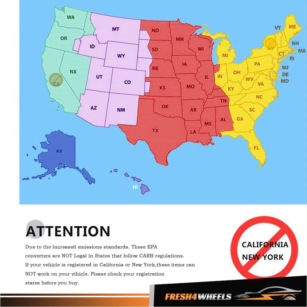 Product Features: Condition: 100% New and High Quality Type: Catalytic Converter Standard: OBD 3 Standard Emissions: 46-State Legal (Cannot Ship to CA, NY, CO or ME) Series: 46-State Direct Fit Product fit: Direct Fit Restricted States: California, New York, Colorado & Maine Body Material: Stainless Steel Tube material: Stainless Steel Substrate material: Ceramic Engine: 3.8L V6 OE Part Number: 50498 Compatible Information: For 2010-2011 Jeep Wrangler 3.8L Package Includes: 1 Set Catalytic Converter w/Installation Accessories For 2010-2011 Jeep Wrangler 3.8L Front Catalytic Converter Complete Set 50498 Product Features: Condition: 100% New and High Quality Type: Catalytic Converter Standard: OBD 3 Standard Emissions: 46-State Legal (Cannot Ship to CA, NY, CO or ME) Series: 46-State Direct Fit Product fit: Direct Fit Restricted States: California, New York, Colorado & Maine Body Material: Stainless Steel Tube material: Stainless Steel Substrate material: Ceramic Engine: 3.8L V6 OE Part Number: 50498 Compatible Information: For 2010-2011 Jeep Wrangler 3.8L Package Includes: 1 Set Catalytic Converter w/Installation Accessories Warning: Not legal for sale in California and New York. If your vehicle is registered in California and New York, do not purchase this part. If your vehicle meets California and New York requirements, but is not registered in California and New York, this converter will work on your vehicle. P0420 / P0430: For Thoroughly Fixing Engine Light Issue Caused By Mil Code P0420 or P0430, Before Replacing Catalytic Converter, Please Exclude These Common Failures That Also May Cause Check Engine Light On: -The Agine Of Spark Plugs -02 Sensor Damaged Or Failed -Retarded Spark Timing -Leakig Fule Mector Orhigh Fule Pressure -Cylinder Misfire Or Oil Conttamination -The Engine Coolant Temperature Sensor Is Not Working Properly -Downstream Oxygen Sensor(Ho25) Wiring Damaged Or Conected Improperly Features: The three-way catalytic converter is the most important external purification device installed in the automobile exhaust system, which can transform the harmful gases such as CO, HC and NOx discharged from the automobile exhaust into harmless carbon dioxide, water and nitrogen through oxidation and reduction. Installation: 1. Lift the vehicle so that the chassis is clearly visible. 2. Remove the old three-way catalytic converter and its pipe section. 3. Install new the three-way catalytic converter and smear the bolts with anti-sinter lubricating oil. 4. Start the vehicle and check whether a fault code appears Q&A: Q: Can the three-way catalyst directly change the carrier A: It is very difficult to directly change the carrier, and it is recommended to replace the whole section Q: How to know whether the three-way catalytic converter can work properly? A: Check whether there is a fault code after starting the vehicle for a period of time, and pay attention to observe whether there is a fault code during subsequent driving Item Specifics Brand Antoc Tool Type Catalytic Converter Placement on Vehicle Front OE/OEM Part Number 50498 Features 100% Accuracy of Fit/Bolt-on Connection/Easy to Replace Manufacturer Part Number FH5375634L Items Included Bolts/Screw/Seal Manufacturer Warranty 1 Year Body Material Stainless Steel Substrate Material Ceramic Universal Fitment No Vintage Car Part No Heat Shield Included None Engine 3.8L Fit For 2010-2011 Jeep Wrangler 3.8L Year 2010/2011 Fitment Type Direct Replacement Restricted States California/New York/Colorado & Maine Standard OBD 3 Standard Payment We support multiple payment methods: Shipping Policy Delivery address 1.We'll ONLY ship the item to your eBay Confirmed Address. Once we shipped the order to you and we are unable to make changes to your address,so please confirm that your delivery address is correct before you place an order. Delivery time 2.We try our best to ship out your order after your payment ASAP. Order placed on weekends or holiday will be shipped on Monday or next working day. please expect 3-7 business days within US, 10-20 business days to Canada, up to 25 business days all around the world. How long does delivery to my address take? Delivery is determined by the type of shipping you go with. Normally, all orders are delivered within 3-7 business days. Many things can play a factor such as Location, Weather, and the items in the order. If you have any questions, please reach out to us before ordering. Return Policy Hassle Free Returns! All our products come with a 30-Day Free Return Policy. For return, all we ask is you send it back in the same condition it was received - new and unused. In order to process a return or exchange instantly for you, please send us a message firstly when you contact us, we will be happy to assist you immediately. If you would like to return your item and you are within 30 days of the purchase. We offer Free Returns and will provide you with a prepaid return label. If you're not pleased with your purchase, please kindly contact our customer service representatives via ebay "Contact seller",so we can resolve any issues. Feedback We strive for 100% customer satisfaction! FEEDBACK IS VERY IMPORTANT TO US. If you are satisfied, please give us a positive feedback. If you are not satisfied, please contact us.We strive to satisfy every customer.we will do our best to solve your problem. Contact Us Your satisfaction is the most important for us, Please contact me via ebay "Contact seller" if you have any questions or concerns, and we will be right here to help you solve it. At FRESH4WHEELS, customer satisfaction is our priority. If you have any inquiries or require assistance, please don't hesitate to reach out. . We welcome you to add us to your favorite seller's list and trust us as your go-to destination for high-quality replacement parts. DESCRIPTION PAYMENT SHIPPING RETURN POLICY CONTACT US Shop Category Store Home Auto Steering System ◈ Gearboxes, Rack & Pinions ◈ Tie Rods & Steering Lin