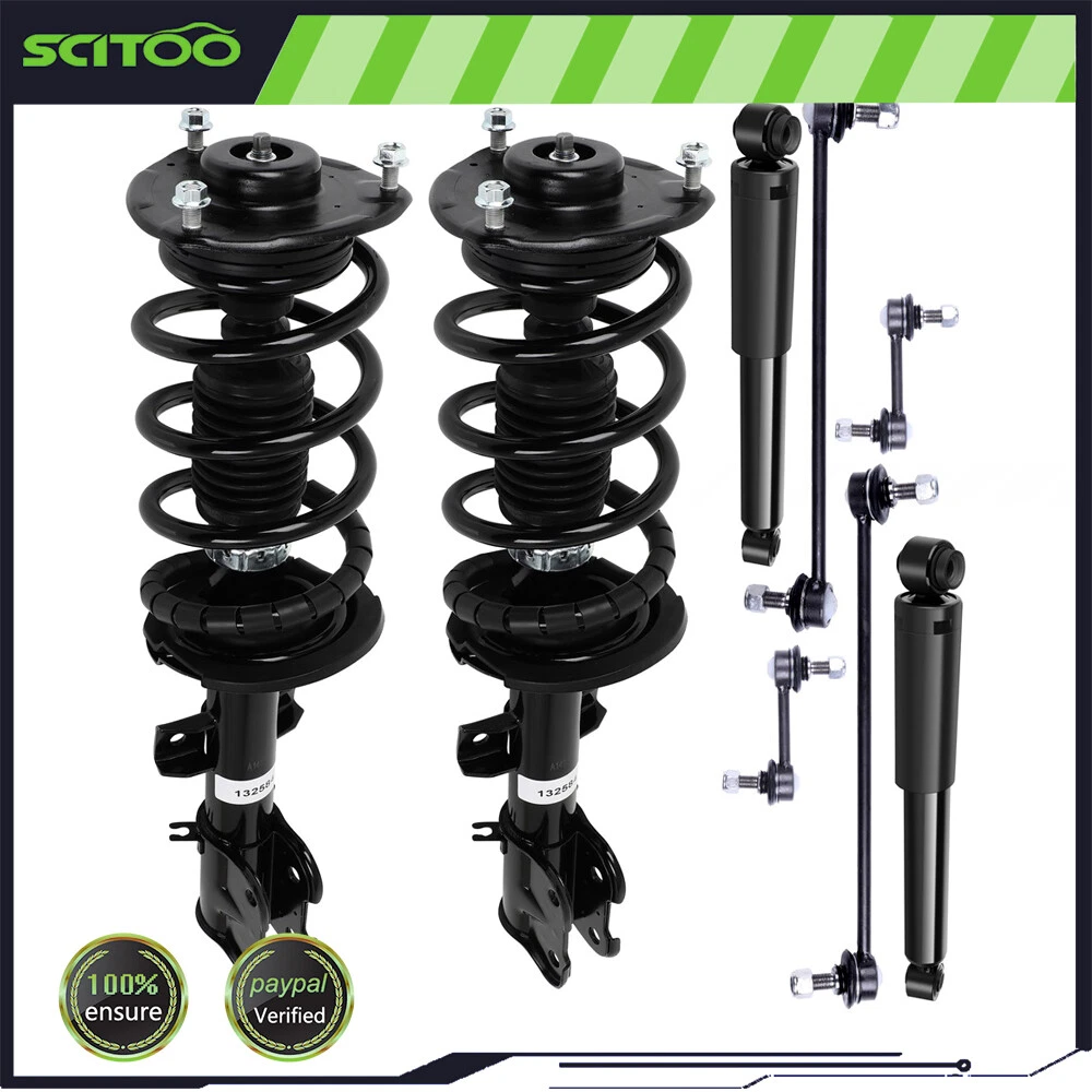 This part is compatible with: KIA SORENTO 2011 3.5L; with Sport Package KIA SORENTO 2012 2.4L, FWD KIA SORENTO 2012 3.5L, with Sport Package KIA SORENTO 2013 2.4L KIA SORENTO 2013 3.5L, AWD, with Sport Package Kit Part Include: For 2011 2012 2013 Kia Sorento Front Struts Rear Shock Absorbers Sway Bars Kit This part is compatible with: KIA SORENTO 2011 3.5L; with Sport Package KIA SORENTO 2012 2.4L, FWD KIA SORENTO 2012 3.5L, with Sport Package KIA SORENTO 2013 2.4L KIA SORENTO 2013 3.5L, AWD, with Sport Package Kit Part Include: 1x Complete Front Strut w/ Coil Spring Assembly - Driver Side - 272713 1x Complete Front Strut w/ Coil Spring Assembly - Passenger Side - 272712 2x Complete Rear Shock Absorber Assembly - Driver and Passenger Side - 4344500 1x Front Stabilizer/Sway Bar End Link - Driver Side - K750204 1x Front Stabilizer/Sway Bar End Link - Passenger Side - K750205 2x Rear Stabilizer / Sway Bar End Links - K750279 Quantity: 8 Pieces Set Item Description: Direct Fit Prepackaged for Your Convenience Rigorously Tested State of the Art Manufacturing Brand New Suspension Kit Direct replacements Built to strict quality control standards These steering and suspension parts come sealed with grease preinstalled and do not require servicing. Manufactured in ISO 9000 / ISO 9001 / ISO 9002 certified facilities gives the fit, performance Reliability and durability of OE. Complete Strut Assemblies 1.Each Strut is nitrogen gas charged 2.Direct Fit - Ready to Install - No Special Tools Required! 3.Each Complete Strut Assembly is designed and tuned for vehicle specific applications 4.Complete Strut Assembly includes strut, coil spring (when applicable), strut mount, boot, bumper kit, spring seat, and isolator 5.Tough, gloss black, powder coated with neoprene dust boot 6.Quick and easy - remove and replace the complete Strut Assembly in one piece. Do the complete job with the right auto part the first time. Enhances overall handling, safety, and performance of your vehicle. Suspension Kit 1.Powdered metal lower bearings for improved assembly strength 2.Precision-machined, advanced technology, low-friction polymer upper bearing provides smoother, easier steering, improved return-to-center, and eliminates endplay 3.Anti-corrosive coating provides protection from the harshest driving conditions 4.Heat-treated, precision finished, ball ends for consistent torque and smooth operation throughout the entire range of driving 5.Case-hardened, full-ball type stud offers tighter overall fit and improved stability 6.Manufactured to meet or exceed expectations on performance and fit Note Please check the compatibility chart and the view Notes before purchasing the item,make sure it fits your vehicle. In order to avoid overweight packaging, the combination products you buy will be transported in 2-4 packages. Please don't worry if the arrival time is different. You can always contact us. Thank you for your support and purchase. For 2011 2012 2013 Kia Sorento Front Struts Rear Shock Absorbers Sway Bars Kit This part is compatible with: KIA SORENTO 2011 3.5L; with Sport Package KIA SORENTO 2012 2.4L, FWD KIA SORENTO 2012 3.5L, with Sport Package KIA SORENTO 2013 2.4L KIA SORENTO 2013 3.5L, AWD, with Sport Package Kit Part Include: 1x Complete Front Strut w/ Coil Spring Assembly - Driver Side - 272713 1x Complete Front Strut w/ Coil Spring Assembly - Passenger Side - 272712 2x Complete Rear Shock Absorber Assembly - Driver and Passenger Side - 4344500 1x Front Stabilizer/Sway Bar End Link - Driver Side - K750204 1x Front Stabilizer/Sway Bar End Link - Passenger Side - K750205 2x Rear Stabilizer / Sway Bar End Links - K750279 Quantity: 8 Pieces Set Item Description: Direct Fit Prepackaged for Your Convenience Rigorously Tested State of the Art Manufacturing Brand New Suspension Kit Direct replacements Built to strict quality control standards These steering and suspension parts come sealed with grease preinstalled and do not require servicing. Manufactured in ISO 9000 / ISO 9001 / ISO 9002 certified facilities gives the fit, performance Reliability and durability of OE. Complete Strut Assemblies 1.Each Strut is nitrogen gas charged 2.Direct Fit - Ready to Install - No Special Tools Required! 3.Each Complete Strut Assembly is designed and tuned for vehicle specific applications 4.Complete Strut Assembly includes strut, coil spring (when applicable), strut mount, boot, bumper kit, spring seat, and isolator 5.Tough, gloss black, powder coated with neoprene dust boot 6.Quick and easy - remove and replace the complete Strut Assembly in one piece. Do the complete job with the right auto part the first time. Enhances overall handling, safety, and performance of your vehicle. Suspension Kit 1.Powdered metal lower bearings for improved assembly strength 2.Precision-machined, advanced technology, low-friction polymer upper bearing provides smoother, easier steering, improved return-to-center, and eliminates endplay 3.Anti-corrosive coating provides protection from the harshest driving conditions 4.Heat-treated, precision finished, ball ends for consistent torque and smooth operation throughout the entire range of driving 5.Case-hardened, full-ball type stud offers tighter overall fit and improved stability 6.Manufactured to meet or exceed expectations on performance and fit Note Please check the compatibility chart and the view Notes before purchasing the item,make sure it fits your vehicle. In order to avoid overweight packaging, the combination products you buy will be transported in 2-4 packages. Please don't worry if the arrival time is different. You can always contact us. Thank you for your support and purchase. Item Specifics Brand SCITOO Manufacturer Part Number CB844499S01 Manufacturer Warranty 10 Year Fitment Type Direct Replacement Placement on Vehicle Front Adjustable No Custom Bundle Yes Items Included Coil Spring,Complete Struts ,Shock Absorber ,Stabilizer Bar Link Finish Polished, Rust Protected Included Hardw