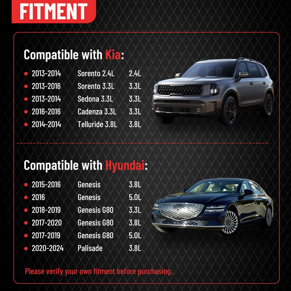 26300-3LAA0 Aluminum Oil Filter Complete Assembly Kit – Compatible with Hyundai, Genesis, Kia Models Product Description: Upgrade your vehicle’s oil filtration system with this high-performance aluminum oil filter assembly kit (OEM #26300-3LAA0). Designed as a direct replacement for Hyundai, Genesis, and Kia models, this complete kit includes all necessary components for a seamless installation. The improved aluminum construction enhances durability, heat resistance, and corrosion protection compared to OEM plastic housings, ensuring long-lasting engine performance. Key Features & Benefits: ✔ Premium Aluminum Material: For 2019 2020 Kia Sorento 2.4L 3.3L Aluminum Oil Filter Complete Assembly Kit US 26300-3LAA0 Aluminum Oil Filter Complete Assembly Kit – Compatible with Hyundai, Genesis, Kia Models Product Description: Upgrade your vehicle’s oil filtration system with this high-performance aluminum oil filter assembly kit (OEM #26300-3LAA0). Designed as a direct replacement for Hyundai, Genesis, and Kia models, this complete kit includes all necessary components for a seamless installation. The improved aluminum construction enhances durability, heat resistance, and corrosion protection compared to OEM plastic housings, ensuring long-lasting engine performance. Key Features & Benefits: ✔ Premium Aluminum Material: Replaces fragile plastic OEM parts with corrosion-resistant, high-temperature aluminum for extended service life. Withstands extreme engine conditions (heat, pressure, and wear) while maintaining optimal filtration. ✔ Complete Kit Includes: Oil filter assembly (26300-3LAA0), seal ring (26345-3LAA0), filter cartridge (26345-3CKB0), and top shell (26350-3C701). ✔ Enhanced Engine Protection: Effectively filters harmful contaminants from oil, preventing engine damage. Same functionality and compatibility as OEM—no modifications required. ✔ Torque Specifications: Filter cap: 25+ ft/lbs (recommended). Bolt: 15+ ft/lbs (recommended). Compatible Models: Hyundai: Palisade 2020-2024 (3.8L V6 – All Trims: Calligraphy, Limited, SEL, etc.). Genesis G80 2017-2020 (3.8L V6). Genesis 2015-2016 (3.8L V6 / 5.0L V8). Kia: Telluride 2020-2024 (3.8L V6 – All Trims: EX, LX, SX). Sorento 2019-2020 (2.4L / 3.3L V6). Sedona 2019-2021 (3.3L V6). Cadenza 2017-2020 (3.3L V6). (See full list in description for additional models.) OEM Replacement Parts: Replaces OEM numbers: 26300-3LAA0, 26345-3LAA0, 26345-3CKB0, 26350-3C701 . Installation Notes: Ensure proper torque settings during installation. Always replace the seal ring to prevent leaks. Why Choose This Kit? Durable Upgrade: Aluminum outperforms plastic in heat and pressure resistance. Precision Fit: Exact OEM replacement for hassle-free installation. Engine Longevity: Superior filtration protects critical engine components. Package Includes: 1x Aluminum Oil Filter Complete Assembly Kit Note: Verify your vehicle’s model/year/engine before purchase. Non-returnable if installed. Item Specifics Brand : CARBOLE Type : Oil Filter Features : Easy Installation, Full Aluminum, Durable, High Performance Manufacturer Part Number : 26300-3LAA0, 26345-3LAA0, 26345-3CKB0, 26350-3C701 OE/OEM Part Number : 263003LAA0, 263453LAA0, 263453CKB0, 263503C701 Items Included : 1x Aluminum Oil Filter Complete Assembly Kit Material : Metal Aluminum Gasket Material : Rubber Universal Fitment : Yes Manufacturer Warranty : 1 Year Finish : Matte Mounting Style : Bolt-On Interchange Part Number : 26300-3LAA0, 26345-3LAA0, 26345-3CKB0, 26350-3C701 Superseded Part Number : 263003LAA0, 263453LAA0, 263453CKB0, 263503C701 Placement on Vehicle : Front Fitment 1 : 2019-2020 Kia Sorento (2.4L & 3.3L) Fitment 2 : 2019-2021 Kia Sedona (3.3L) Fitment 3 : 2017-2020 Kia Cadenza (3.3L) Fitment 4 : 2020-2024 Kia Telluride (3.8L) Fitment 5 : 2015-2016 Hyundai Genesis (3.8L) Fitment 6 : 2016 Hyundai Genesis (5.0L) Fitment 7 : 2018-2019 Hyundai Genesis G80 (3.3L) Fitment 8 : 2017-2020 Hyundai Genesis G80 (3.8L) Fitment 9 : 2017-2019 Hyundai Genesis G80 (5.0L) Fitment 10 : 2020-2024 Hyundai Palisade (3.8L) Payment Payment: We accept Credit card, Debit card, Apple Pay, Google Pay and PayPal. A dditional shipping fee may be charged for buyers from Puerto Rico, Hawaii, Alaska, Guam, and the U.S. military address of the United States or other remote area (zone 8-10). Most of the items come with a 30-day warranty covering manufacturing defect. High value products would get a longer warranty, some of them up to 2 year or 5 years or lifetime warranty, excluding any damage by the user. Shipping Processing time: Within 1 business day after payment Ship from: California USA or KY Warehouse Or IL warehouse Or NY Warehouse. Time of delivery: US: about 1-6 business days; Note:Please leave us your detailed valid street address because big package is not allowed to be stored in PO.BOX. Returns 1)Defective product can be returned for exchange and the exchange must be notified within 30 days from the date of purchase. All items must be returned in NEW condition, including the packaging and all accessories. 2)Buyers are responsible for the item return shipping fee. 3) Please note that all return must be pre-approved by our co-worker,and it have a return merchandise anthorization(RMA)number.Unauthorzed return will not be accepted. About Us Precision Auto Labs (PAL) is one of the most experienced manufacturers in performance fuel and ignition systems around the world, proving itself on the racetracks and drag strips of the world. PAL offers a comprehensive selection of performance products, including coils, digital fuel injection systems, fuel injectors, distributors, caps, rotors, ignition wires etc. PAL products are 100% tested throughout the entire manufacturing process for worry free, out-of-the-box performance. 100% Quality Guarantee! 100% Fast Delivery! 100% Money Back Guarantee! PAL produces the coils only with high quality materials to ensure the performance and durability, having 15% mo