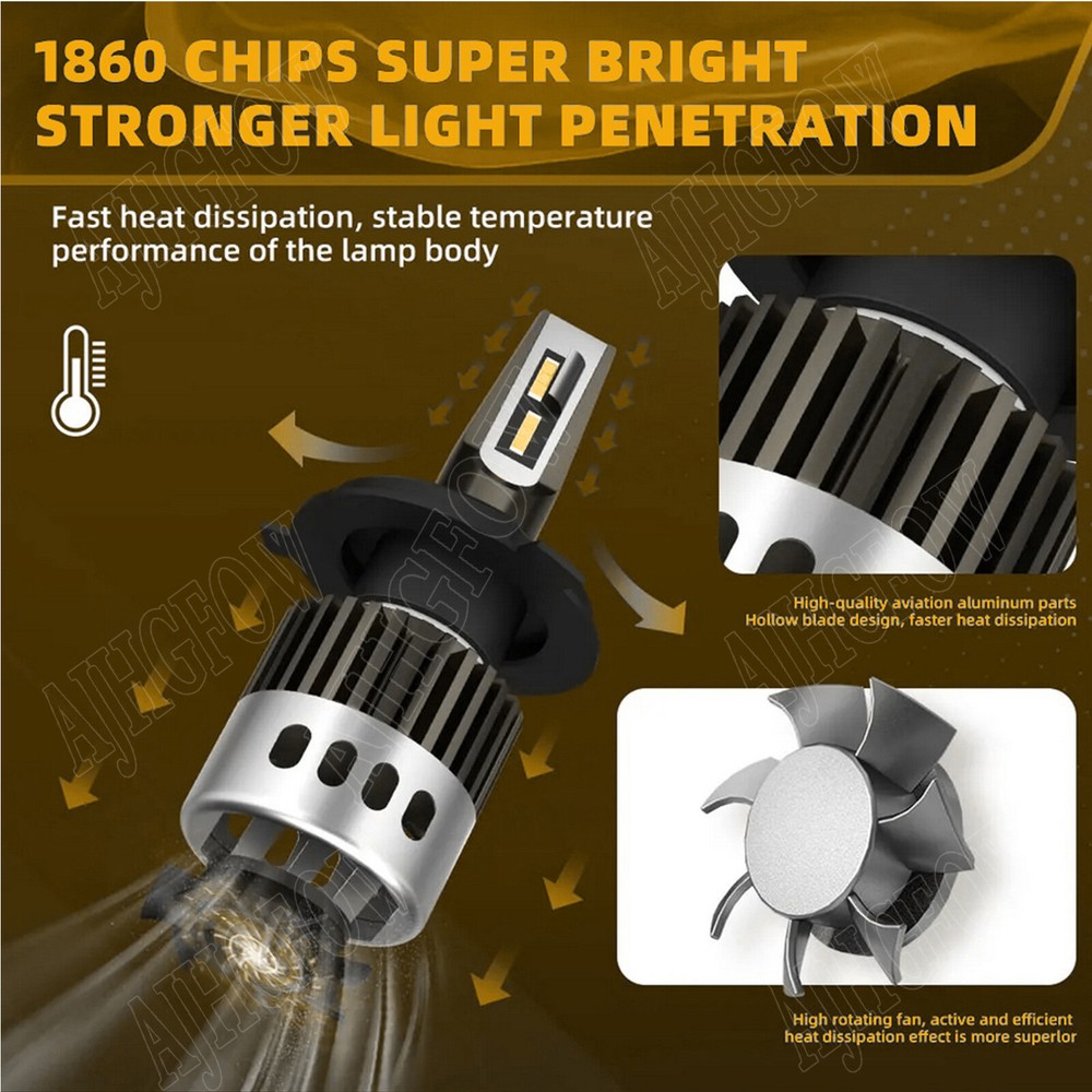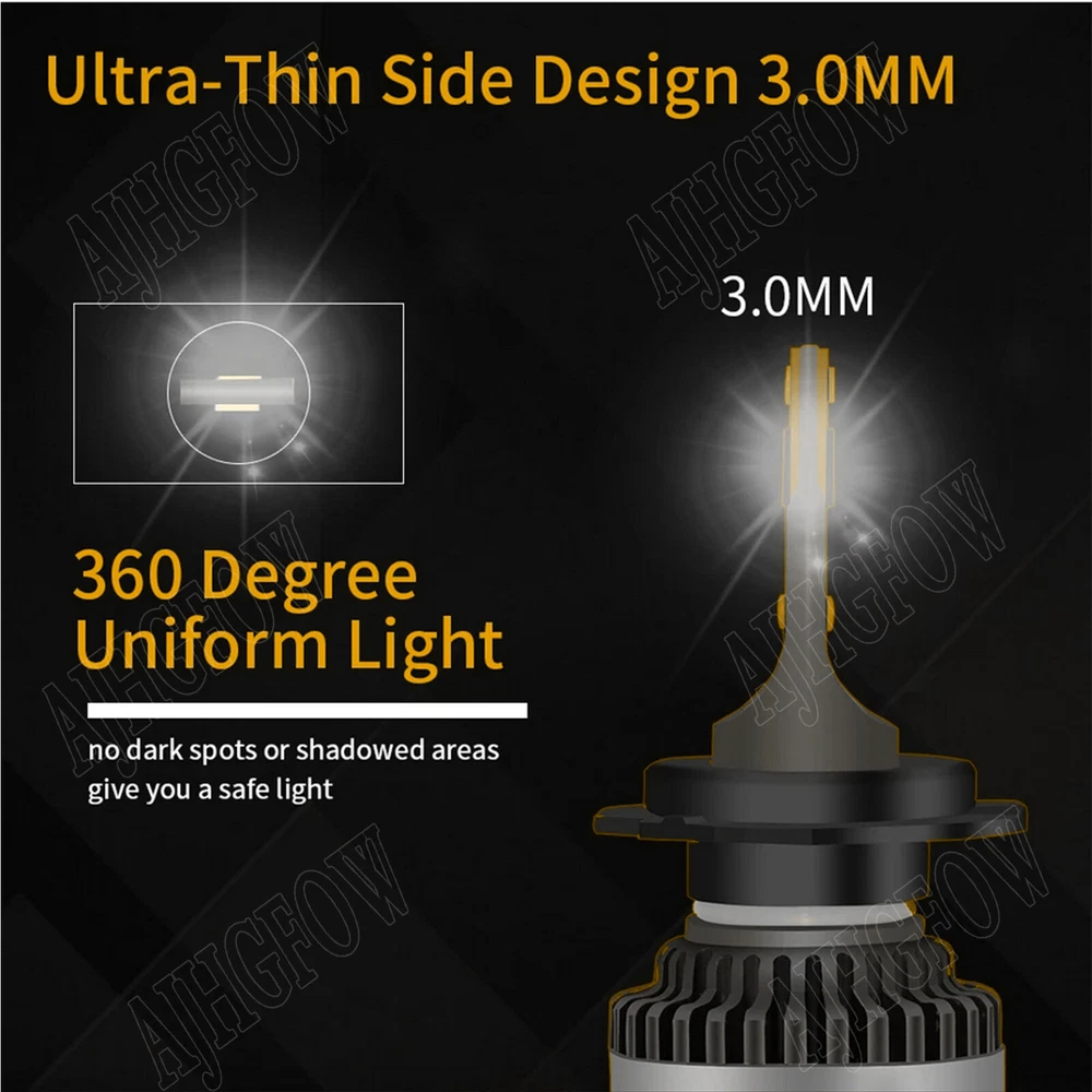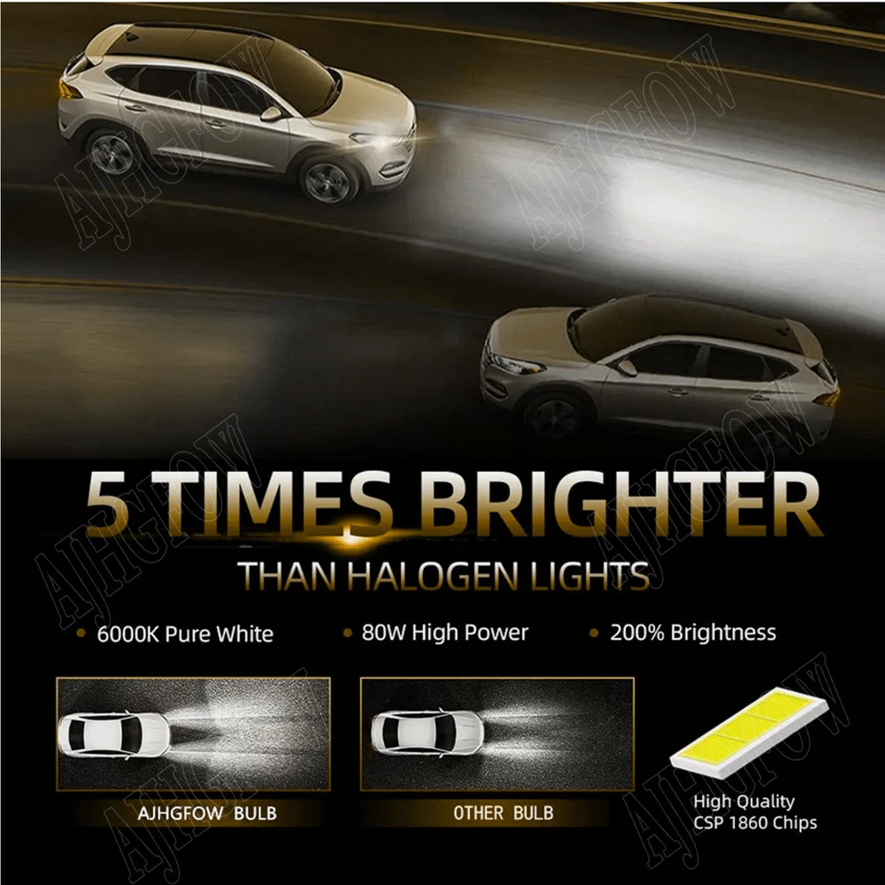 Specification: About this item 600% Brightness : With 70W and 7000 lumens per LED bulb, AJHGFOW LED Light Bulbs are boasting a 600% increase in brightness compared to traditional halogen bulbs. AJHGFOW LED Light Bulbs boast an integrated hollow heat sink and fan that work together to maintain optimal performance. Extended +50,000 Hour Lifespan: AJHGFOW Light Bulb unique design features a hollow heat sink and 12,000 RPM turbo cooling fans that effectively dissipate heat from the LED Light beads, allowing the LED Blubs to last up to 50,000 hours. Easy Installation in Just 5 Minutes: AJHGFOW LED Light Bulb fit perfectly into your auto light housing without any modification. Simply plug in one connection point to your vehicle's light housing and you're good to go. Plug-and-play design makes the swap be a simple task. 95% Universal Compatibility: AJHGFOW LED Bulb are designed to fit 95% of vehicles' computers without throwing any error. Plus, with built-in driver and CANbus ready design, you don't need a separate adapter. The filter system may not be 100% accurate, please please contact us with Ebay Buyer Message to get help and solutions 1:1 Perfect Beam Pattern Design: AJHGFOW LED Light Bulbs precisely mimic the position of the original halogen filament to ensure a perfect beam pattern. This enhances visibility in front of your vehicle, providing you with a wider driving vision and cutting down on glare in poor visibility. Package Included: 2x 9005/HB3 LED Headlight Bulbs 2x 9006/HB4 LED Headlight Bulbs 2x H11 LED Fog Light Bulbs NOTE: Only fit for Original headlight assembly Automotive LED headlamps advantages: 1. LED lights than traditional halogen energy, more power. 2. LED lamp brightness and proximity , but the LED lights light up without delay, to enhance road safety. Instant start no strong currents impact , effectively protecting the car comes with a battery , improving battery life of more than 30%. 3. Fast cooling , the appearance of the most advanced design , thermal structure ingenious and reasonable. Less warranty, power driver with wide voltage constant current mode , the car can respond to a variety of voltage instability , the effective protection of normal use LED efficient and simple structure . Fewer Components damaged, repair the probability is very low , compared with HID ballast repair lower than 80% . 4. Heating temperature is low , protect the car . LED working temperature up to 800 ° -1000 ° , the main reason for the car ignition . 5. LED car headlights simple structure, fewer parts than LED lamps, significantly lower than the LED lamp failure rates ! 6. Automotive LED headlamps color temperature balancing. The LED bulbs in the same color to clear , about 6000K-6500K. 7.Certification: IP68 Waterproof, CE, RoHS Install Caution: 1. As a safety precaution, make sure that the car has had time to cool down properly before starting the installation process. 2. Put the vehicle into park or make sure it is securely in gear. 3. Make sure to have the ignition turned off and the keys removed. 4. Be careful to avoid burns, especially when turning on or off the vehicles lighting. 5. Be careful to avoid crushing or cutting the bulbs. Also make sure to not touch the bulbs with your fingers, as this will cause blotting. 6. Fully examine the connection of the contact points, ports and the wires as faulty connections can cause lighting problems. 7. Make certain that the end of the bulb does not come in contact with the interior light shield of the headlight when adjusting the bulb. 8. The ebay compatibility system may not be 100% accurate, each listing can only add 3000 vehicles, so if you are not sure which bulb size you need, please check vehicle manual or stock bulb model, or you can send message to us with your vehicle make, model, year, we'll check and recommend the correct bulb type to you.