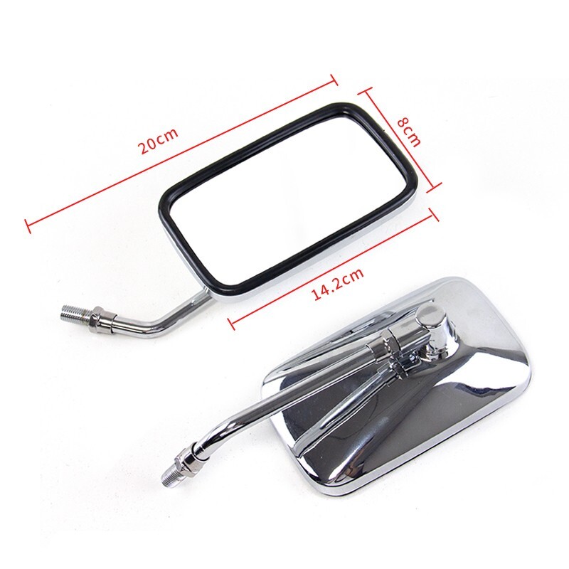 Features: 100% Brand New Side Mirrors Quantity: 1 SET (Left & Right) Simple and Classic Rectangle Shape Wide Sn Mirror Provides Broad and Clear Vision Mirror Angle Can Be Adjusted Freely to Fit Your Need Material: CNC Machined Aluminum Color: Chrome Mirror Color: Clear Mounting bolt thread: 10mm Fitment: Fit for all motorcycles or bike's if it uses standard 10mm Mounts Package Included: 1 Sets 10MM Rectangle Motorcycle Mirrors (Left&Right) Note: If you have any problem with the product you received, please contact us first, we will solve the problem for you within 24 hours!!! On Apr 16, 2025 at 21:04:23 PDT, seller added the following information: