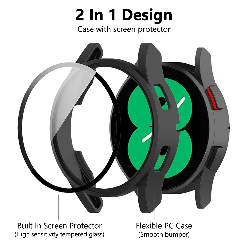 【Full Coverage】: Our Samsung Galaxy Watch case with screen protector that conforms to any rounded curvatures and provide complete coverage. 【Nice Look】: Maximum protection & Rounded edges will make it perfect to fit your watch screen exactly. 【Touchscreen Accuracy】: Our case Allows 100% touchscreen accuracy and 99.99% HD CLARITY. 【 Quick and easy installation】: you don’t need to remove band when installing the case. For Samsung Galaxy Watch 4 5 6 7 Full Case Cover Screen Protector 40mm 44mm Features: 【Full Coverage】: Our Samsung Galaxy Watch case with screen protector that conforms to any rounded curvatures and provide complete coverage. 3D curved edge & Full coverage design for curved surface will completely bond with your watch face. Accordingly, the Case will protect your Watch screen from scratches and potential damage all around. 【Nice Look】: Maximum protection & Rounded edges will make it perfect to fit your watch screen exactly. This case cover doesn't add much bulk to the watch and it is protected on all sides. You can not even tell our 3D screen protector case has already been on your watch screen. 【Touchscreen Accuracy】: Our case Allows 100% touchscreen accuracy and 99.99% HD CLARITY. No stickiness, No Roughness, No Residue. Watch screen protector features with crystal clear, incomparable light transmission up to 99.99%. All the color of the screen shows incisively and vividly without any distortion. 【 Quick and easy installation 】: you don’t need to remove band when installing the case. Package Included: - 1 x Hard Full Cover Case , 1 x Cleaning Cloth. ( SmartWatch and Watch Band are not included! )
