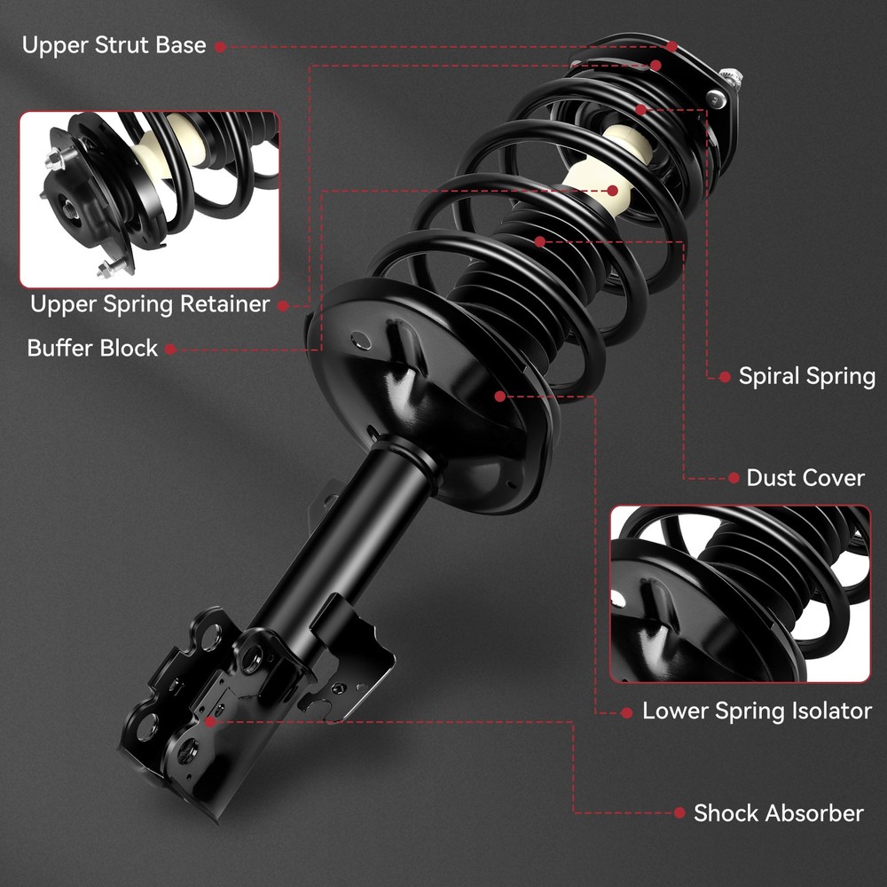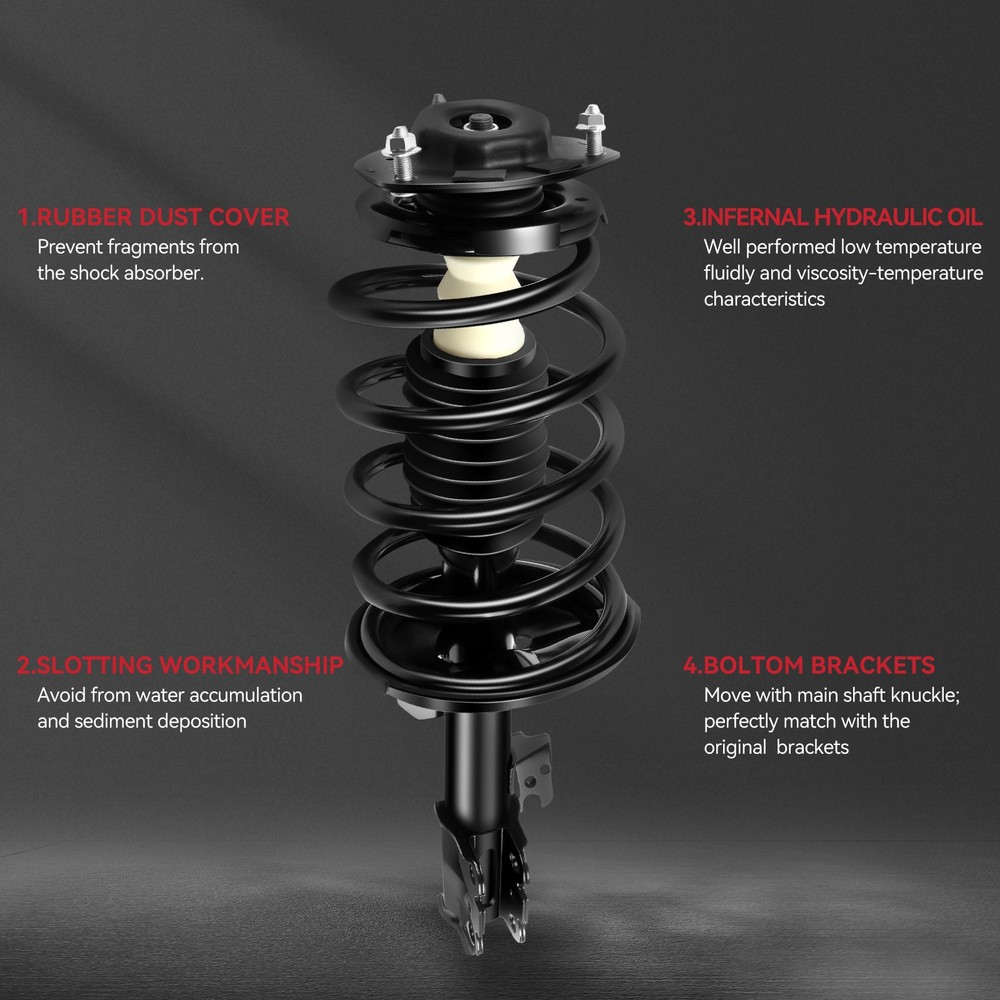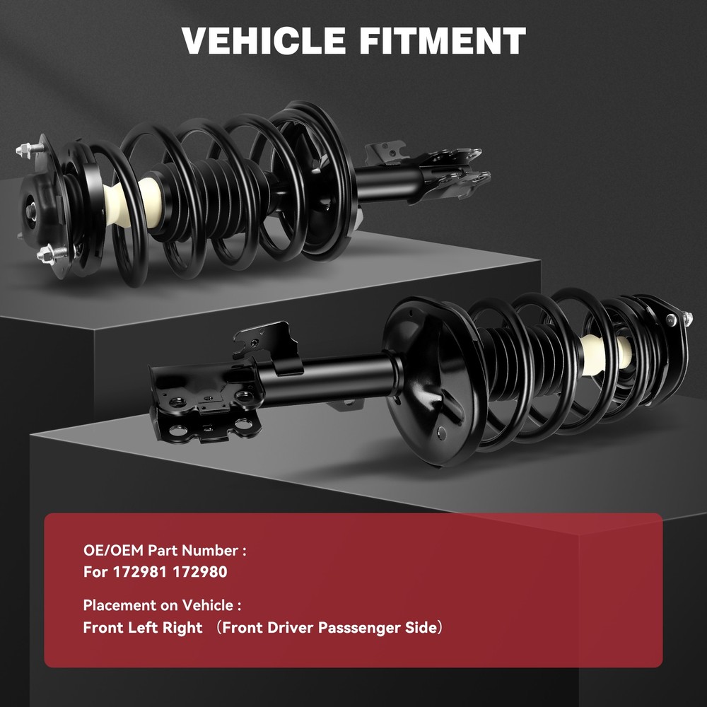 ITEM FEATURES AND ADVANTAGES: Fits Vehicles of the Following Years and Make : 2005 Sienna CE AWD 2004-2006 Sienna CE FWD 2004-2006 Sienna LE AWD 2004-2006 Sienna LE FWD 2006 Sienna Limited AWD 2006 Sienna Limited FWD 2004-2006 Sienna XLE AWD 2004-2006 Sienna XLE FWD 2004-2005 Sienna XLE Limited AWD 2004-2005 Sienna XLE Limited FWD For Toyota Sienna 2004-2006 (AWD) Front 2PCS Complete Struts & Coil Spring Set ITEM FEATURES AND ADVANTAGES: Fits Vehicles of the Following Years and Make : 2005 Sienna CE AWD 2004-2006 Sienna CE FWD 2004-2006 Sienna LE AWD 2004-2006 Sienna LE FWD 2006 Sienna Limited AWD 2006 Sienna Limited FWD 2004-2006 Sienna XLE AWD 2004-2006 Sienna XLE FWD 2004-2005 Sienna XLE Limited AWD 2004-2005 Sienna XLE Limited FWD Set Quantity: 2 Pieces Warranty: 1 Year Direct Fit - Ready to Install - No Special Tools Requir High stability. To optimize body tilt for cornering. Good shock absorption effect. Eliminate abnormal noise, driving and riding more comfortable. Save oil. Reduce the wear of tires and chassis. Accurate size. According to the original factory technology and quality standards design and production, accurate matching models. High quality materials. Made of fine materials, not easy to deformation, fracture damage, high corrosion resistance, prolong the service life, improve driving safety and comfort. 100% Brand new. PRODUCT STRUCTURE DIAGRAM AND DETAILS: HOW TO INSTALL: NOTES FOR REPLACEMENT: Before installation, pay attention to whether the type of shock absorber is the same as the type, and pay attention to whether the shock absorber is left or right. Check the quality of the shock absorber before installation, such as whether there is oil leakage and whether it is sealed. When removing the shock absorber of the original car, the position corresponding to the top rubber and the spring should be marked first.When replacing the shock absorber, make sure the top glue is aligned with the original mark of the spring.Failure to do so may result in abnormal sound in the suspension system. Please use professional tools to install the shock absorber. Please do not install it forcibly by hand, so as not to cause scratches on the shock absorber piston rod and lead to oil leakage. Make sure the shock absorber is installed in the correct position. FREQUENTLY ASKED QUESTIONS: 1.If one of the shock absorbers fails, do I need to replace the other shock absorbers at the same time? We suggest that it is better to replace the shock absorbers with new ones on both sides at the same time. And new shock absorbers produced by the same manufacturer are better, so as to ensure the same performance of the shock absorbers on both sides of the vehicle. If only one is replaced, it will cause the phenomenon that one is new and the other is old, which will lead to uneven tension, the operation of parts is not in place, and will accelerate the damage of the car and parts. 2 . How to judge whether the shock absorber is broken? (1) Shock absorber leaks. The outer surface of ordinary shock absorber is dry and clean. If there is oil leakage, the hydraulic oil in the shock absorber leaks from the upper piston rod. In this case, the shock absorber is basically invalid. (2) When a car passes over a bumpy road or speed bump, the wheels make a "bang" sound , indicating that the shock absorbers on the wheels are invalid or damaged. (3) When the car is steering, the roll Angle of the car body increases significantly , and even sideslip may occur in serious cases. This indicates that the shock absorber is broken and that its damping force is too small to effectively suppress the compression of the spring. (4) After a period of driving on a rough road, if the temperature of the shock absorber shell is cold , it means that the shock absorber has been damaged.Because under normal conditions, the shock absorber shell is warm. 3. Why is there still abnormal noise after installation? The top nut is not tightened after landing. The new shock absorber uses the old nut. The top glue gap wear is too large. Plane bearing wear. The top fixed installation position is offset. Buffer block or dust cover mismatches Angle fixed torque deviation. 4.Is it better to replace the ordinary shock absorber or the complete shock assembly? The suggestion is to replace the complete shock assembly.Because the ordinary shock absorber is a part of the complete shock assembly, it is difficult to replace the independent shock absorber, which requires professional equipment and personnel and takes a long time.Replacing the shock absorber assembly requires only a few screws, which is easy to operate.And the price of the parts in the separate replacement shock absorber assembly is high, and the replacement shock absorber assembly is cost-effective. 5. How often does the shock absorber need to be replaced? (1) When the mileage of the vehicle reaches 80000km-100000km; OR (2) When the vehicle has been used for 60 months. Item Specifics Brand : zegale Manufacturer Part Number : Z11730401G Warranty : 10 Year Interchange Part Number : ZE172981 ZE172980 Custom Bundle : Yes Product Type : Strut & Spring Assembly Position : Front, Left, Right Adjustable : No Greasable or Sealed : Sealed Gas Charged Shock : Yes Kit or Single Part : Kit Kit Parts Included : Strut、 Coil Spring、Boot、 Bumper Kit、 Spring Seat、 Isolator Color : Dark black Pieces : 2 pieces Retrurn Policy : Free Return on damaged or defective items Payment 1. We accept multiple payment methods 2.Please do not use the PayPal note field to indicate us to ship to other address. The note there will NOT be read. If you want to change the shipping address, please contact us by eBay messages. 3.(if you want cancel orders or change address pls contact us within 6 hours after payment,or we are not responsible for shipping a replacement.) 4.Payment must be received within 10 days as auction ended or order might be delayed. Shipping 1. Orders processed within 24 hours of payment verification.