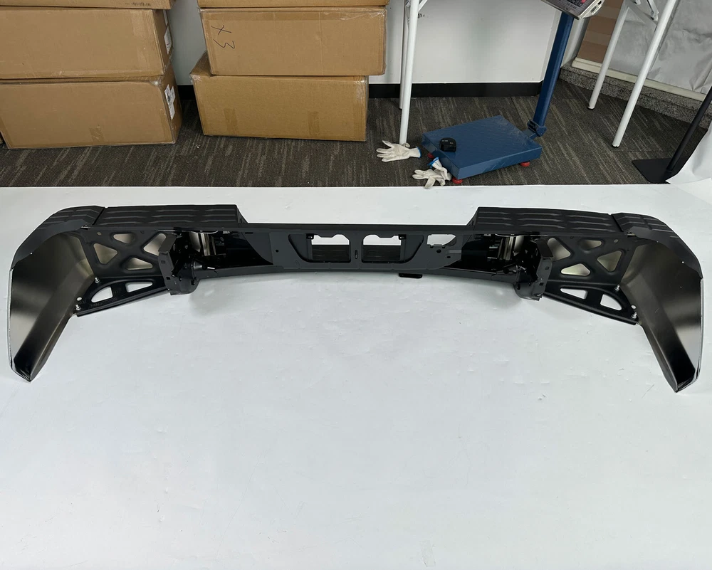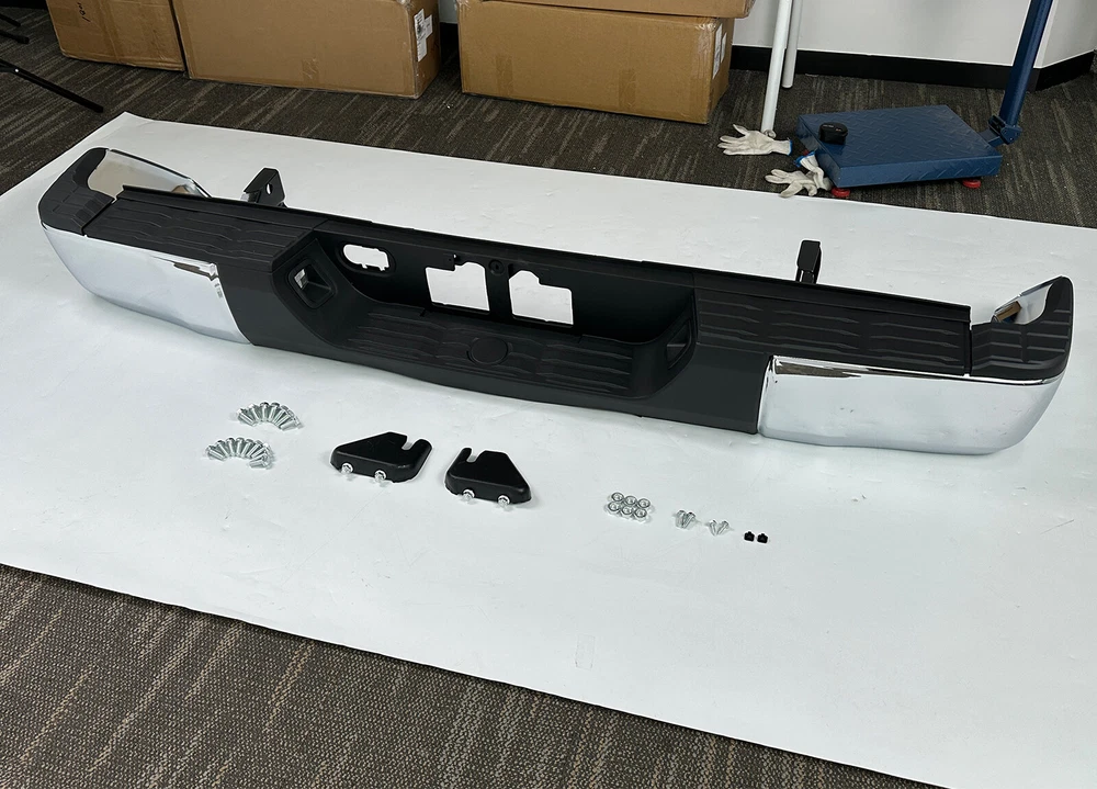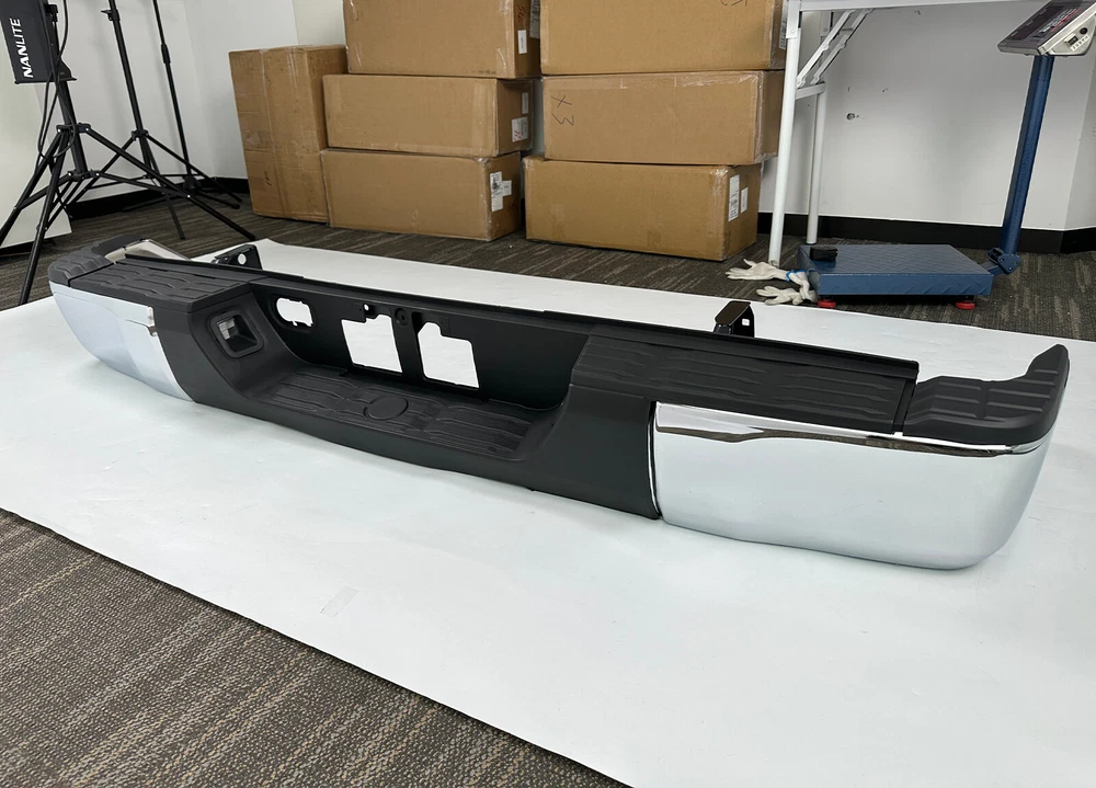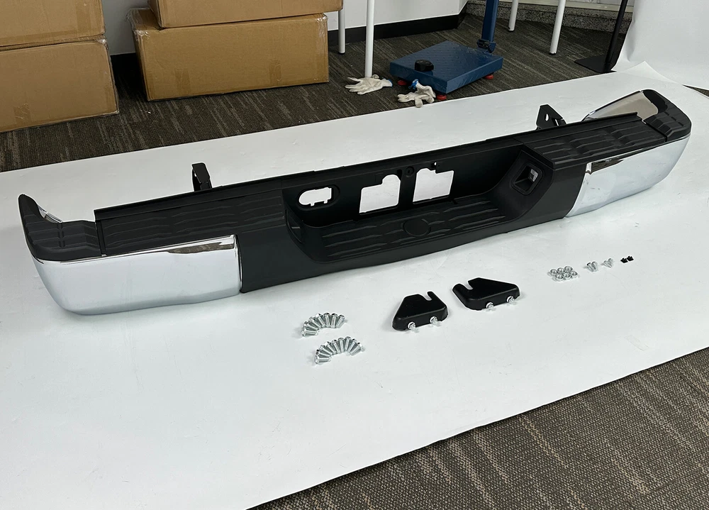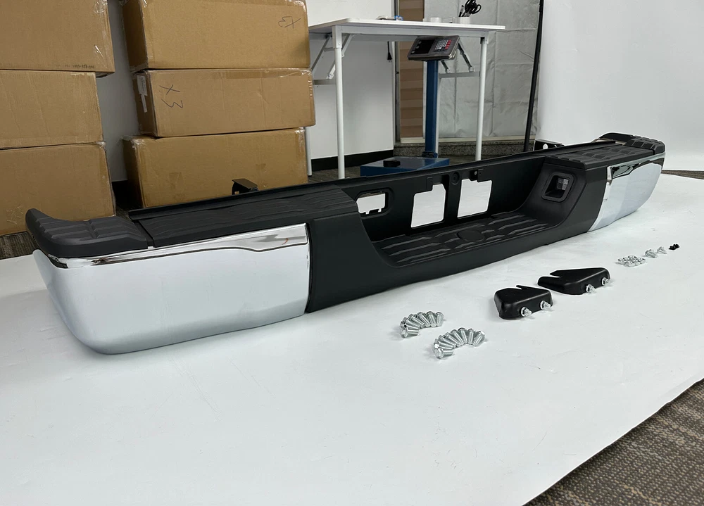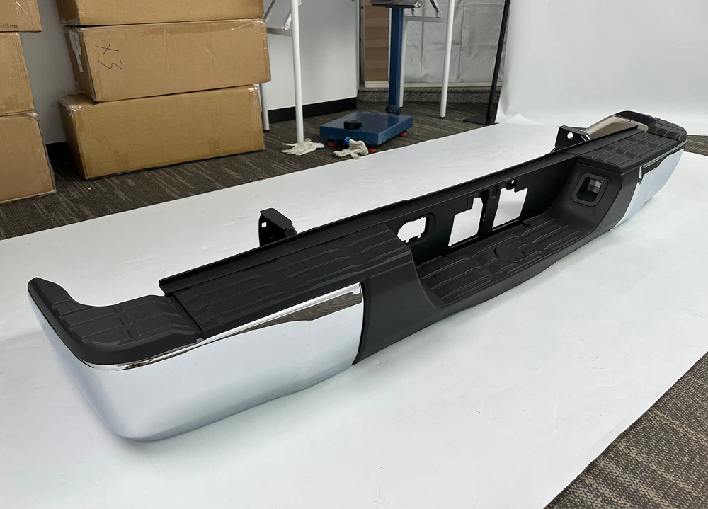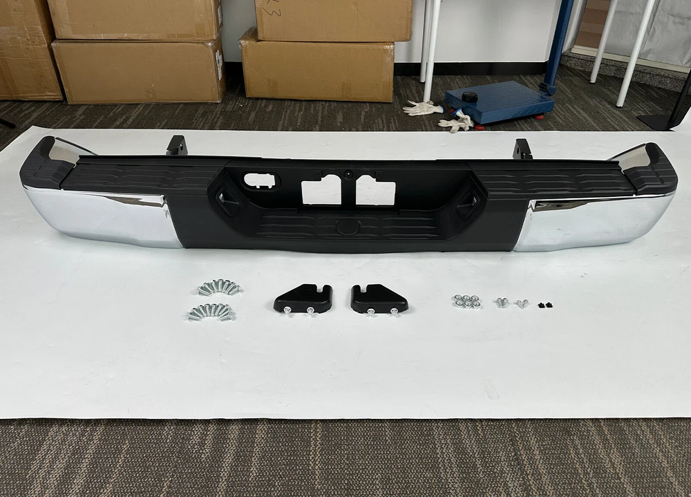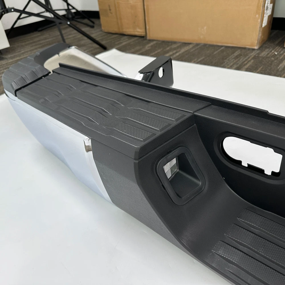 Color:Chrome + Black Surface Finish:Chrome Material:Steel + Plastic Placement on Vehicle:Rear Aftermarket Replace Number for TO1103119, TO1104123, TO1105123, TO1191104, TO1196102, TO1197102, TO1190103, TO1162103, TO1126100, TO1127100 Fits: For Toyota Tundra 2014-2021 Fit Models Without Sensor Hole Only Package: 1 set of Rear Step Bumper