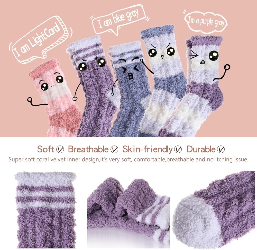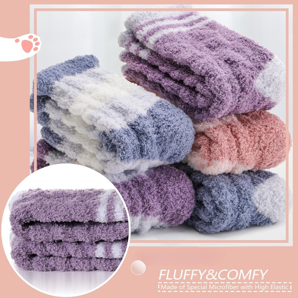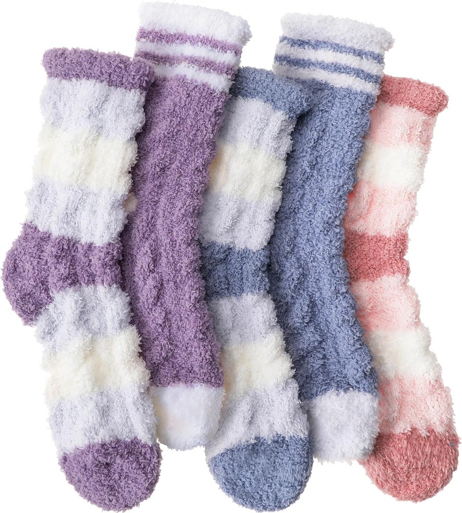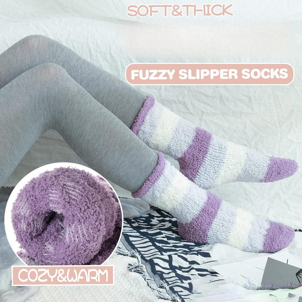 About this item FUZZY AND SOFT : The fuzzy socks is blend of high quality materials, super soft coral velvet inner design, It's very soft, comfortable and breathable, no itching issue. It's a great gift and also a perfect socks for women or girls. MICROFIBER & HIGH ELASTIC : This fuzzy socks designed with special microfiber, High elastic microfiber fabric and soft soft touch features will make your feet feel comfortable and keep the feet warm. ONE SIZE FIT MOST : These Women / Girls fuzzy socks come is a standard US SIZE that fit shoe sizes from US 5 - 10, so everyone can enjoy these colorful, fashion, funny socks. Please do not iron them and suggesting wash them by hand, Great quality socks require the proper care! FIT MANY OCCASIONS : This fuzzy socks are suitable for many situation, you can wear them as cabin socks, sleeping socks, school socks, outdoor socks, home socks, christmas socks, slipper socks, boot socks, funny socks, thermal socks, microfiber socks, house socks, cozy socks, sherpa socks, novelty socks,fleece lined socks in Spring, fall, winter season or in any cold weather or snow areas! BEST GIFT OPTION : This unique fuzzy socks with cute, luxury and high-class, It will be a perfect present for christmas gift, white elephant gift, birthday gift, mother's day gift, christmas stocking stuffer, valentines day gift or halloween gift.