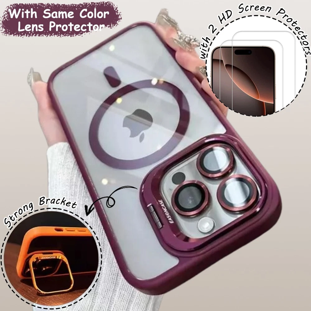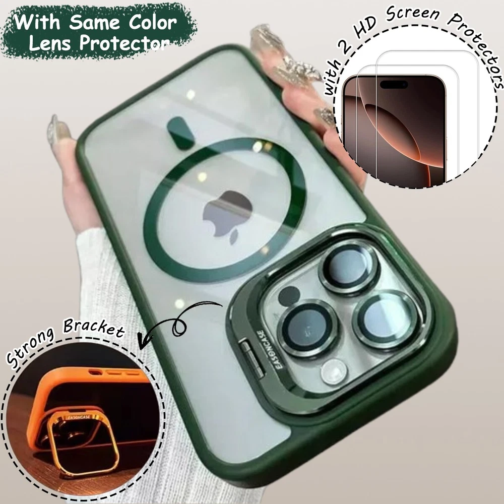 For iPhone 16 15 14 13 12 11 Pro Max Shockproof Mag Case + Camera Lens Screen Protector + HD Screen Protector ❤️4-IN-1✅1 xCase+2 screen & 1 Set Camera Protector Package includes: 1x Case 1x Set of Lens Proetctor 2x HD Screen Protector Compatible Model: For iPhone 16 Pro Max For iPhone 16 Pro For iPhone 16 Plus For iPhone 16 For iPhone 15 Pro Max For iPhone 15 Pro For iPhone 15 Plus For iPhone 15 For iPhone 14 Pro Max For iPhone 14 Pro For iPhone 14 Plus For iPhone 14 For iPhone 13 Pro Max For iPhone 13 Pro For iPhone 13 For iPhone 13 Mini For iPhone 12 Pro Max For iPhone 12 Pro For iPhone 12 For iPhone 12 Mini For iPhone 11 Pro Max For iPhone 11 Pro For iPhone 11 Feature: Premium Materials: High-quality acrylic back and soft TPU sides provide superior protection and durability. Crystal Clear & Anti-Yellowing: Enjoy a pristine, transparent look that resists yellowing over time. Camera Frame Stand: Innovative built-in stand around the camera frame for convenient horizontal video watching. Perfect Fit: Precise cutouts for all buttons, ports, and the camera, ensuring easy access and full functionality. Free Lens Protector: Includes a matching color camera lens protector for added protection and style. Specification: Material: TPU+PC Color: Black/Dark Purple/Dark Green/Dark Blue/Light Purple/Light Blue/Light Green/Orange/Red/Pink/Coffee
