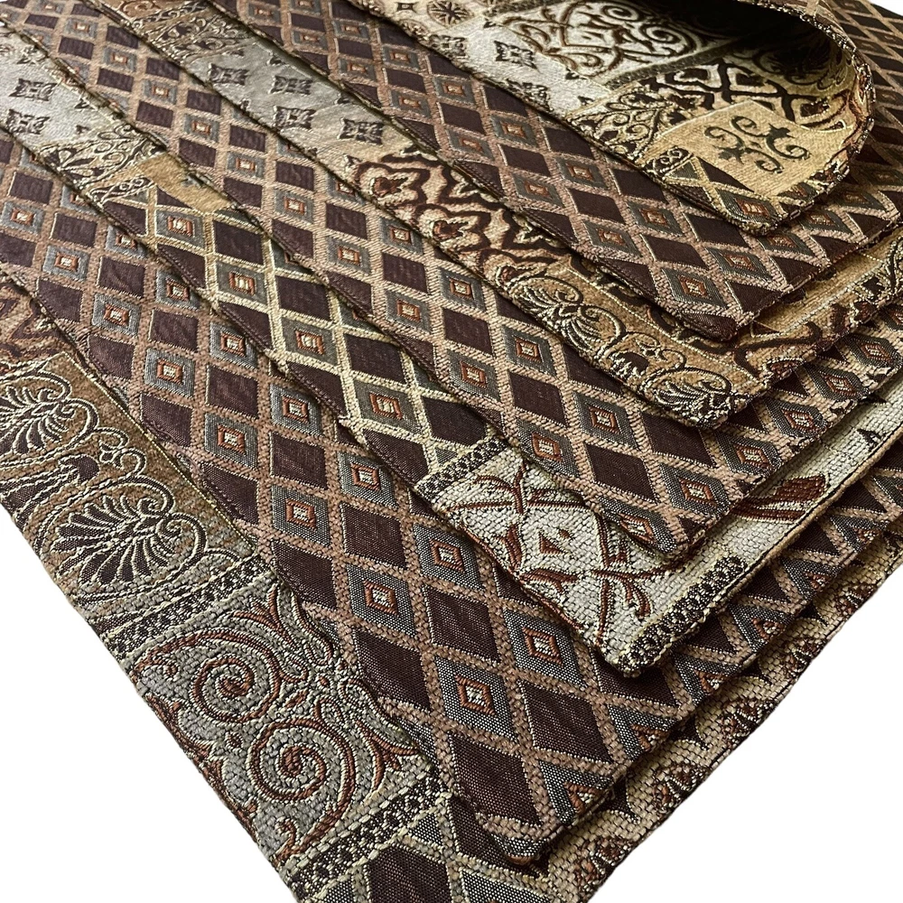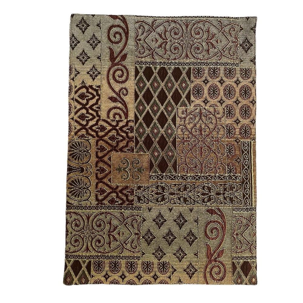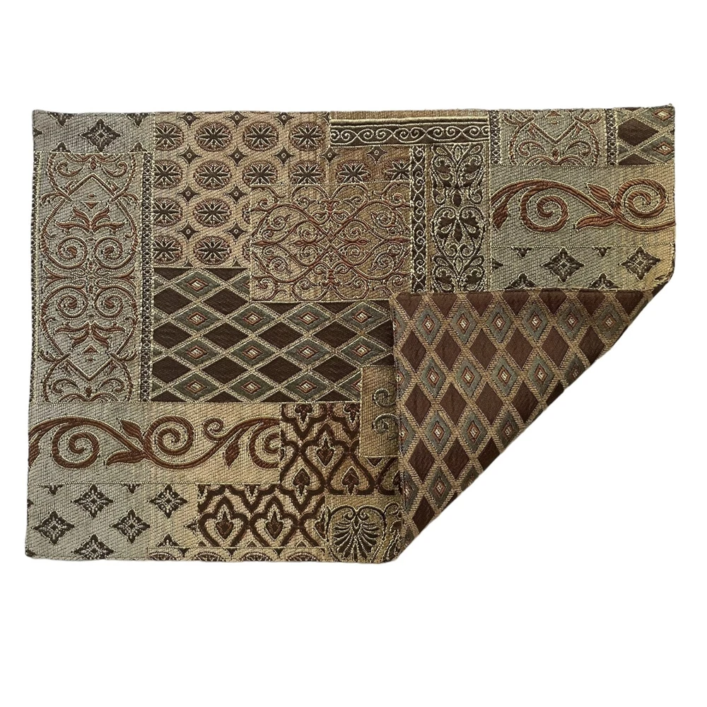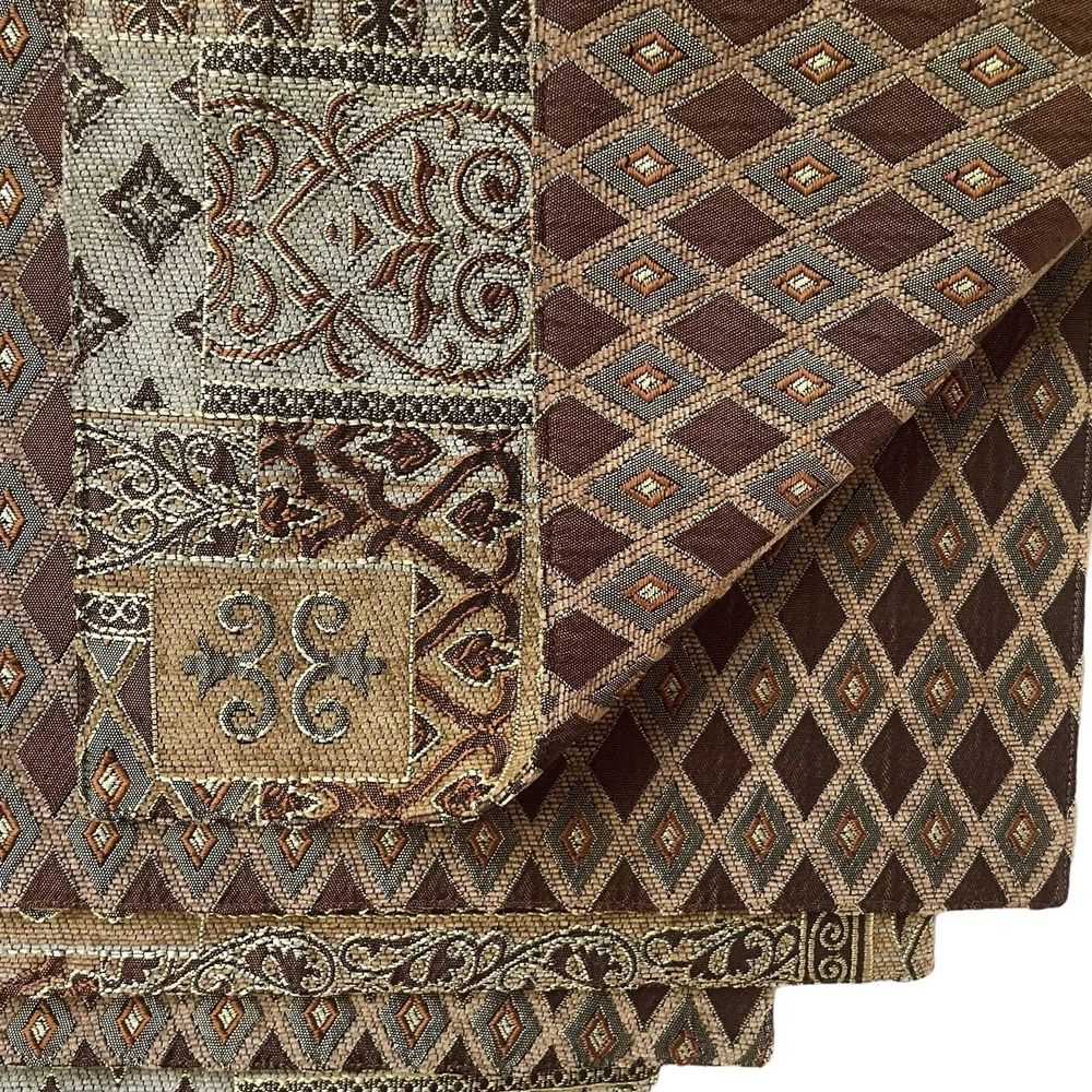 These gorgeous rectangular placemats are unbranded in the classic traditional style. The set of 7 ( table for 6 + a spare ) chenille placemats are reversible, giving you two different options to create a lavish and chic atmosphere. * measures 13.5 in x 19.5 in * soft, durable, wrinkle resistant and can be spot cleaned * luxury chenille fabric in browns, muted turquoise, rust and gold Excellent pre-owned condition. Ships quick in 1 business day