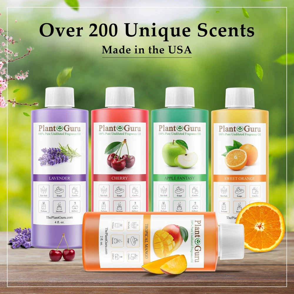 Largest Variety Of Fragrance Oils on eBay 105+ Scents To Choose From Premium Grade Fragrance Oils 4 oz. / 4 ounces * ALCOHOL FREE ** PHTHALATE FREE * 100% CONCENTRATED C andles, Soaps, Incense, Wax tart , Creams, Lotions, Bath Bombs USA MANUFACTURER Please Read !!! BUY 4 GET 4 FREE Must add all 8 to cart to qualify for this promotion. You will only be charged for 4 at checkout !!!!FREE SHIPPING!!!! ✅ PHTHALATE & ALCOHOL FREE - An exotic fragrance that's safe on your skin without harmful chemicals. ✅ DIFFUSER - Add a few drops to any aromatherapy diffuser (steam or reed) and fill your entire room with a aromatic bliss ✅ DO IT YOURSELF - Candles, Soaps, and More - Including slime making, perfumes, air fresheners, homemade lotions, cleaning products, aromatherapy, soap making, candle making, bath bombs, potpourri, reed diffusers, and more! ✅ LEADERS IN AROMATHERAPY - Plant Guru has been a leading supplier in the aromatherapy industry since 2011 - Offering high quality essential oil s and fragrance oil s for a wide range of applications. All our fragrance s are custom made right here in the USA. ✅ ONE STOP FRAGRANCE SHOP – Here at Plant Guru we carry a wide variety of pure essential oil s, fragrance oil s, incense and resins. WHY SHOP ANYWHERE ELSE!!! Choose Scent From Drop Down Menu NEED A BIGGER SIZE? Click on the link below to view our Gallon 8 lbs. Fragrance oils BULK WHOLESALE L I N K > > Catalog #1 (A - K) L I N K > > Catalog #2 (L - Z) L I N K > > FRAGRANCE OILS GALLON 8 lbs. BULK WHOLESALE The oils can be used in candle making, tart making, soap making, other bath & body products, and can be used in warmers/burners or fragrance lamps. L I N K > > > VIEW OUR FULL LINE OF FRAGRANCE OILS HERE Check out our store for Pure Aromatherapy Essential Oils Click on Link Below to view our full line of Essential Oils, Carrier Oils and Body Butter s Click on Link Below to view our full Butters and Oils list LINK >>> 100% Pure Butters LINK >>> African Black Soap LINK >>> Carrier Oils / Pure Plant Oils LINK >>> 100% Pure Essential Oils, Therapeutic Grade. LINK >>> Pure Essential Oil Blends Why Plant Guru ? We source the finest quality ingredients and supplies from ethical producers worldwide. We supply all of our products at market leading prices with no gimmicks. We never sacrifice quality for price. The customer is always right and should always be treated the way our customer service reps would like to be treated. Appreciate every customer, large and small and do your best to service them. About Plant Guru Our business was born online offering quality essential oils at a fair price. No advertising, No marketing plan, No multi pyramid pricing. This allows us to pass on a huge savings to our customers. We provide quality essential oils at the most affordable prices. From our experience if you stick to your principles, the business will take care of itself. These beliefs have allowed us to do great things. Our Mission Plant Guru is a small family ran business with a passion for essentials. "Our business revolves round this passion" As essential oil users in our personal life, We were tired of the multi marketing companies. The prices for a small 15ml. bottle were getting is ridiculous. Everyone should be able to experience the healing power of essential oils. Shipping We ship within one business days of payment, usually sooner. *Standard Shipping takes between 3-5 business days. * We use a selection of shipping services such as UPS, FedEx, USPS etc. *Expedited shipping takes between 2-3 business days. *PLEASE PROVIDE A PHYSICAL ADDRESS. Feedback * Positive feedback is provided on every transaction you make with us and we ask that you do the same. * Once we have been notified that you have received your item and are happy with it, we will post you a feedback. * If for any reason, if you decide to leave a neutral or negative feedback, please contact us first and let us mutually resolve it. It is impossible to address issues if we do not know about them! * We care for your satisfaction and will make sure that you are happy with the transaction to post us your FIVE STAR ratings in all areas. View more great items