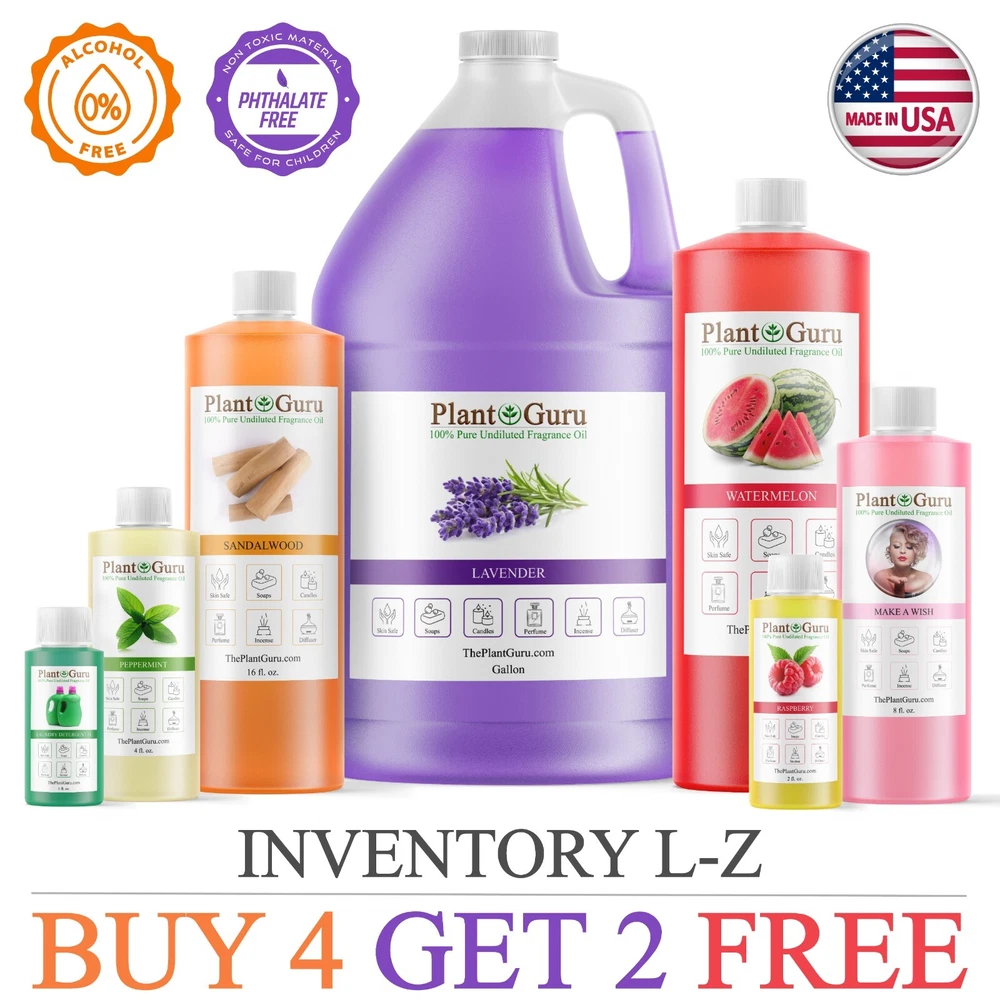 Largest Variety Of Fragrance Oils on eBay 100+ Scents To Choose From Premium Grade Fragrance Oils * ALCOHOL FREE ** PHTHALATE FREE * 100% CONCENTRATED UNDILUTED OILS C andles, Soaps, Incense, Wax tart , Creams, Lotions, Bath Bombs OVER 150 DIFFERENT SCENTS TO CHOOSE FROM Click On Link To View >> > Catalog #1 (A - K) Click On Link To View >> > Catalog #2 (L - Z) USA MANUFACTURER Please Read !!! BUY 4 GET 2 FREE Must ADD all 6 items to cart to qualify for this promotion. You will only be charged for 4 at checkout. If you only add 4 to the cart you will only receive 4 MUST ADD 6 TO CART TO QUALIFY ✅ PHTHALATE & ALCOHOL FREE - An exotic fragrance that's safe on your skin without harmful chemicals. ✅ DIFFUSER - Add a few drops to any aromatherapy diffuser (steam or reed) and fill your entire room with a aromatic bliss ✅ DO IT YOURSELF - Candles, Soaps, and More - Including slime making, perfumes, air fresheners, homemade lotions, cleaning products, aromatherapy, soap making, candle making, bath bombs, potpourri, reed diffusers, and more! ✅ LEADERS IN AROMATHERAPY - Plant Guru has been a leading supplier in the aromatherapy industry since 2011 - Offering high quality essential oil s and fragrance oil s for a wide range of applications. All our fragrance s are custom made right here in the USA. ✅ ONE STOP FRAGRANCE SHOP – Here at Plant Guru we carry a wide variety of pure essential oil s, fragrance oil s, incense and resins. WHY SHOP ANYWHERE ELSE!!! Choose Scent From Drop Down Menu NEED A BIGGER SIZE? Click on the link below to view our Gallon 8 lbs. Fragrance oils BULK WHOLESALE L I N K > > Catalog #1 (A - K) L I N K > > Catalog #2 (L - Z) L I N K > > FRAGRANCE OILS GALLON 8 lbs. BULK WHOLESALE The oils can be used in candle making, tart making, soap making, other bath & body products, and can be used in warmers/burners or fragrance lamps. L I N K > > > VIEW OUR FULL LINE OF FRAGRANCE OILS HERE Check out our store for Pure Aromatherapy Essential Oils Click on Link Below to view our full line of Essential Oils, Carrier Oils and Body Butter s Click on Link Below to view our full Butters and Oils list LINK >>> 100% Pure Butters LINK >>> African Black Soap LINK >>> Carrier Oils / Pure Plant Oils LINK >>> 100% Pure Essential Oils, Therapeutic Grade. LINK >>> Pure Essential Oil Blends Why Plant Guru ? We source the finest quality ingredients and supplies from ethical producers worldwide. We supply all of our products at market leading prices with no gimmicks. We never sacrifice quality for price. The customer is always right and should always be treated the way our customer service reps would like to be treated. Appreciate every customer, large and small and do your best to service them. About Plant Guru Our business was born online offering quality essential oils at a fair price. No advertising, No marketing plan, No multi pyramid pricing. This allows us to pass on a huge savings to our customers. We provide quality essential oils at the most affordable prices. From our experience if you stick to your principles, the business will take care of itself. These beliefs have allowed us to do great things. Our Mission Plant Guru is a small family ran business with a passion for essentials. "Our business revolves round this passion" As essential oil users in our personal life, We were tired of the multi marketing companies. The prices for a small 15ml. bottle were getting is ridiculous. Everyone should be able to experience the healing power of essential oils. Shipping We ship within one business days of payment, usually sooner. *Standard Shipping takes between 3-5 business days. * We use a selection of shipping services such as UPS, FedEx, USPS etc. *Expedited shipping takes between 2-3 business days. *PLEASE PROVIDE A PHYSICAL ADDRESS. Feedback * Positive feedback is provided on every transaction you make with us and we ask that you do the same. * Once we have been notified that you have received your item and are happy with it, we will post you a feedback. * If for any reason, if you decide to leave a neutral or negative feedback, please contact us first and let us mutually resolve it. It is impossible to address issues if we do not know about them! * We care for your satisfaction and will make sure that you are happy with the transaction to post us your FIVE STAR ratings in all areas.
