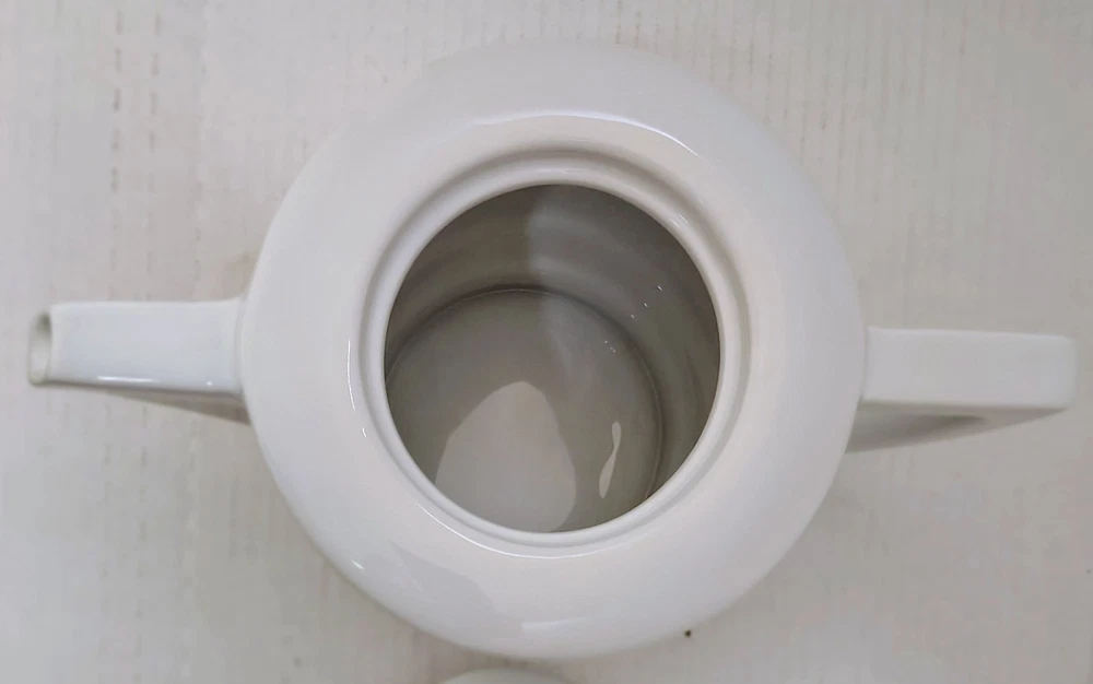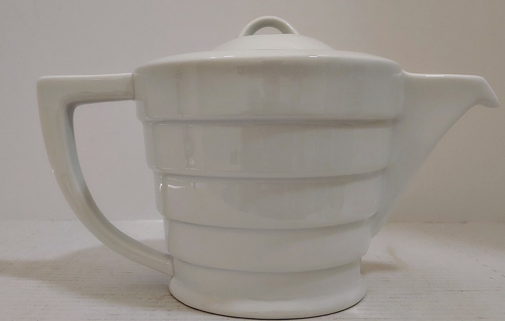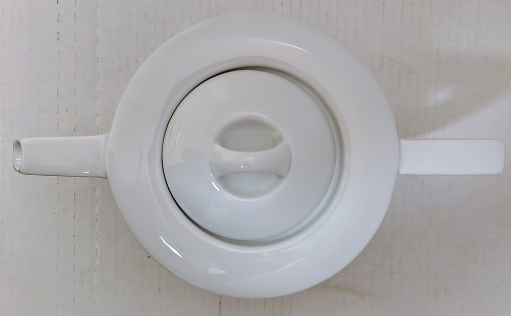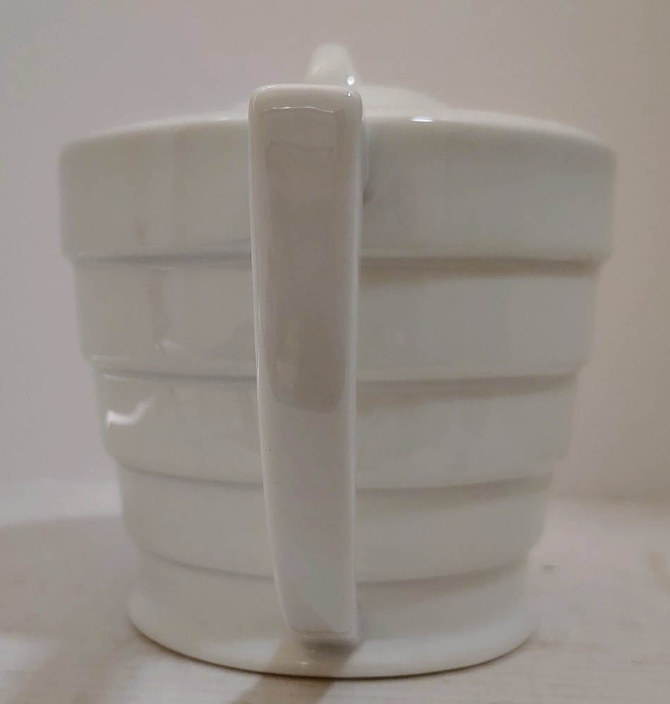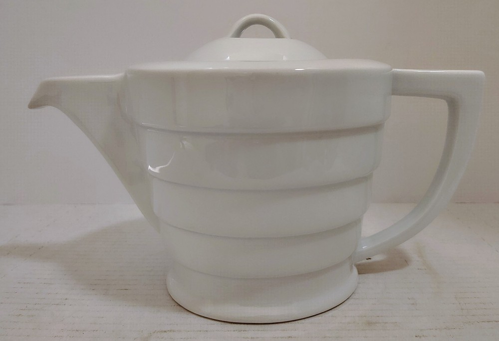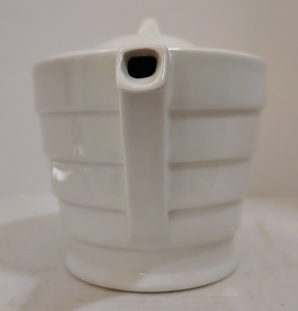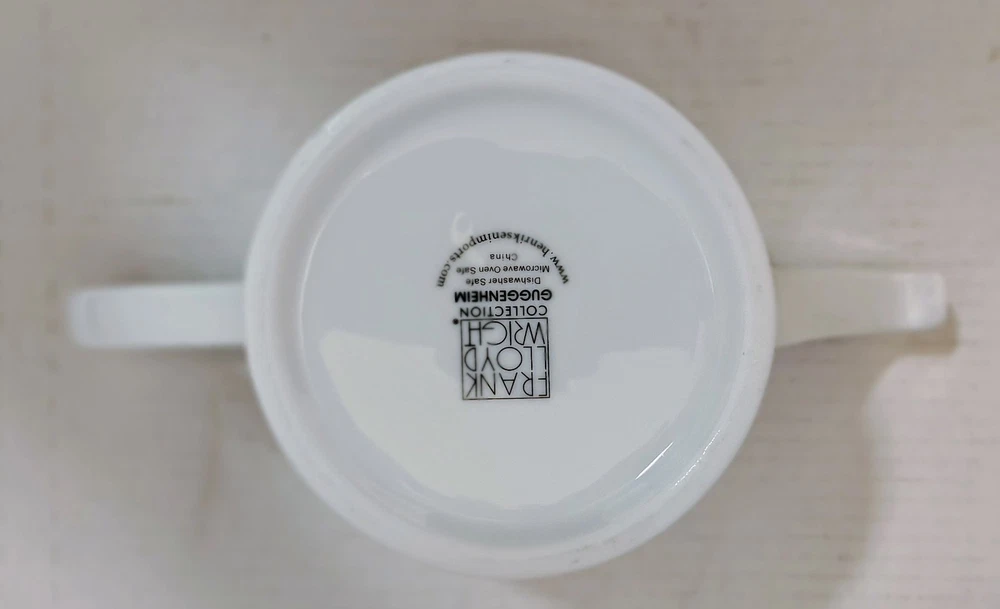 Frank Lloyd Wright Collection Guggenheim Ceramic White Teapot Henriksen Imports The Frank Lloyd Wright Collection Guggenheim Ceramic White Teapot by Henriksen Imports is a modern and stylish addition to any kitchen or dining room. This teapot, with a sleek white ceramic finish and glossy surface, holds up to 5 cups of tea and stands at 6.5" tall with a diameter of 6". Designed by the renowned architect Frank Lloyd Wright, this teapot embodies a contemporary design aesthetic that is sure to impress guests and elevate your home decor. Made in China, this teapot is a functional and eye-catching piece for any tea lover. This item is USED in VERY GOOD condition.