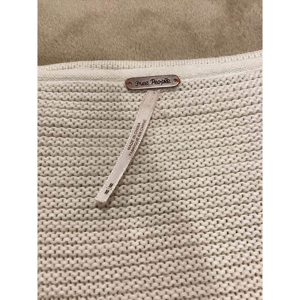 Free People Cream Colored 100% Cotton V-Neck Sweater, size Medium, long sleeve, raw seams, oversized