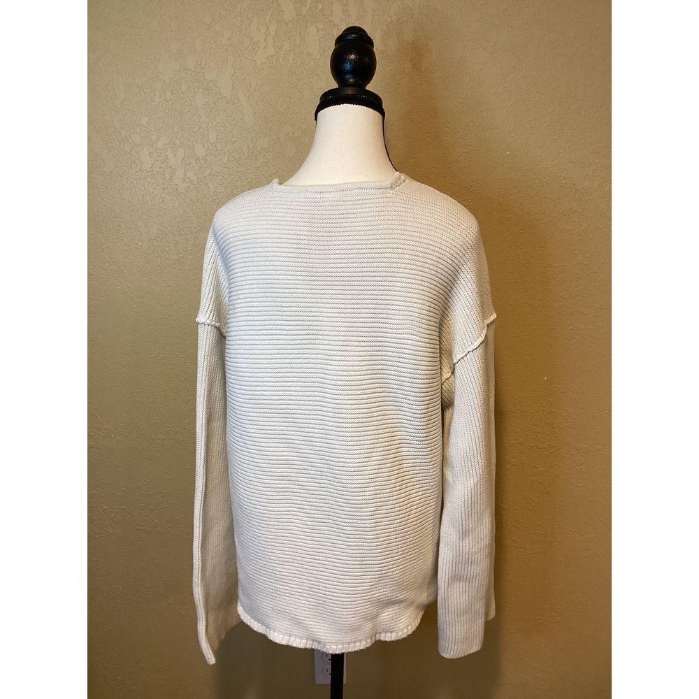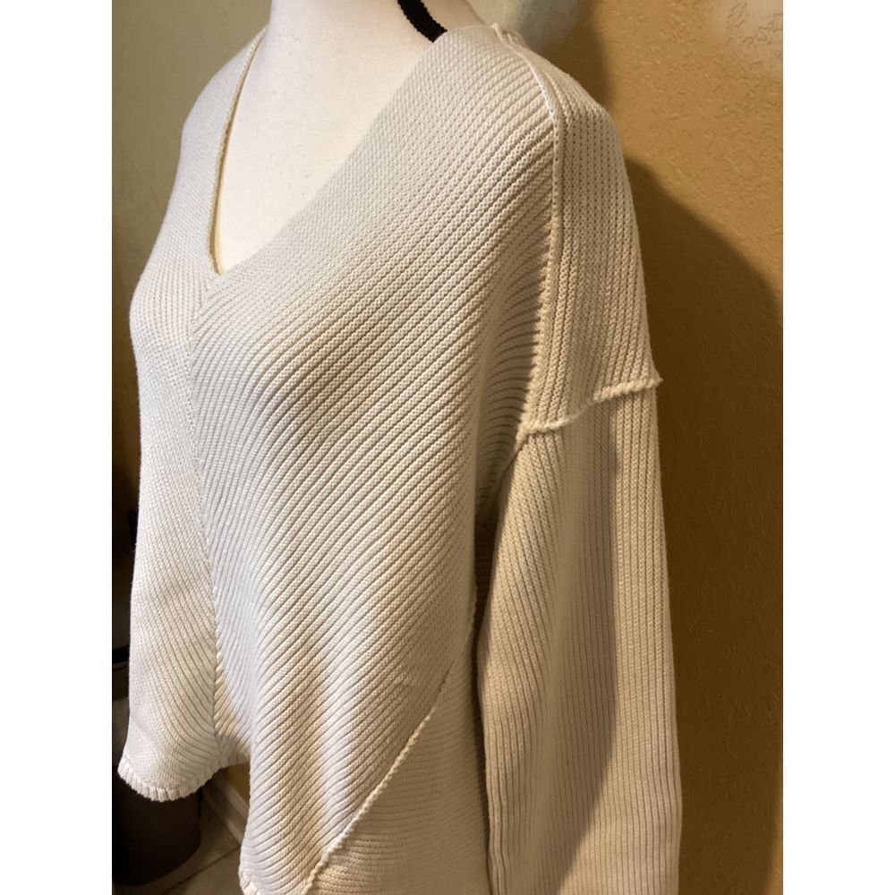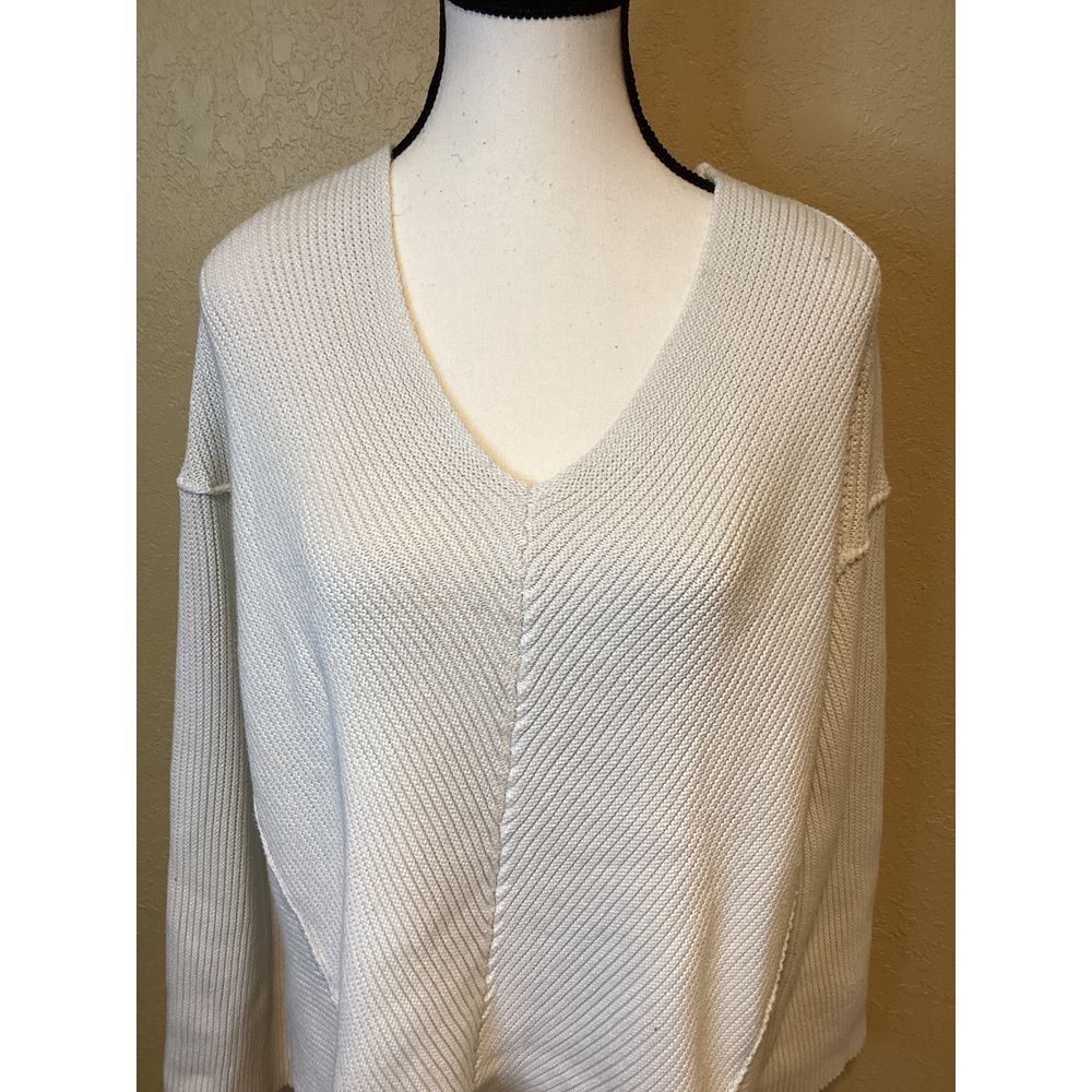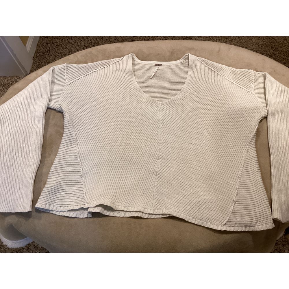 Free People Cream Colored 100% Cotton V-Neck Sweater, size Medium, long sleeve, raw seams, oversized...