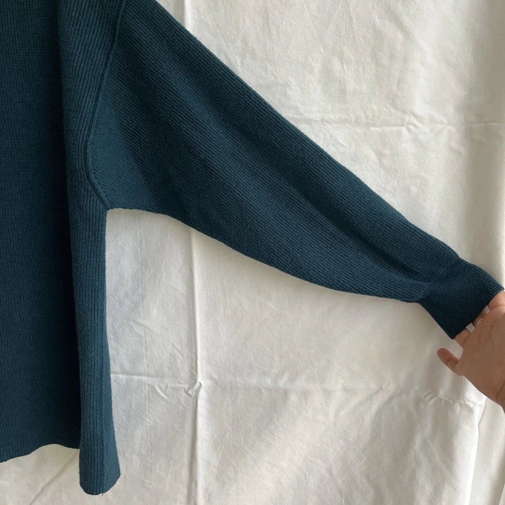 Free People Jade Softly Structured Sweater Tunic green ballon sleeves, size US S, slouchy, comfortable, cozy, mock neck. Condition: Excellent, Gently Used, No Flaws. Approx. Measurements Flat Across: *Armpit to Armpit: 20-1/2" *Length Shoulder to Hem: 28" *Length of Sleeve: 24" Please refer to pictures for more details.