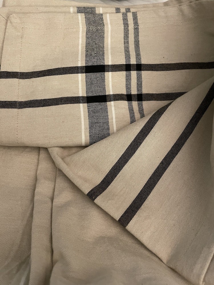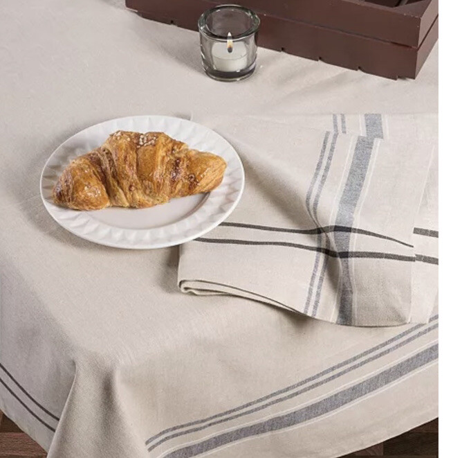French Stripe Tablecloth - Design Imports Khaki Natural Black 100 X 60” Nwot.