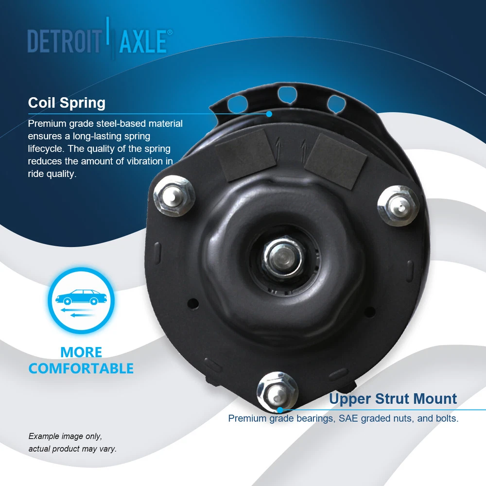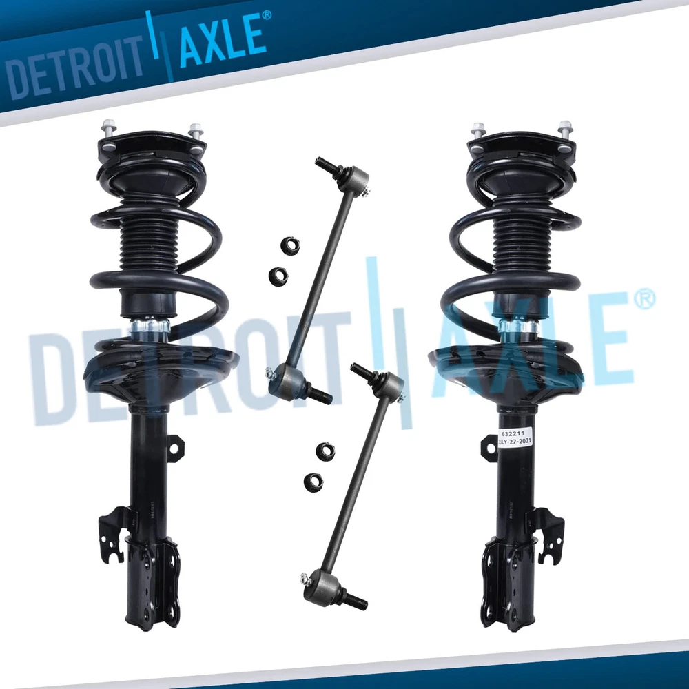 Warranty Details Click here for Warranty Details Questions? Call us! Monday-Friday 8am - 6pm ET Saturday 8am - 4pm ET Front Strut w/ Coil Spring Assembly + Sway Bar Links Fits Driver and Passenger Sides Kit Includes 1x Complete Front Quick Install Ready Strut Assembly (Driver) - 632212 1x Complete Front Quick Install Ready Strut Assembly (Passenger) - 632211 2x Front Stabilizer / Sway Bar End Links - K90344 Each Strut Assembly includes: Strut Coil Spring Boot Bumper Kit Spring Seat Insulator FITS: MAKE MODEL YEAR RANGE SPECIFIC DETAILS TOYOTA HIGHLANDER 2004 - 2005 All Models TOYOTA HIGHLANDER 2006 - 2007 excluding Hybrid Models LEXUS RX330 2004 - 2006 without Air Suspension LEXUS RX350 2007 - 2009 without Air Suspension LEXUS RX400h 2006 - 2008 All Models Not what you were looking for? Search our Store Page to find the right part! Brand Information Detroit Axle offers parts and accessories for the perfect combination of quality and value. Detroit Axle offers cost-conscious customers a full range of parts to a broad range of application. Provides extensive coverage of bearings for a broad range of automotive and heavy-duty 4x4 wheel applications. Manufactured in ISO 9000 / ISO 9001 / ISO 9002 certified facilities gives the fit, performance Reliability and durability of OE. Detroit Axle offers an extensive lineup of Wheel Bearings, CV Axles, Power & Manual Steering Rack & Pinions, Gear Boxes, Ready Struts, Drive Shafts, Prop Shafts and much more. Manufacturer Information Detroit Axle offers an extensive coverage of bearings for a large range of automotive and heavy-duty wheel end applications. Our Products are manufactured in ISO 9000 / 9001 / 9002 certified facilities. Detroit Axle products delivers the look, feel, fit and performance of OE. Manufactured with Internal bearing seals that are specifically designed to combat all types of road conditions to keep debris out and keep the bearing turning. With am OE design, simple installation and and long life as a guarantee Grease Fittings While some of the parts we sell have grease fittings, other parts come factory sealed. This does not affect the performance or quality of the parts. Due to volume of sales we cannot guarantee which type you will receive. If you would prefer a specific type please leave a message under the "message to seller" option when checking out. If we have the part available with the option you request, it will be sent out that way. If not, the part will be sent as we have it available. Payment Paypal, Visa, and MasterCard are the accepted forms of payment. Please use the eBay checkout system when paying for your order. Immediate payment is required for all orders. Shipping All orders placed before 2PM (Eastern Standard Time) will be shipped the same business day. Orders made after 2PM (Eastern Standard Time) will be shipped the following business day. All orders in the continental 48 States will be shipped FREE of charge via UPS or USPS at our discretion. Orders outside the continental 48 States (Alaska, Hawaii, Puerto Rico, US territories, or International) will be required to pay a surcharge for shipping. International orders will be shipped via USPS Priority Mail International. Return Policy Customer must contact Detroit Axle within 30 days of receiving shipment for approval of any return or exchange. Returns or exchanges will be subject to a 15% restocking fee of the original item purchased, plus cost of return shipping and replacement shipping. Exchanges due to shipping errors by Detroit Axle will not be subject to a restocking fee or shipping charges. Fitment Please consult with your mechanic, or contact us, if you are not sure of fitment for your vehicle. READ the notes on the compatibility chart. We are not responsible for incompatible items due to buyer's error, and a restocking fee as well as shipping charges will be deducted from returns or exchanges. Mobile devices do not show ebay compatibility chart; therefore we recommend viewing the listings from a computer. Track Page Views With Auctiva's FREE Counter
