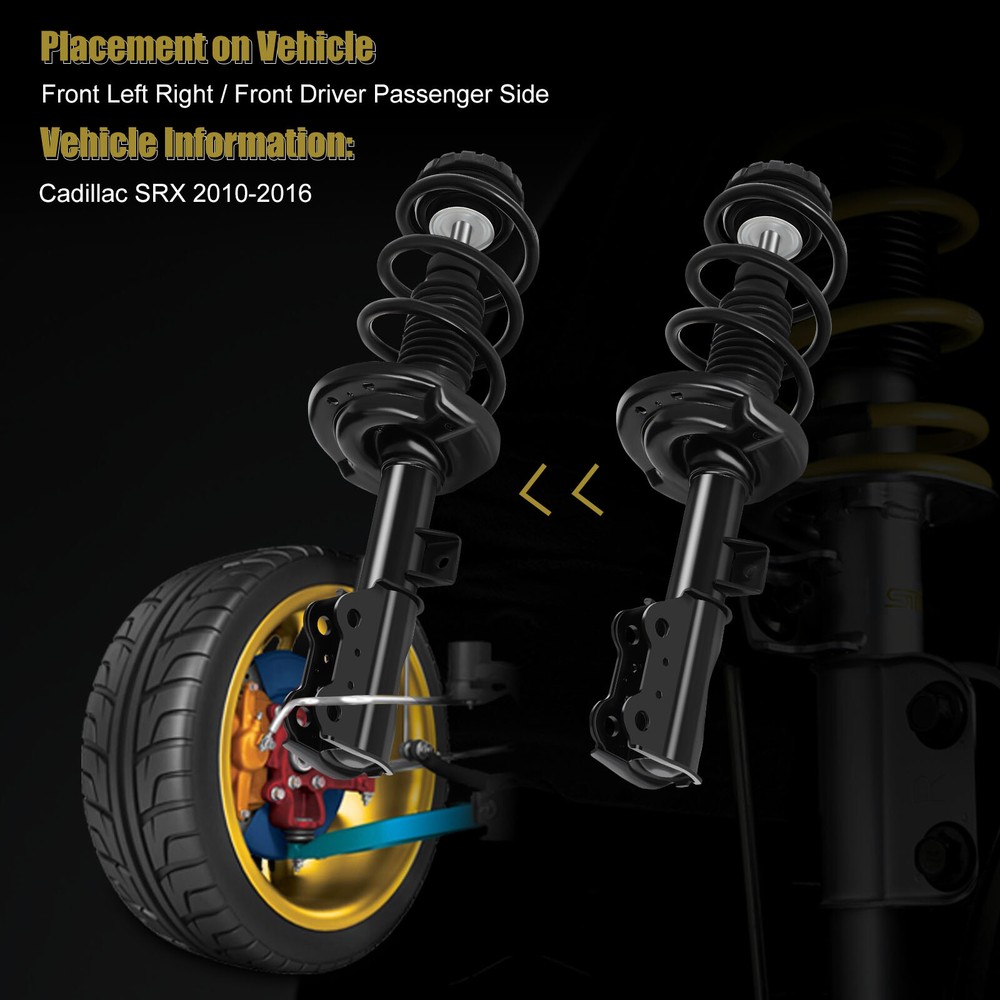 Item specifics Description: Classic autoparts only sell 100% brand new products in good condition. We do not sell any refurbished or refurbished parts. Our product includes all the components required for strut replacement in a single, fully assembled unit and is ready to install. The Complete Assembly unit is easier and faster to install than traditional struts. It is safer because we don’t need to compress coil springs. Fitment: 2010-2016 Cadillac SRXNote: Please check the Compatibility List on the listing page to make sure your exact model is included. Shocks and Struts Features & Benefits: Front Complete Struts & Shocks with Coil Spring For 2010-2016 Cadillac SRX Pair Item specifics Description: Classic autoparts only sell 100% brand new products in good condition. We do not sell any refurbished or refurbished parts. Our product includes all the components required for strut replacement in a single, fully assembled unit and is ready to install. The Complete Assembly unit is easier and faster to install than traditional struts. It is safer because we don’t need to compress coil springs. Fitment: 2010-2016 Cadillac SRX Note: Please check the Compatibility List on the listing page to make sure your exact model is included. Shocks and Struts Features & Benefits: ✔ Made to OE quality standards and performance. ✔ High corrosion resistance and long service life . Steel rod is mirco-polished with double chrome plate. ✔ Newer Valving technology operates in stages based on the velocity of the car. ✔ Use Teflon bonded piston seal to keep friction down and temperature cooler so that valving stays firmer. ✔ All-around welding on the spring seat. ✔ Piston seal is provided by an OE Supplier. Each complete strut & spring assembly consists of: ✔ Spring holder ✔ Strut ✔ Lower spring isolator ✔ Boot kit ✔ Bumper ✔ Coil spring ✔ Upper strut mount ✔ Upper spring seat About Complete Struts w/Spring Assembly Suspension Work: ✔ Shock absorbers use a piston and hydraulic fluid to create resistance against the up-and-down movement of your vehicle as it goes over various bumps on the road. ✔ Leaking shocks are caused by a damaged piston shaft, bad shock seals, worn chrome coating, oil mist residue, and regular wear and tear. ✔ A suspension leak will lead to a bumpy ride for you on the road and can even compromise your safety. The Causes Behind Leaking Shocks: If your shocks are leaking fluid, they could be less efficient at both dampening jolts and heat dissipation. Pro Tip: Shocks can fail internally but never leak externally. Failed shocks don’t dampen spring oscillations. This means that when you go over a bump, the end of the vehicle with failed shocks will continue to bounce rather than just go over the bump like it should. Generally, if there’s a leak, you’ll notice decreased performance in your shocks, leading to a bumpier ride, unusual noises, irregular tire wear, and reduced handling and braking ability. Alternatively, you might be mistaking natural shock operations for a leak. The following are some causes that can lead to your shocks leaking, whether as a result of damage or as part of their shock-absorbing process: ✔ Oil Mist Residue Oil mist residue is a perfectly natural part of your shocks operating as designed. It mostly appears on very dry shocks because you won’t notice it otherwise. Oil mist occurs when the piston rod spreads a very small amount of oil from the cylinder onto the seal. The rod appears damp, but it won’t feel wet if you touch it. However, if you see oil mist that is coming from inside the shock, you can’t add oil. In this case, you must replace the shock and it’s best to replace them in pairs (both front or both rear). ✔ Damaged Piston Shaft A damaged shaft can lead to leaking shock fluid. When the shaft has scratches or other damage, it can tear the seal, which leads to oil loss and reduced performance. These scratches and dents can come from flying pieces of debris scratching the surface or from the shaft being improperly installed. ✔ Bad Shock Seals Shock seals block the inside of your shocks from the dirt and grime of the outside world. Over time, seals may become brittle and get torn easily. Rocks, gravel, and other debris can also damage your shock seals, leading to an eventual leak. ✔ Worn Chrome Coating Your car shocks might be leaking because the coating on one of the piston rods is worn down. If the damper isn’t aligned properly, the coating is rubbed away. The shock seal and piston rod guide then sustain more damage as the misaligned damper continues to operate. Once these parts wear down, the shocks will leak ✔ Wear and Tear General wear and tear will eventually lead to front and rear leaking shocks. Your shocks go through a lot of abuse and will eventually leak and need replacing. The Package Include: ✔ Front Pair Quick Complete Shocks Strut & Springs Assemblies Warranty: This item is backed by a 1 Year Warranty . In the event this item should fail due to manufacturing defects during intended use, we will replace the part free of charge for the original purchaser. Thank you for your support! Item Specifics Brand classic-autoparts Manufacturer Part Number C13255601APS Manufacturer Warranty 1 Year Superseded Part Number 172909 Vehicle Location Front,Left,Right Adjustable No Modified Item No Greasable or Sealed Sealed Gas Charged Shock Yes Kit Parts Included Strut, Coil Spring,Boot,Bumper Kit,Spring Seat,Isolator Surface Finish Powder coating Retrurn Free Return on damaged or defective items OE Spec or Performance OE Spec Quantity 2 Pcs Payment 1. The note there will NOT be read. If you want to change the shipping address, please contact us by eBay messages. 2.if you want cancel orders or change address pls contact us within 6 hours after payment,or we are not responsible for shipping a replacement. Shipping 1.All the orders are shipped from USA warehouse. 2.Orders processed within 24 hours of payment 
