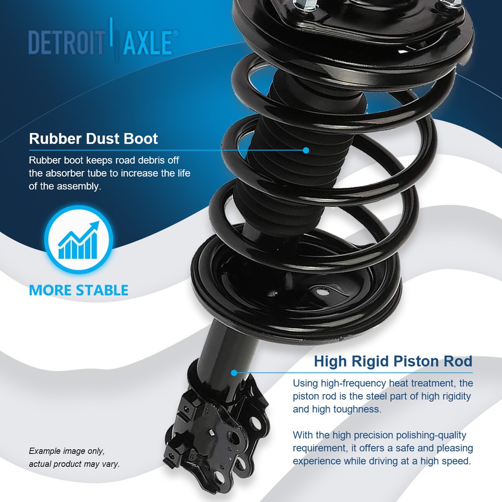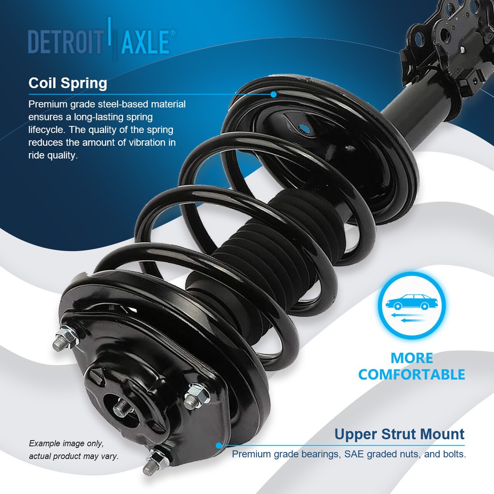 Warranty Details Click here for Warranty Details Questions? Call us! Monday-Friday 8am - 6pm ET Saturday 8am - 4pm ET Front Strut & Coil Spring Assembly Set Kit Includes 1x Complete Front Strut & Coil Spring Assembly - Passenger Side - 171135 Pre-assembled and ready to install! No special tools required! Each Assembly includes: Strut Coil Spring Boot Bumper Kit Spring Seat Isolator FITS MAKE MODEL YEAR RANGE SPECIFIC DETAILS KIA MAGENTIS 2007 - 2010 All Models KIA OPTIMA 2006 5th Vin Digit E KIA OPTIMA 2007 - 2010 All Models KIA RONDO 2007 - 2011 All Models Not what you were looking for? Search our Store Page to find the right part! Brand Information Detroit Axle, offers parts and accessories for the perfect combination of quality and value. Detroit Axle offers cost-conscious customers a full range of parts to a broad range of applications Provides extensive coverage of bearings for a broad range of automotive and heavy-duty 4x4 wheel applications. Manufactured in ISO 9000 / ISO 9001 / ISO 9002 certified facilities gives the fit, performance Reliability and durability of OE. Detroit Axle offers an extensive lineup of Wheel Bearings, CV Axles, Power & Manual Steering Rack & Pinions, Gear Boxes, Ready Struts, Drive Shafts, Prop Shafts and much more. Manufacturer Information Detroit Axle offers an extensive coverage of bearings for a large range of automotive and heavy-duty wheel end applications. Our Products are manufactured in ISO 9000 / 9001 / 9002 certified facilities. Detroit Axle products deliver the look, feel, fit and performance of OE. Manufactured with Internal bearing seals that are specifically designed to combat all types of road conditions to keep debris out and keep the bearing turning. With an OE design, simple installation and long life as a guarantee. Payment Visa, and MasterCard are the accepted forms of payment. Please use the eBay checkout system when paying for your order. Immediate payment is required for all orders. Shipping All orders placed before 2pm (Eastern Standard) will be shipped the same business day. Orders made after 2pm (Eastern Standard) will be shipped the following business day. All orders in the continental 48 States will be shipped FREE of charge via FedEx or USPS at our discretion. Orders outside the continental 48 States (Alaska, Hawaii, Puerto Rico, US territories, or International) will be required to pay a surcharge for shipping. International orders will be shipped via USPS Priority Mail International. Return Policy Customer must contact Detroit Axle within 30 days of receiving shipment for approval of any return or exchange. Returns or exchanges will be subject to a 15% restocking fee of the original item purchased plus cost of return shipping and replacement shipping. Exchanges due to shipping errors by Detroit Axle will not be subject to a restocking fee or shipping charges. Track Page Views With Auctiva's FREE Counter