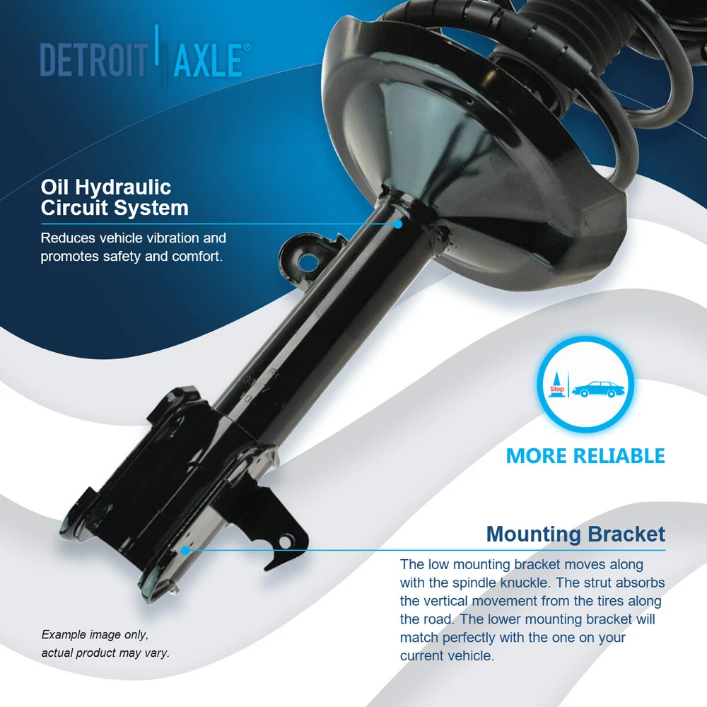 Warranty Details Click here for Warranty Details Questions? Call us! Monday-Friday 8am - 6pm ET Saturday 8am - 4pm ET 4pc Front Strut & Coil Spring Assembly + Sway Bar Set Kit Includes 1x Complete Front Strut & Coil Spring Assembly - Driver Side - 172230 1x Complete Front Strut & Coil Spring Assembly - Passenger Side - 172229 2x Front Sway Bar End Links - Driver / Passenger Side - K90349 Pre-assembled and ready to install! No special tools required! Each Assembly includes: Strut Coil Spring Boot Bumper Kit Spring Seat Isolator FITS MAKE MODEL YEAR RANGE SPECIFIC DETAILS ACURA MDX 2003 - 2005 All Models Not what you were looking for? Search our Store Page to find the right part! Brand Information Detroit Axle, offers parts and accessories for the perfect combination of quality and value. Detroit Axle offers cost-conscious customers a full range of parts to a broad range of applications Provides extensive coverage of bearings for a broad range of automotive and heavy-duty 4x4 wheel applications. Manufactured in ISO 9000 / ISO 9001 / ISO 9002 certified facilities gives the fit, performance Reliability and durability of OE. Detroit Axle offers an extensive lineup of Wheel Bearings, CV Axles, Power & Manual Steering Rack & Pinions, Gear Boxes, Ready Struts, Drive Shafts, Prop Shafts and much more. Manufacturer Information Detroit Axle offers an extensive coverage of bearings for a large range of automotive and heavy-duty wheel end applications. Our Products are manufactured in ISO 9000 / 9001 / 9002 certified facilities. Detroit Axle products deliver the look, feel, fit and performance of OE. Manufactured with Internal bearing seals that are specifically designed to combat all types of road conditions to keep debris out and keep the bearing turning. With an OE design, simple installation and long life as a guarantee. Payment Visa, and MasterCard are the accepted forms of payment. Please use the eBay checkout system when paying for your order. Immediate payment is required for all orders. Shipping All orders placed before 2pm (Eastern Standard) will be shipped the same business day. Orders made after 2pm (Eastern Standard) will be shipped the following business day. All orders in the continental 48 States will be shipped FREE of charge via FedEx or USPS at our discretion. Orders outside the continental 48 States (Alaska, Hawaii, Puerto Rico, US territories, or International) will be required to pay a surcharge for shipping. International orders will be shipped via USPS Priority Mail International. Return Policy Customer must contact Detroit Axle within 30 days of receiving shipment for approval of any return or exchange. Returns or exchanges will be subject to a 15% restocking fee of the original item purchased plus cost of return shipping and replacement shipping. Exchanges due to shipping errors by Detroit Axle will not be subject to a restocking fee or shipping charges. Track Page Views With Auctiva's FREE Counter