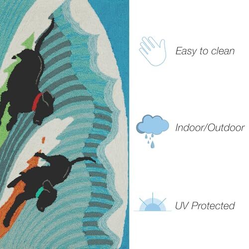 Love this rug! The surfing dogs design is so fun and colorful—it instantly brightens up my patio. The quality is amazing, soft yet durable for indoor or outdoor use. Hand-hooked details make it look premium, and it’s holding up great against sun and weather. Super easy to clean too! Perfect for adding personality to any space. Highly recommend!