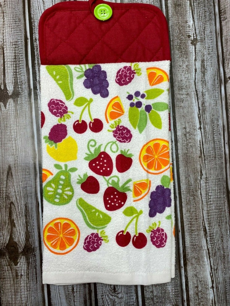 One Item included with this order. 1 Kitchen Hand Towel 15" x 25" and 1 potholder 7" x 7", sewn together to be used to hang on oven door or rod as a potholder or a hand towel or BOTH. Looks Cute hung on oven door. Thank you for your business! PH0115