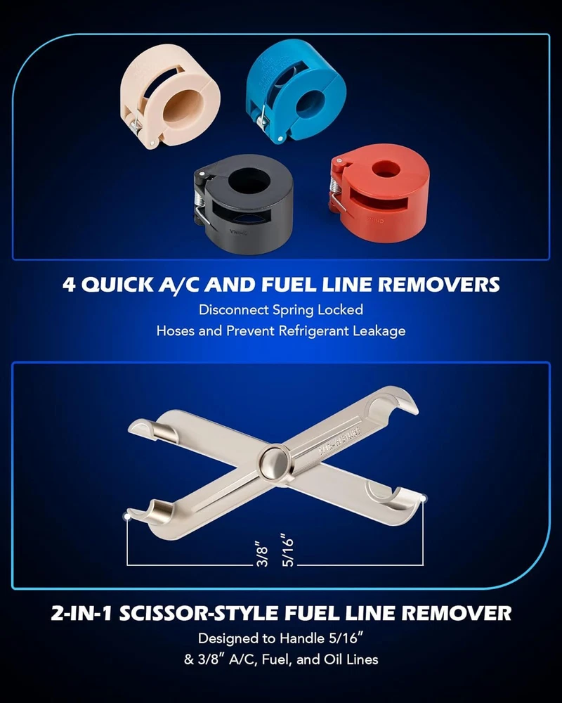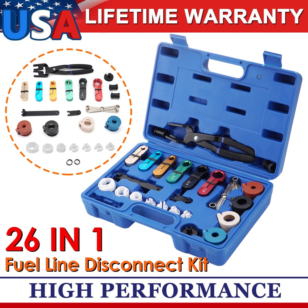 Master Quick Disconnect Tool Kit, 26pc Fuel Line Disconnect Tool Set with Fuel and AC Disconnect Pliers, Fuel Line Removal Tool Set for AC Fuel & Transmission Systems, Blue About This Item: Lifeince Best choice of motor parts Quick Disconnect Kit Fuel Line AC Transmission Clutch Oil Cooler Fitting Release Master Quick Disconnect Tool Kit, 26pc Fuel Line Disconnect Tool Set with Fuel and AC Disconnect Pliers, Fuel Line Removal Tool Set for AC Fuel & Transmission Systems, Blue About This Item: 【Disconnect Fuel Line with Ease 】: master quick disconnect tool set offers a comprehensive solution for easily disconnecting automotive AC hoses and fuel lines, compatible with various domestic vehicles, including Ford, Chevy, Dodge, and more. 【Complete Repair Kit】 : This fuel line disconnect tool kit includes 6 aluminum clip removers, 7 fuel line removers, 4 spring lock removers, 2 oil cooler line removers, a scissor-style disconnect tool, extra fuel line and AC disconnect pliers, along with other necessary accessories. All tools are provided in commonly needed SAE sizes to cover your versatile repair needs. 【Fuel and AC Disconnect Pliers】 : Effortlessly disconnect and reconnect AC and fuel lines, even in hard-to-reach areas. The extended handle provides extra leverage, while the dual fork openings make handling both single and two-step collar connector lines a breeze. 【User-Friendly Precision】 : Color-coded for easy identification, our disconnect tools seamlessly handle quick detach and spring lock connections; and custom-purpose tools also cover the unusual requirements of late-model For GM trucks, For Fords with automatic transmissions, and the special tubing in For Rangers 4.0L V6 and For Explorers 4.0L V6 . 【Durable & Convenient】 : Crafted from anodized aluminum, steel, and plastic, this fuel line disconnect kit is designed to withstand tough usage. The included blow-molded case keeps all components organized and facilitates easy storage and transportation. Package include: (As the picture shown) 1x Fuel Line and AC Disconnect Pliers 1x Scissor-Style Disconnect Tool 6x Aluminum Clip Disconnect Tools 4x Spring Lock Disconnect Tools 7x Plastic Clip Disconnect Tools 1x Fuel Line Tool For Ford 4L V6 1x AT Oil Cooler Line Tool 1x Oil Cooler Line Tool for GM Trucks 2x Rubber Bands 2x Rubber Inserts 1x Portable Case Frequently Asked Questions: Where is my item? All items are shipped out within 1 business day after full payment has been cleared. You can find the tracking number on your ebay account after shipment. Why hasn't the tracking number been updated? The automated email from Ebay system means your order has been processed but does not mean it has been shipped out. It may take up to 24 hours for the system to update. I purchased by mistake, how do I cancel the order? Please contact us ASAP. If the item has not been shipped out we can cancel the order for you. If the item was shipped out, please help to refuse the package and send us a message so we can refund full after receive the returned package. I received your item but it does not fit or is defective Please contact us so we can assist you on the matter. I tried to contact you, but cannot reach anyone. Our officer hours are 9:30AM - 5:30PM PST Monday - Friday. Emails are the best way to contact us and will reply to you within 24 hours. Item Specifics Brand Unbranded MPN Does Not Apply Type Fuel Line Disconnect Kit Set or Single Item Set Manufacturer Part Number Does Not Apply Lifetime Over 50000 Hours About after-sales Money back or replacement(Buyer's choice) Set include 1x Fuel Line and AC Disconnect Pliers Bundle Description 26 in 1 Fuel Line Disconnect Kit Payment We accept Payoneer/Paypal/Google Pay/Visa/Master Card/Amex/Discover for Payment Payment must be received within 7 business days of auction closing. We ship to ebay's address only. Please make sure your address in EBAY is matched with your shipping address before you pay. TOTAL AMOUNT DUE includes the final auction price plus S&H (Shipping and Handling). S&H will be determined based upon the ship to address. Shipping Order will be handled within 1 working days( Excluding Weekends and Public Holidays) after your payment clear. We ship to Order Detail confirmed address ONLY. Transit times are provided by the carrier, exclude weekends and holidays, and may vary with package origin and destination, particularly during peak periods. Please obtain the RMA number & returned address for any return items. Return items MUST have all ORIGINAL packaging and accessories. We will replace items which are malfunctioning, for 60 days from the date you received.Items which have physical abuse are not covered by the warranty. Returns How to send a return request: Attention: Please contact us via ebay message like the way shown above before starting a return request, so we can deal with your issue quickly and efficiently. 1.Return this item. 2. Select a reason: please choose"It's the wrong size or doesn't fit" 3. 60 days Warranty from the date of purchase covering manufacturing defects, but doesn't cover items that have seen abused, burned and damaged in any form.Please contact us if you have NOT received item beyond 5 working days, we will check it with post office and resend any missing item. 4. If you return an item purchased from us, it must be back in Factory Condition. This includes packaging, inserts, manuals etc. Please allow up to 5 Working Days for us to process your returned item.Thanks! Contact Us If you return an item purchased from us, it must be back in Factory Condition. This includes packaging, inserts, manuals etc. Please allow up to 5 Working Days for us to process your returned item.Thanks! Please use the link "Ask the Seller Question" or send "eBay message" in you "My eBay" to contact us if you have problems, special requests or suggestions, we are very glad to help you anytime. we will reply you within 24 hour. Quick Disconnect Kit Fuel Line AC Transmission
