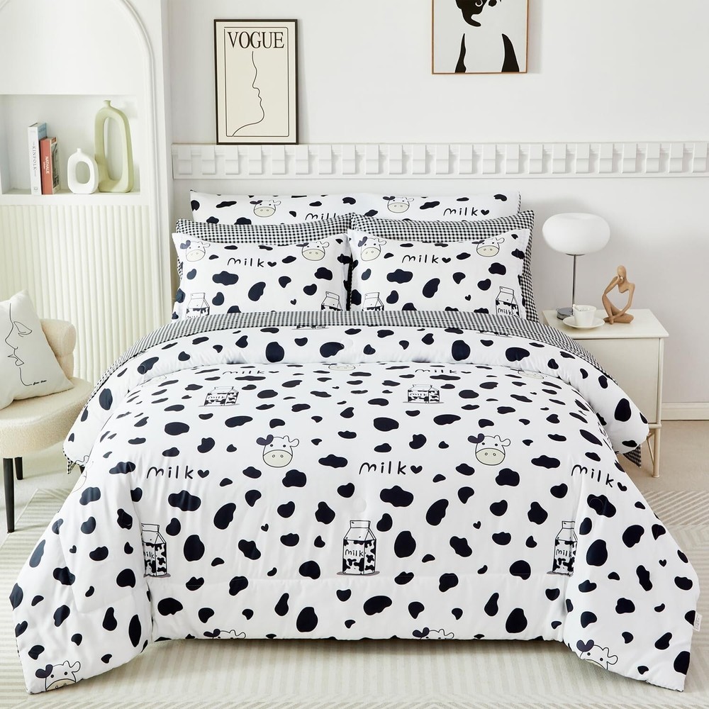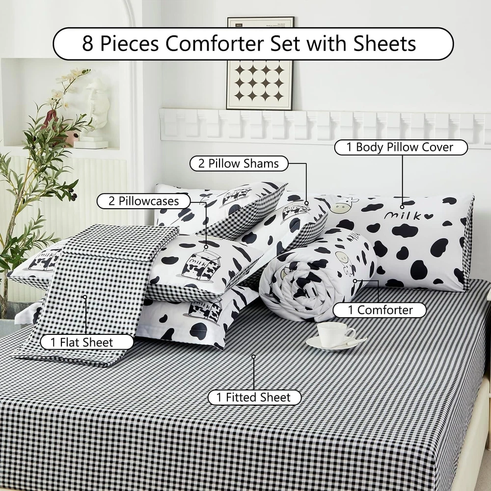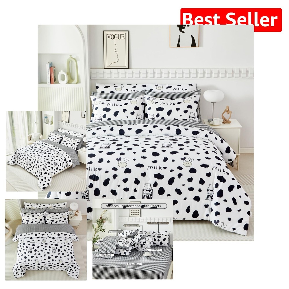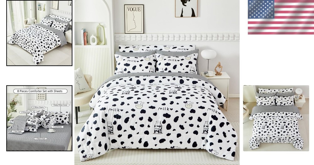 Full Size Black and White Cow Print Comforter Set - Cozy 8-Piece Set for Kids < class="slides"> ‹ › ‹ › ‹ › ‹ › ‹ › ‹ › ‹ › ‹ › ‹ › ‹ › ‹ › Full Size Black and White Cow Print Comforter Set - Cozy 8-Piece Set for Kids Material: 100% Polyester Microfiber, featuring ultra-soft 220GSM whole piece Microfiber inner fill. Dimensions: <> Comforter: 79" x 90" Flat Sheet: 81" x 96" Fitted Sheet: 54" x 75" + 16" Pillowcases: 2 x 20" x 30" Pillow Shams: 2 x 20" x 26" Body Pillow Cover: 20" x 54" Unique Design: <> Reversible comforter with playful cartoon milk cow print on one side Modern black and white geometric checkered pattern on the other side Stylishly designed for teens and adults, perfect for gifting Fashionable Bedroom Decor: <> All-around elastic 16" deep pocket fitted sheets for a snug fit. Beautiful envelope pillowcases and plaid pillow shams enhance your decor. Creates an elegant and gorgeous atmosphere in any bedroom. Easy Care: <> Machine washable in cold water with a gentle cycle, tumble dry on low heat. Arrives compacted in vacuum seal; treat wrinkles in the dryer on low heat. Why Choose Our Cow Print Comforter Set? Elevate your sleeping experience with our Full Size Black and White Cow Print Comforter Set, designed not only to provide warmth and coziness but also to transform your bedroom into a stylish haven. Made from high-quality materials, this comforter set ensures a restful night’s sleep while adding a touch of whimsical charm. Perfect for kids and adults alike, this set is an ideal gift for birthdays or any occasion. Don’t compromise on comfort or style; treat yourself to a night of delightful dreams with our elegant cow print bedding. Order yours today and experience the blend of fun and sophistication! Shipping <> <> Free & Fast Shipping - We offer free shipping to most of the USA with a normal delivery time of 3-7 days. However, due to the current situation, additional delivery time (up to 3 weeks) may be required for some items. Alternative Carriers - We may use alternative carriers (e.g. USPS, FedEx, UPS, etc.) to ensure your package arrives safely and on time. Due to the use of multiple carriers, we are unable to provide a tracking number automatically. Handling Time - Orders are processed and shipped within 1-2 business days of receiving cleared payment. Shipping Restrictions - Shipping to Alaska, Hawaii, Puerto Rico, Guam, and other US territories may incur shipping charges or delivery restrictions. Please contact us before ordering, or your order can be refunded/cancelled. State Restrictions - There may be restrictions based on your state of purchase. For example, certain items may not be shipped to California due to state regulations. Contact for Tracking Updates - If you require tracking updates or have any concerns about the delivery of your order, please feel free to contact us, and we will be happy to assist you. Return <> <> 30-Day Hassle-Free Returns - We want you to be completely satisfied with your purchase. If you are not, you can return the item within 30 days of receiving it for a full refund or exchange. Easy Return Process - To start a return, simply contact us and we will provide you with a prepaid return shipping label and detailed instructions. Restocking Fee - There are no restocking fees for returns. However, the buyer is responsible for return shipping costs if the return is not due to a seller's error. Refund Processing Time - Refunds will be processed within 5 business days of receiving the returned item in its condition. Payment We accept all major credit cards, PayPal, and Apple Pay for your convenience. Your payment information is secure and encrypted to ensure a safe and seamless transaction. Please complete your payment within 3 days of purchase to avoid any delays in shipping. Feedback Your feedback is extremely important to us. We strive to provide the best products and customer service possible. If you are satisfied with your purchase, please take a moment to leave us a positive review. If you have any concerns or issues with your order, please contact us before leaving negative feedback. We are committed to resolving any problems and ensuring your satisfaction. Contact Us If you have any questions or concerns, please feel free to out to our customer support team. You can contact us through the eBay messaging system. We are available Monday to Friday, 9:00 am to 5:00 pm EST, and we will do our best to respond to your inquiry within 24 hours. Buy it now and enjoy a pleasant shopping experience! Set Includes: Comforter Material: Microfiber,Polyester Features: Lightweight,Fluffy,Cozy,Durable Theme: Modern Care Instructions: Do Not Bleach,Machine Wash,Machine Wash Cold,Tumble Dry on Low Heat,Do Not Soak Department: Unisex Baby & Toddler,Kids,Teens,Adults Room: Bedroom Size: Full Type: Comforter Set Color: Black and White Fill Material: Microfiber Pattern: Cow Print Number of Items in Set: 8 Style: Modern Insulation: All Seasons Season: All Seasons Closure Type: No Closure Thread Count: 200 or Less GSM (Grams per Square Meter): 220
