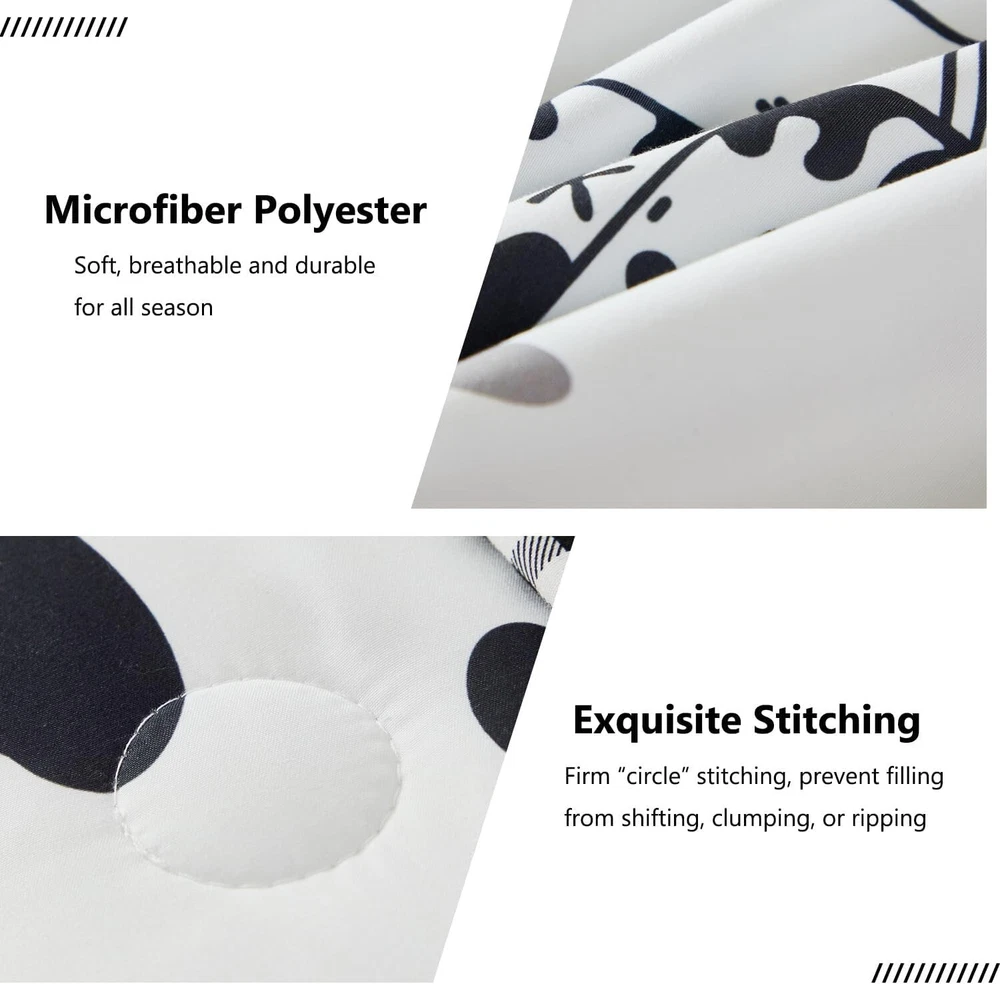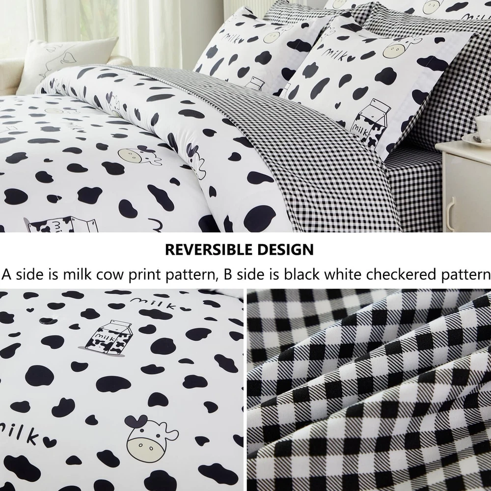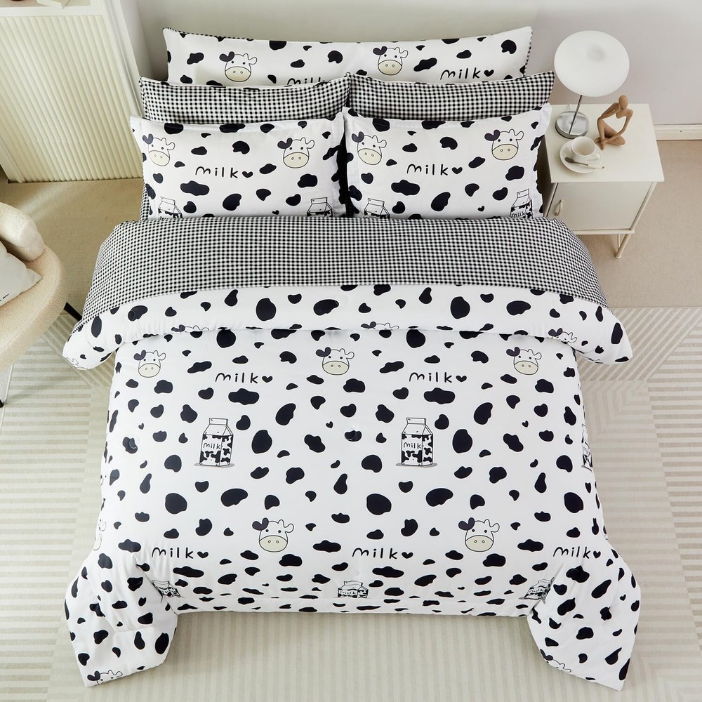 Full Size Black and White Cow Print Comforter Set - Cozy 8-Piece Set for Kids < class="slides"> ‹ › ‹ › ‹ › ‹ › ‹ › ‹ › ‹ › ‹ › ‹ › ‹ › ‹ › Full Size Black and White Cow Print Comforter Set - Cozy 8-Piece Set for Kids Material: 100% Polyester Microfiber, featuring ultra-soft 220GSM whole piece Microfiber inner fill. Dimensions: <> Comforter: 79" x 90" Flat Sheet: 81" x 96" Fitted Sheet: 54" x 75" + 16" Pillowcases: 2 x 20" x 30" Pillow Shams: 2 x 20" x 26" Body Pillow Cover: 20" x 54" Unique Design: <> Reversible comforter with playful cartoon milk cow print on one side Modern black and white geometric checkered pattern on the other side Stylishly designed for teens and adults, perfect for gifting Fashionable Bedroom Decor: <> All-around elastic 16" deep pocket fitted sheets for a snug fit. Beautiful envelope pillowcases and plaid pillow shams enhance your decor. Creates an elegant and gorgeous atmosphere in any bedroom. Easy Care: <> Machine washable in cold water with a gentle cycle, tumble dry on low heat. Arrives compacted in vacuum seal; treat wrinkles in the dryer on low heat. Why Choose Our Cow Print Comforter Set? Elevate your sleeping experience with our Full Size Black and White Cow Print Comforter Set, designed not only to provide warmth and coziness but also to transform your bedroom into a stylish haven. Made from high-quality materials, this comforter set ensures a restful night’s sleep while adding a touch of whimsical charm. Perfect for kids and adults alike, this set is an ideal gift for birthdays or any occasion. Don’t compromise on comfort or style; treat yourself to a night of delightful dreams with our elegant cow print bedding. Order yours today and experience the blend of fun and sophistication! Shipping <> <> Free & Fast Shipping - We offer free shipping to most of the USA with a normal delivery time of 3-7 days. However, due to the current situation, additional delivery time (up to 3 weeks) may be required for some items. Alternative Carriers - We may use alternative carriers (e.g. USPS, FedEx, UPS, etc.) to ensure your package arrives safely and on time. Due to the use of multiple carriers, we are unable to provide a tracking number automatically. Handling Time - Orders are processed and shipped within 1-2 business days of receiving cleared payment. Shipping Restrictions - Shipping to Alaska, Hawaii, Puerto Rico, Guam, and other US territories may incur shipping charges or delivery restrictions. Please contact us before ordering, or your order can be refunded/cancelled. State Restrictions - There may be restrictions based on your state of purchase. For example, certain items may not be shipped to California due to state regulations. Contact for Tracking Updates - If you require tracking updates or have any concerns about the delivery of your order, please feel free to contact us, and we will be happy to assist you. Return <> <> 30-Day Hassle-Free Returns - We want you to be completely satisfied with your purchase. If you are not, you can return the item within 30 days of receiving it for a full refund or exchange. Easy Return Process - To start a return, simply contact us and we will provide you with a prepaid return shipping label and detailed instructions. Restocking Fee - There are no restocking fees for returns. However, the buyer is responsible for return shipping costs if the return is not due to a seller's error. Refund Processing Time - Refunds will be processed within 5 business days of receiving the returned item in its condition. Payment We accept all major credit cards, PayPal, and Apple Pay for your convenience. Your payment information is secure and encrypted to ensure a safe and seamless transaction. Please complete your payment within 3 days of purchase to avoid any delays in shipping. Feedback Your feedback is extremely important to us. We strive to provide the best products and customer service possible. If you are satisfied with your purchase, please take a moment to leave us a positive review. If you have any concerns or issues with your order, please contact us before leaving negative feedback. We are committed to resolving any problems and ensuring your satisfaction. Contact Us If you have any questions or concerns, please feel free to out to our customer support team. You can contact us through the eBay messaging system. We are available Monday to Friday, 9:00 am to 5:00 pm EST, and we will do our best to respond to your inquiry within 24 hours. Buy it now and enjoy a pleasant shopping experience! Set Includes: Comforter Material: Microfiber,Polyester Features: Lightweight,Fluffy,Cozy,Durable Theme: Modern Care Instructions: Do Not Bleach,Machine Wash,Machine Wash Cold,Tumble Dry on Low Heat,Do Not Soak Department: Unisex Baby & Toddler,Kids,Teens,Adults Room: Bedroom Size: Full Type: Comforter Set Color: Black and White Fill Material: Microfiber Pattern: Cow Print Number of Items in Set: 8 Style: Modern Insulation: All Seasons Season: All Seasons Closure Type: No Closure Thread Count: 200 or Less GSM (Grams per Square Meter): 220