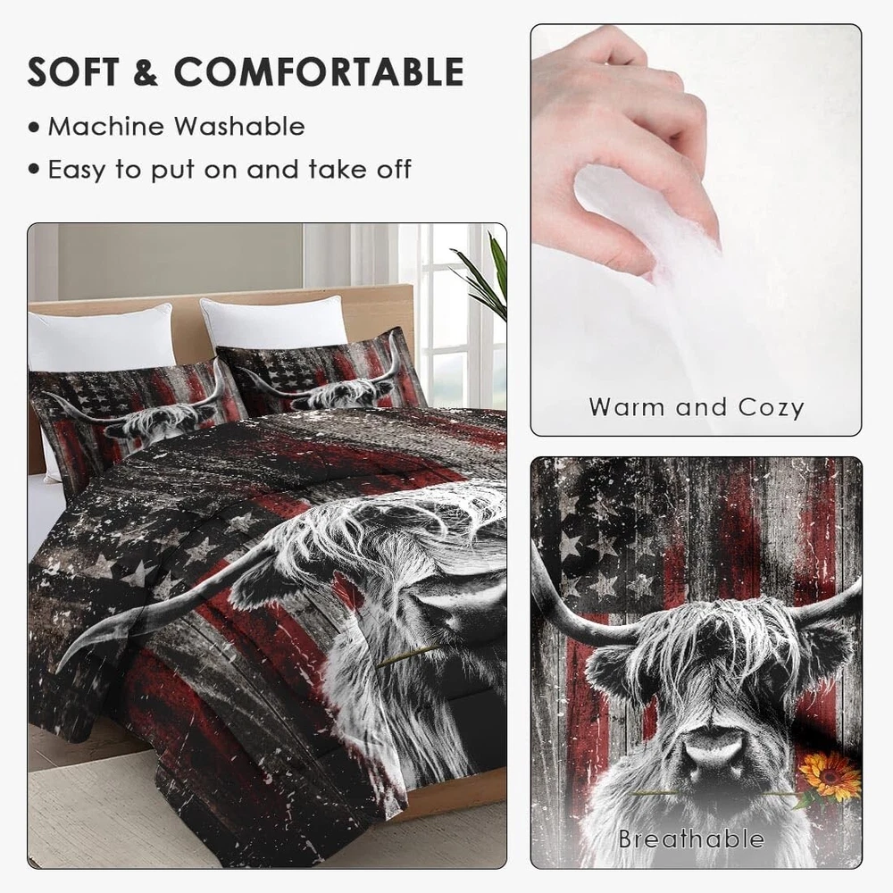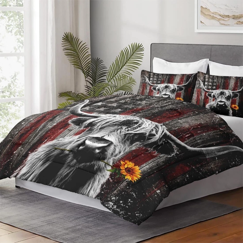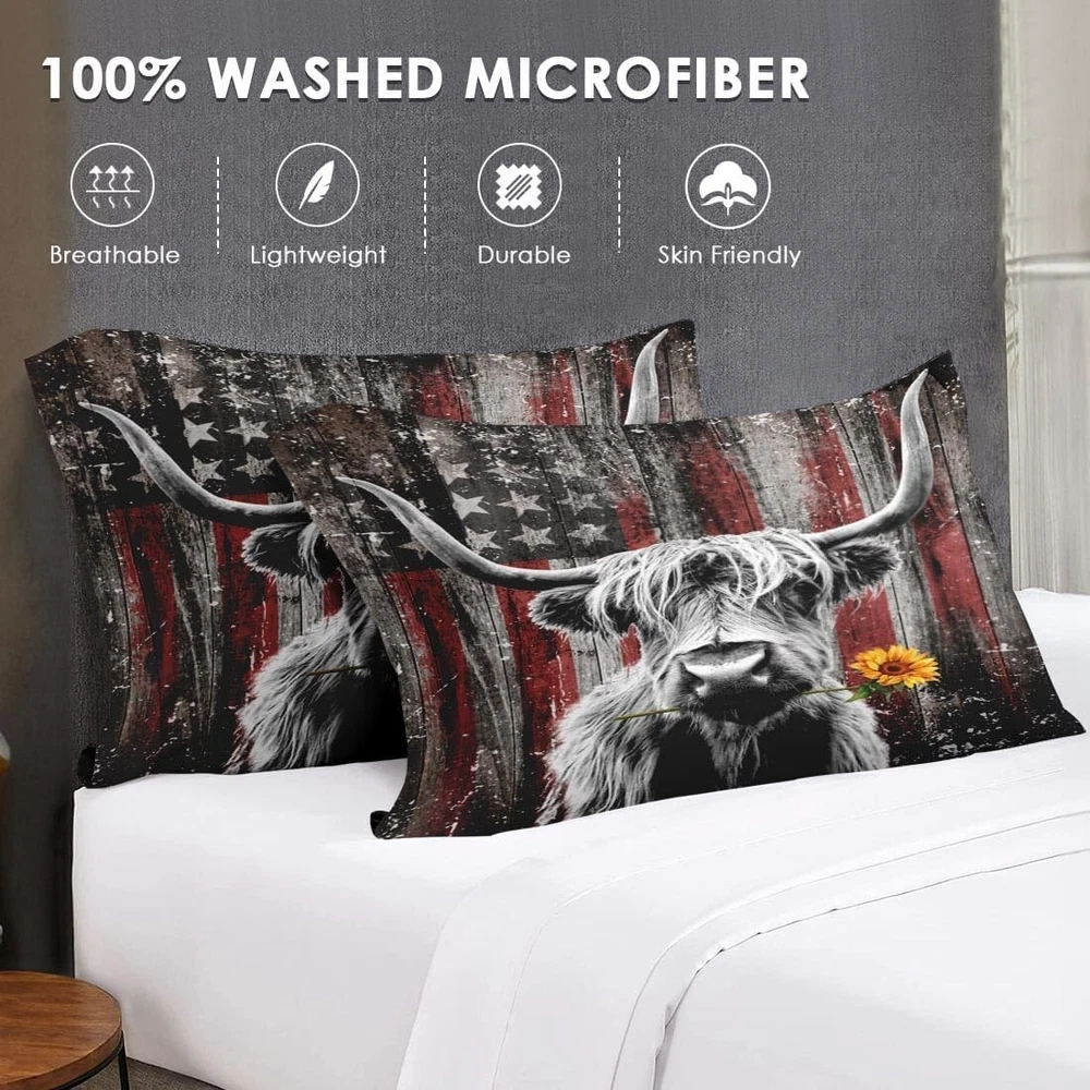 Absolutely love this comforter set! The highland cow design is adorable and adds a fun touch to my bedroom. The microfiber material is unbelievably soft—it feels like sleeping in a cozy hug. Perfect size, stays in place, and washes well without fading. The pillowcases complete the look beautifully. Such great quality for the price—definitely recommend!