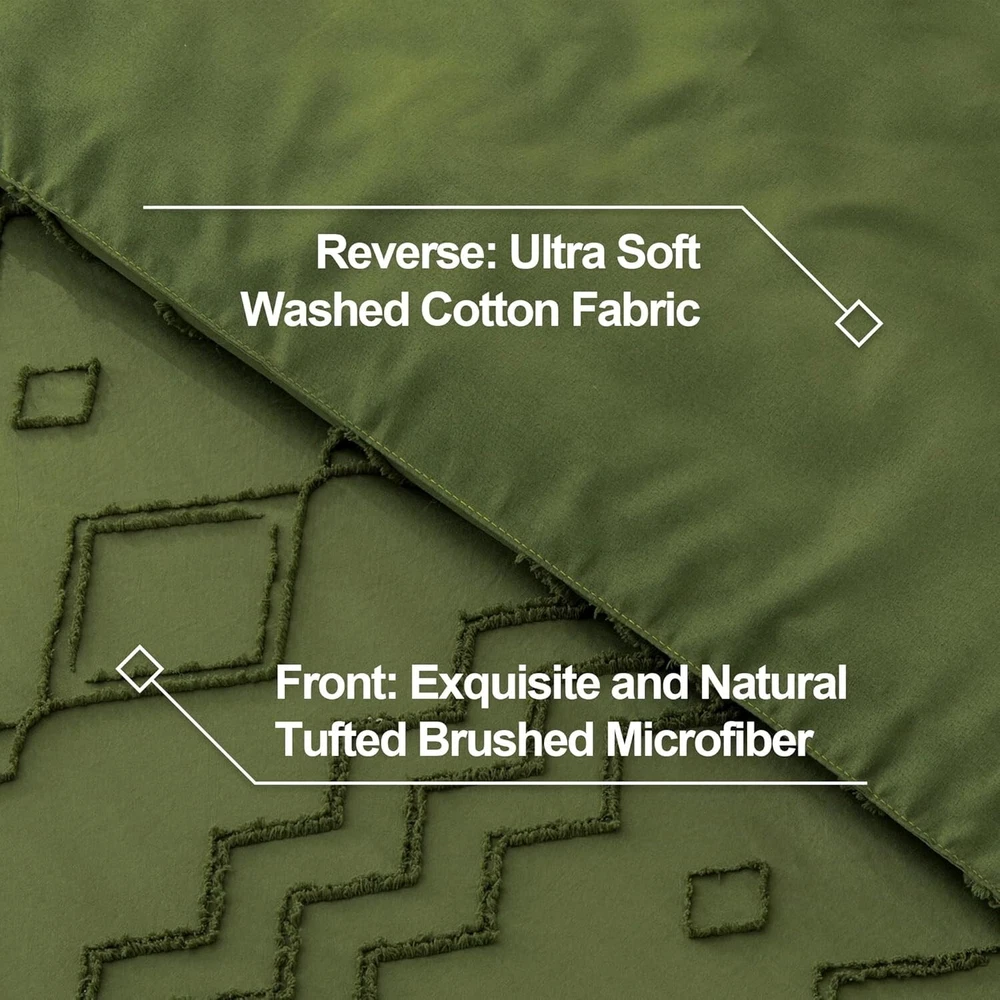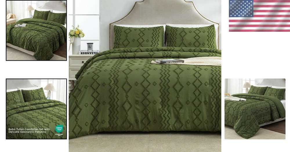 Full Tufted Comforter Set in Olive Green - Soft Microfiber & Geometric Pattern ‹ › ‹ › ‹ › ‹ › ‹ › ‹ › ‹ › ‹ › ‹ › Full Tufted Comforter Set in Olive Green - Soft Microfiber & Geometric Pattern Features: Tufted Design: Boho comforter set features a classic tufted design with solid olive green color complemented by delicate geometric patterns. The minimalist style is both stylish and sophisticated, perfect for refreshing any bedroom. Soft & Comfortable: Made from microfiber, this duvet offers exceptional breathability and softness. The cloud-like texture ensures cozy, warm sleep throughout every season. Thoughtful Details: Unique microfiber filling technology keeps the comforter lightweight and fluffy. Hidden neat stitching prevents shifting and clumping after washing, ensuring lasting quality. What You Can Get: This full-size set includes one comforter (79*90 inches) and two pillowcases (20*26 inches) without inserts. The envelope-style pillowcases are easy to wash and replace, with unique patterns due to manual cutting. Easy Care: Crafted with high-density fabric for durability, this comforter is machine washable in cold water on a gentle cycle. Tumble dry at low temperature; do not bleach. Benefits: Elevates bedroom aesthetics with its luxurious tufted design. Soft microfiber ensures ultimate comfort for -round use. Lightweight yet warm, perfect for cozy nights. Durable construction guarantees long-lasting use and easy maintenance. An elegant addition that suits various decor styles. Why choose our Full Tufted Comforter Set? Transform your bedroom into a serene oasis with our Full Tufted Comforter Set in Olive Green. Its exquisite combination of soft microfiber, elegant tufted design, and geometrical patterns will instantly elevate your space. Enjoy the soft, breathable comfort that adapts to all seasons while adding a touch of sophistication to your decor. Each set offers thoughtful details and easy care, ensuring your bedding remains pristine and fluffy for to come. Indulge in the ultimate bedroom experience—order your Full Tufted Comforter Set today! Shipping Free & Fast Shipping - We offer free shipping to most of the USA with a normal delivery time of 3-7 days. However, due to the current situation, additional delivery time (up to 3 weeks) may be required for some items. Alternative Carriers - We may use alternative carriers (e.g. USPS, FedEx, UPS, etc.) to ensure your package arrives safely and on time. Due to the use of multiple carriers, we are unable to provide a tracking number automatically. Handling Time - Orders are processed and shipped within 1-2 business days of receiving cleared payment. Shipping Restrictions - Shipping to Alaska, Hawaii, Puerto Rico, Guam, and other US territories may incur shipping charges or delivery restrictions. Please contact us before ordering, or your order can be refunded/cancelled. State Restrictions - There may be restrictions based on your state of purchase. For example, certain items may not be shipped to California due to state regulations. Contact for Tracking Updates - If you require tracking updates or have any concerns about the delivery of your order, please feel free to contact us, and we will be happy to assist you. Return 30-Day Hassle-Free Returns - We want you to be completely satisfied with your purchase. If you are not, you can return the item within 30 days of receiving it for a full refund or exchange. Easy Return Process - To start a return, simply contact us and we will provide you with a prepaid return shipping label and detailed instructions. Restocking Fee - There are no restocking fees for returns. However, the buyer is responsible for return shipping costs if the return is not due to a seller's error. Refund Processing Time - Refunds will be processed within 5 business days of receiving the returned item in its condition. Payment We accept all major credit cards, PayPal, and Apple Pay for your convenience. Your payment information is secure and encrypted to ensure a safe and seamless transaction. Please complete your payment within 3 days of purchase to avoid any delays in shipping. Feedback Your feedback is extremely important to us. We strive to provide the best products and customer service possible. If you are satisfied with your purchase, please take a moment to leave us a positive review. If you have any concerns or issues with your order, please contact us before leaving negative feedback. We are committed to resolving any problems and ensuring your satisfaction. Contact Us If you have any questions or concerns, please feel free to out to our customer support team. You can contact us through the eBay messaging system. We are available Monday to Friday, 9:00 am to 5:00 pm EST, and we will do our best to respond to your inquiry within 24 hours. Buy it now and enjoy a pleasant shopping experience! Set Includes: Comforter,Pillowcase Material: Microfiber Features: Breathable,Down Alternative,Soft,Comfortable Theme: Boho, Geometric, Tufted Care Instructions: Do Not Bleach,Machine Wash Department: Adults Room: Bedroom Size: Full Type: Comforter Set Color: Olive Green Fill Material: Microfiber Pattern: Geometric Insulation: All Seasons Number of Items in Set: 3 Style: Farmhouse Season: All Closure Type: No Closure Thread Count: 200 or Less GSM (Grams per Square Meter): Below 150
