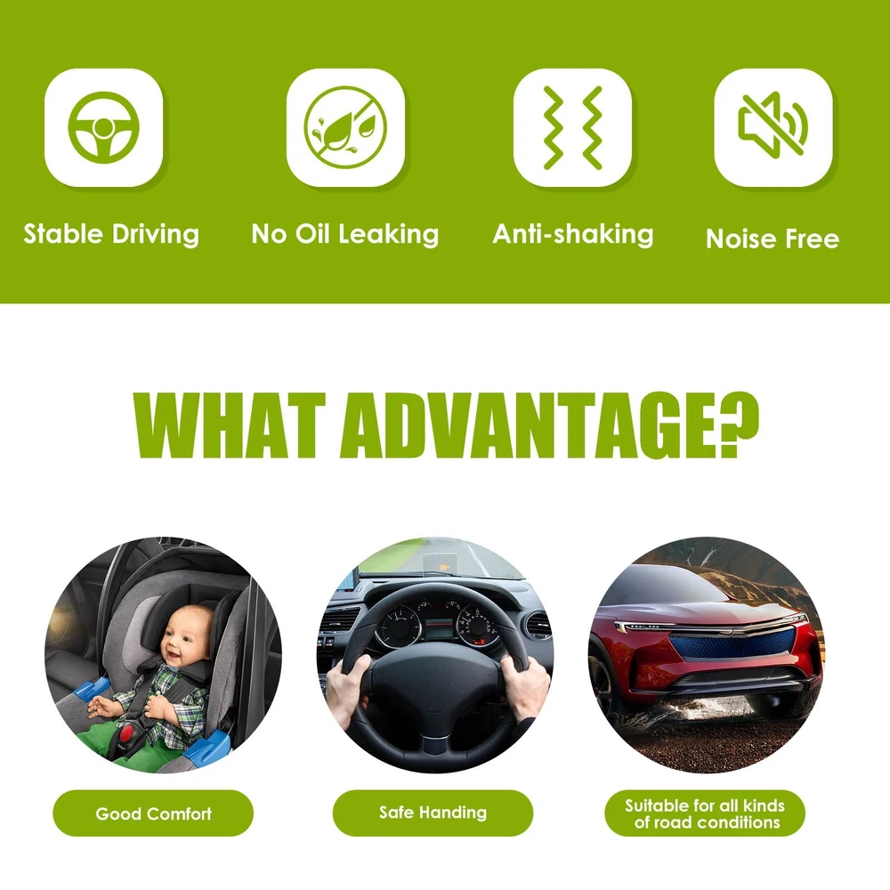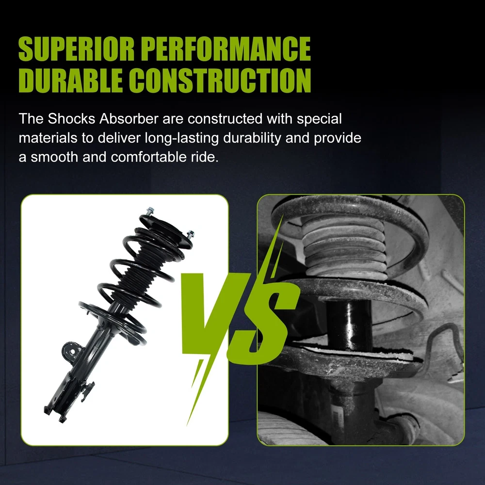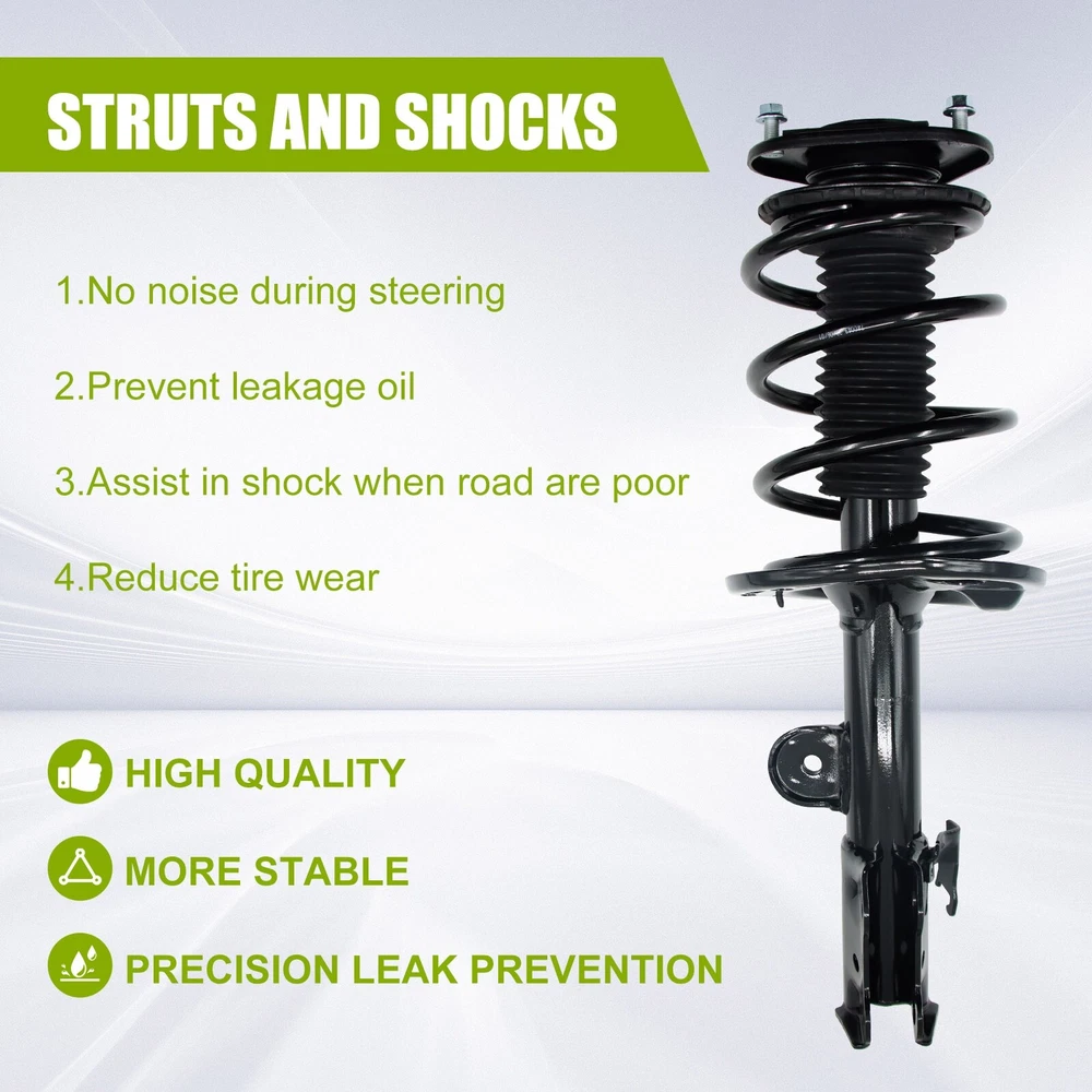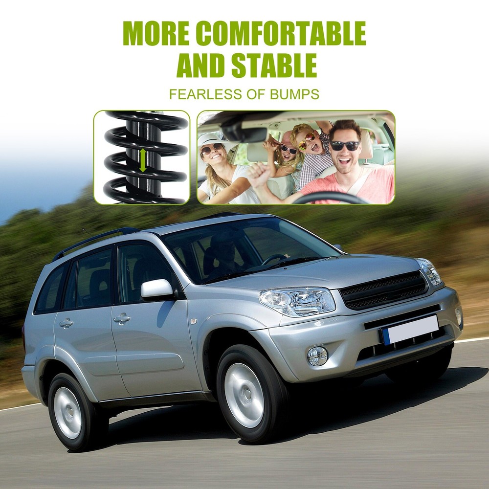 Compatibility should be checked and confirmed before placing order! Steps of confirming the compatibilities: Manage " My Garage ", and chose the right one when placing order; Or chose the " Year / Make / Model / Trim / Engine " of your vehicle on the compatible chart; Or Contact us if you have any question in confirming the compatibility, to make sure you will get the right and compatible item. Specification Type: Strut & Spring Assembly Material: Metal Color: Black Surface Finish : Rust Protected Placement on Vehicle: Front, Left, Right Unit: 2 OE/OEM Part Number: 172276, 172275 Interchange Part Number: 172276, 172275 Shock Absorber Type: Gas Package Dimensions (LengthxWidthxHeight:inch): 23.62*14.96*7.48 Package Weight (LB): 35.27 Fitment 2006-2012 Toyota RAV4 Features & Benefits 1. Superior Performance: The Shocks Absorber are designed to provide a smooth and comfortable ride while enhancing your car's handling and control on the road. 2. Durable Construction: The Shocks Absorber are constructed with high-quality materials to deliver long-lasting durability and reliability. Their strong build ensures that they withstand the toughest driving conditions and last for many miles to come. 3. Easy Installation: These Shocks are easy to install and require no special tools or skills. They come with detailed instructions that make the installation process quick and straightforward. 4. Improved Safety: The Shocks are designed to improve your car's safety by providing increased stability and control on the road. They offer better braking performance and help prevent accidents caused by unstable and unpredictable driving. 5. Compatibility: These Shocks are designed to fit SPECIFIC car. They are an exact match for the original equipment manufacturer specifications, ensuring perfect compatibility and performance. 6.Some tips before installation: >In order to ensure the consistency of the shock absorber, it is best to choose the shock absorber to be replaced in pairs. >The bearing on the top of the shock absorber should be lubricated (grease), and the waterproof dust cover must be put in place to ensure that it is not damaged. >It is particularly difficult to remove the end nut of the telescopic tappet of the shock absorber (the spring must be fastened with an iron wire), and it is easier to install. >When installing the ball head (suspender) of the balance bar, press down with an iron rod to install it smoothly. >Highly recommended for professional installation.
