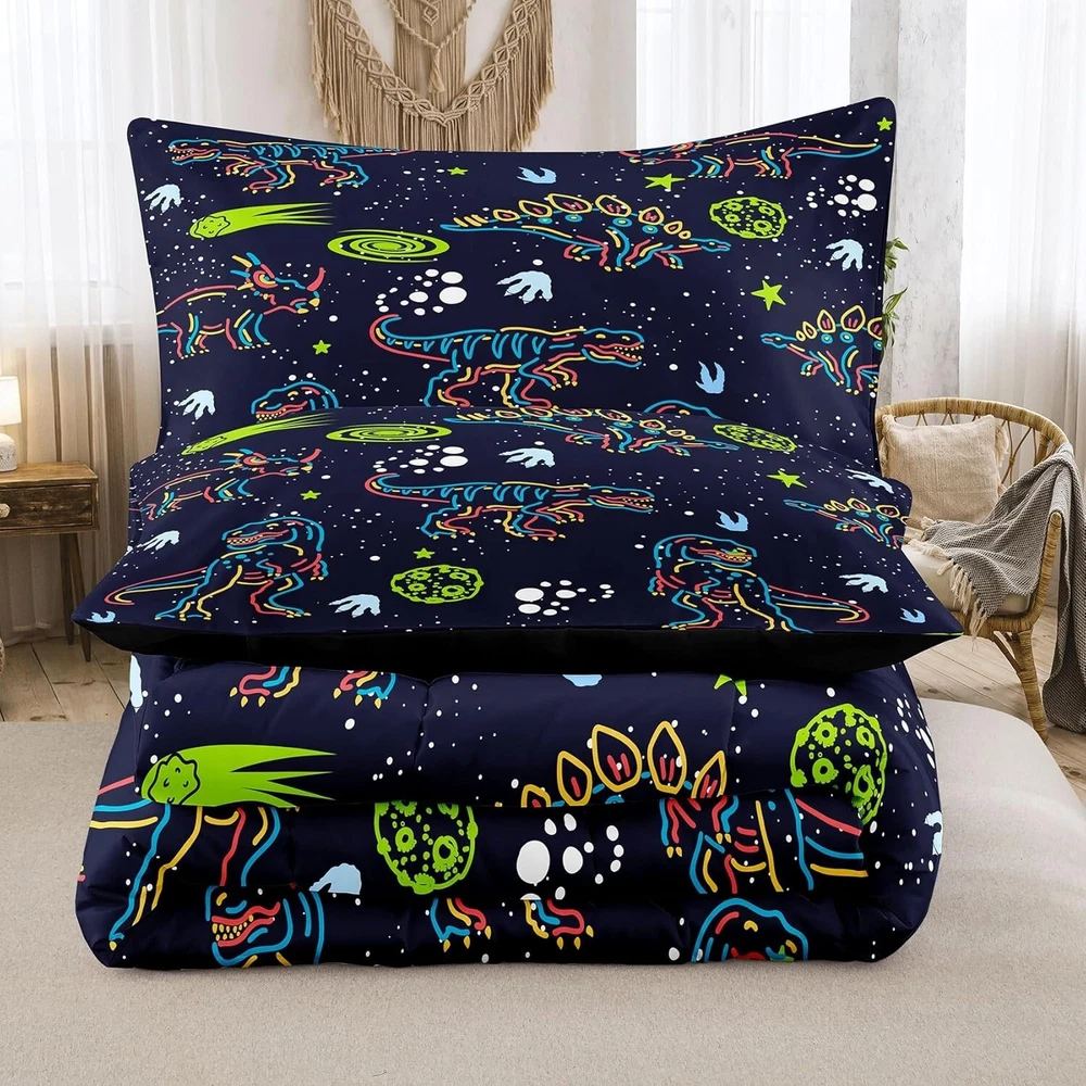 This dinosaur-themed comforter set is a total hit with my little one! The soft microfiber feels cozy, and the playful cartoon prints make bedtime fun. It’s durable, washes well, and instantly brightens up the room. Perfect gift for dino-loving kids—they won’t want to sleep without it!