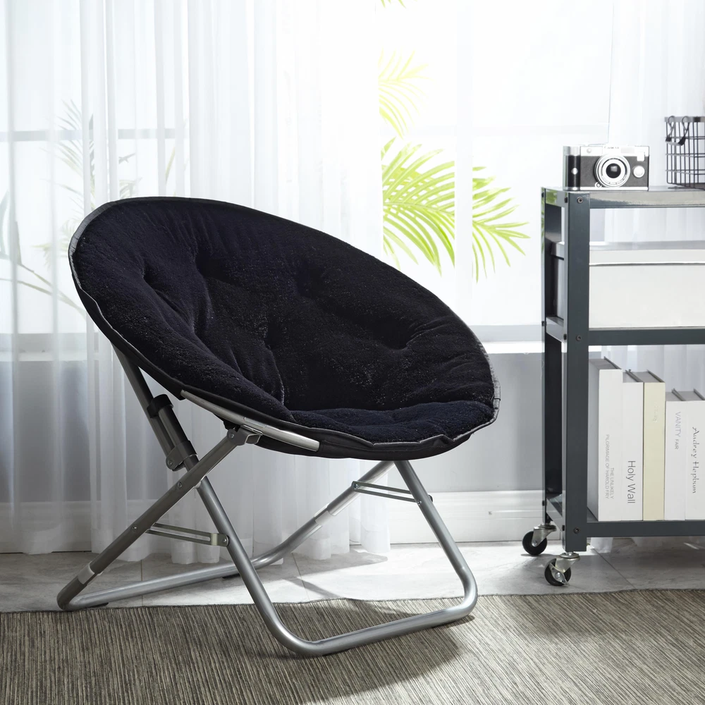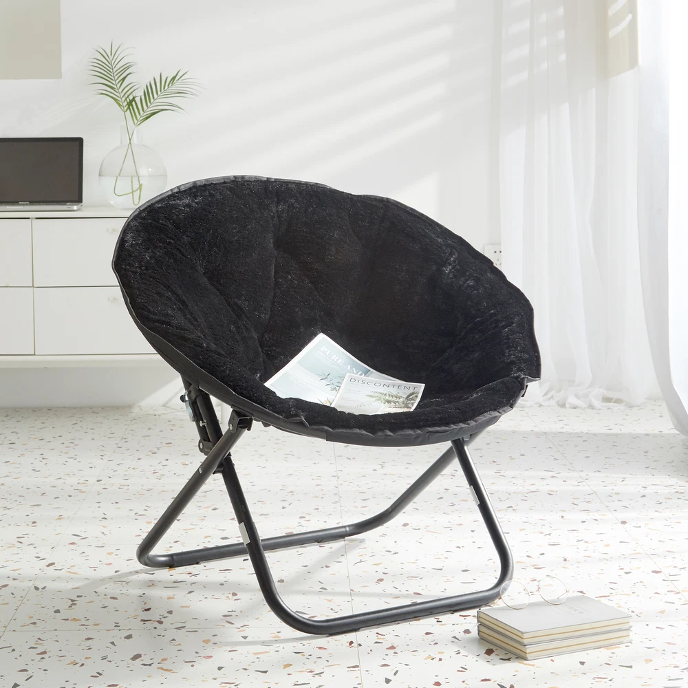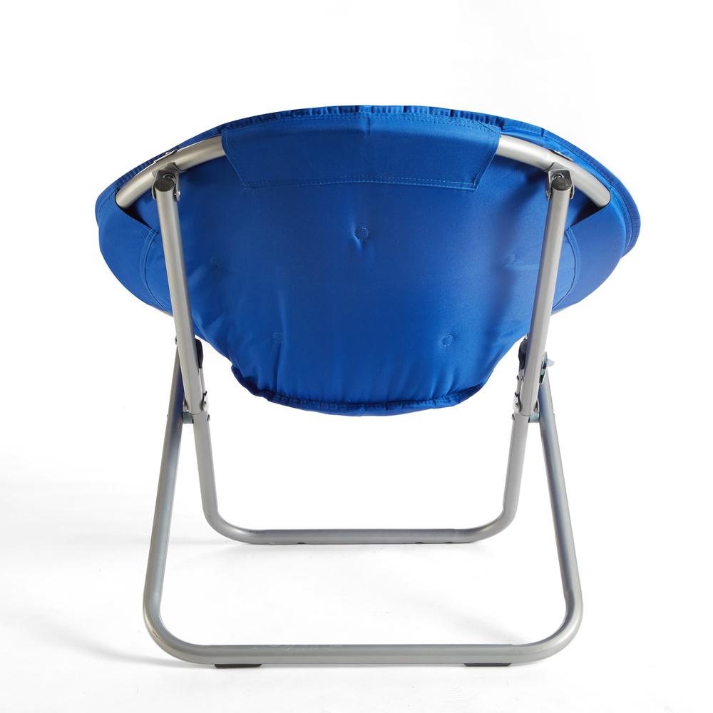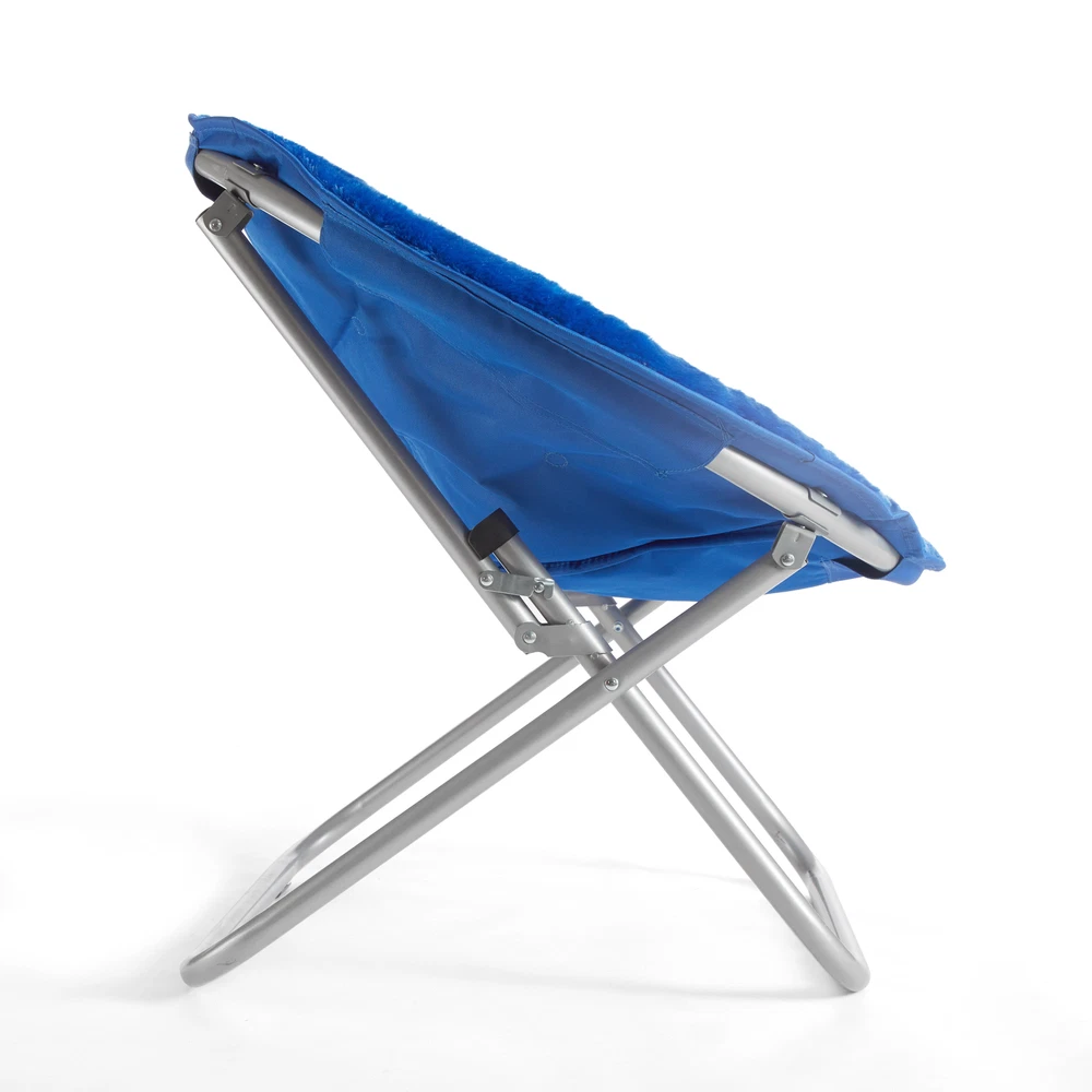 Fur Faux Saucer Chair Folding Steel Frame Portable for Living Room Bedroom, Blue Hinged The Mainstays saucer chair's cushion is made from durable, plush 100 percent polyester upholstery. The faux-fur material is soft and cuddly to the touch. A foldable steel frame supports up to 225 lbs and folds flat when not in use, making it easy to hide this saucer chair out of sight without taking up a significant amount of room in tight spaces. Add additional seating to living rooms, bedrooms, rec rooms and other areas of your home or apartment with this fun furniture piece. The Mainstays faux fur saucer chair's selection of multiple colors makes it simple to choose the right design for any space. Add a fun, cozy touch to dorm rooms, lofts, reading nooks and more with this comfy seat. Provide a convenient place for friends to sit while visiting with this Mainstays saucer chair. No assembly is required, just fold open and sit down to start using this comfortable, portable furniture piece. Mainstays Faux-Fur Saucer Chair, Multiple Colors: Soft, wide seat Foldable steel frame Cool faux fur fabric Great for lounging, dorms or any room 100 percent polyester upholstery Weight capacity: 225 lbs No assembly required Dimensions: 30"L x 28"W x 29"H Available in various colors Faux fur chair adds a colorful and cozy decorative touch to rooms Directions Fabric Care Instructions: Spot clean Assembled Product Dimensions (L x W x H) 30.00 x 28.00 x 29.00 Inches Color Blue Brand Mainstays Actual Color Blue Manufacturer Part Number WK659842 Lifestage Child. Teen Recommended Location Indoor Set Includes Chair Upholstery Fabric Faux Fur Room Living Room, Home Office/Study, Bedroom, Hallway Frame Material Steel Features Armless, Padded Seat, Upholstered Indoor/Outdoor Indoor Additional Parts Required N Assembly Status Fully Assembled MPN WK659842