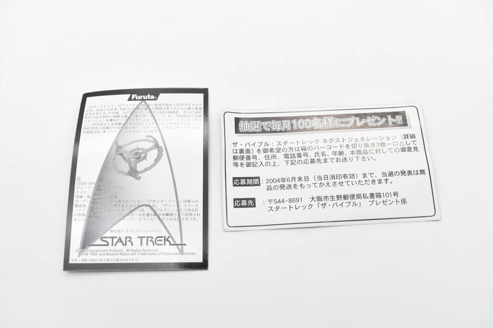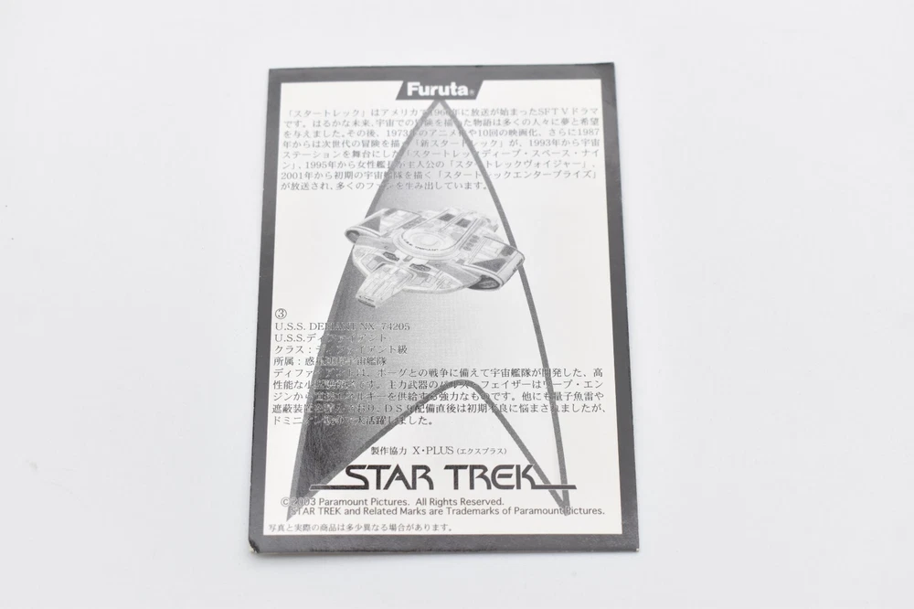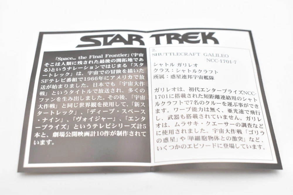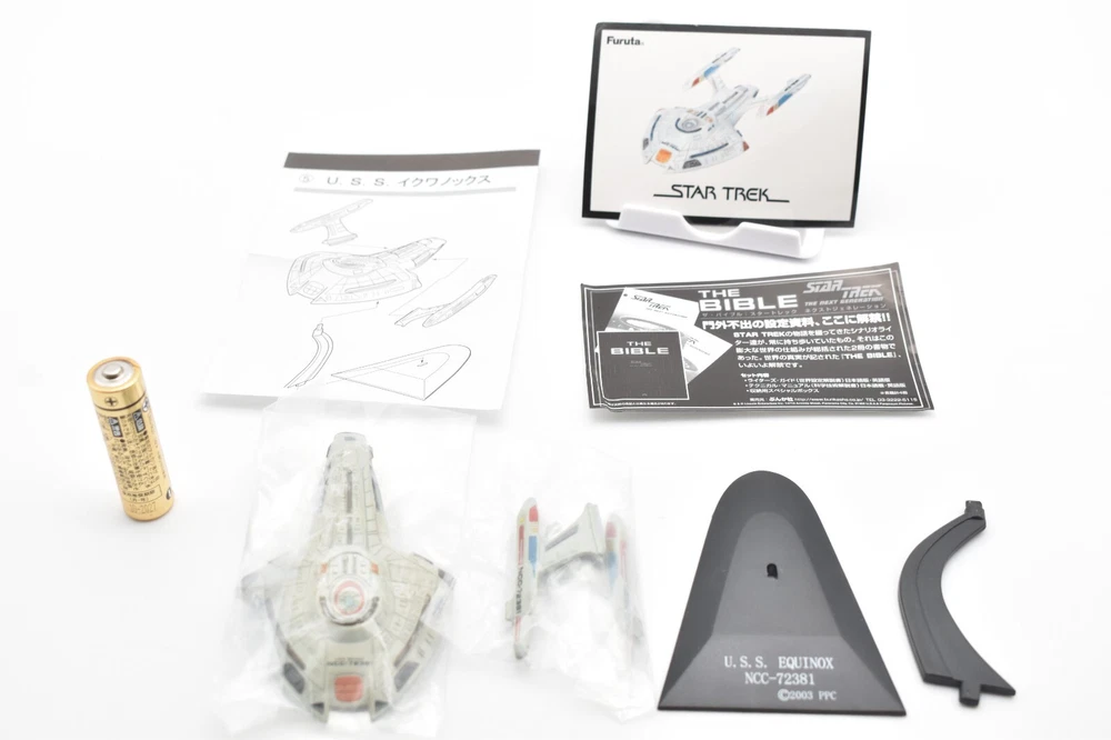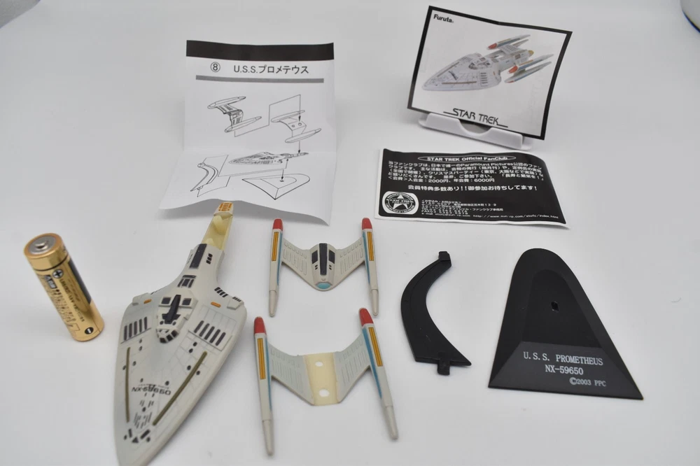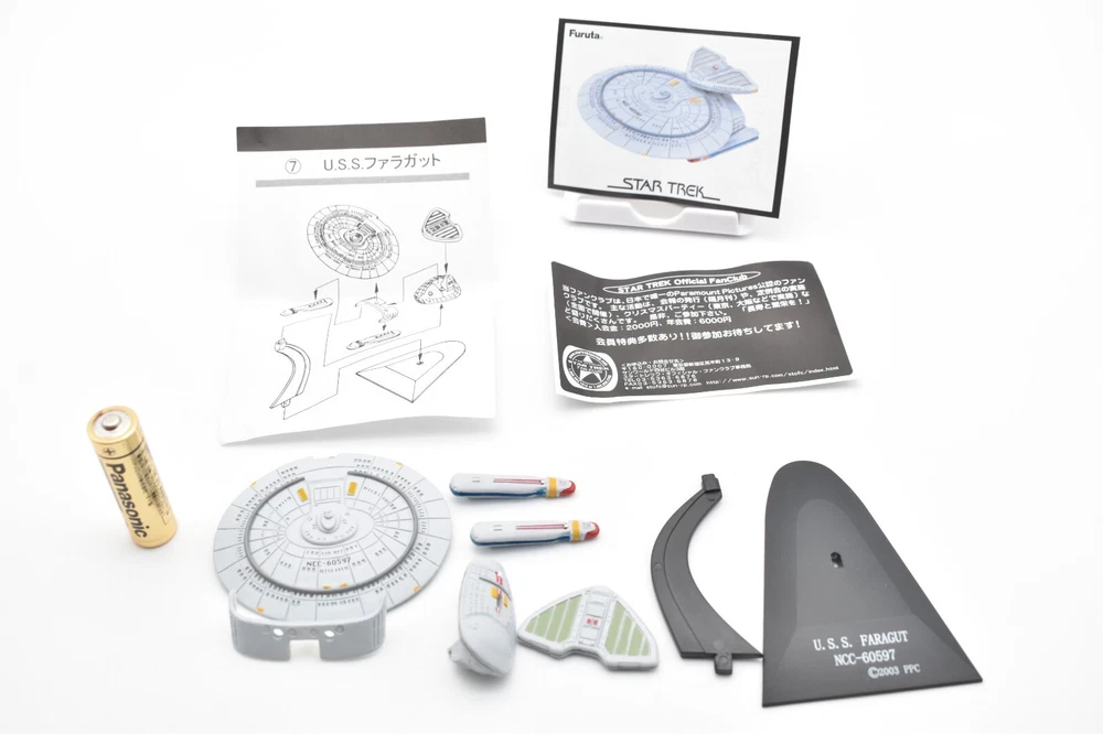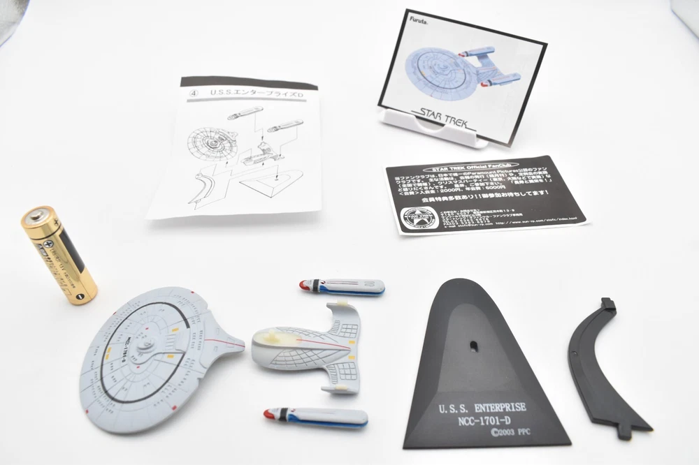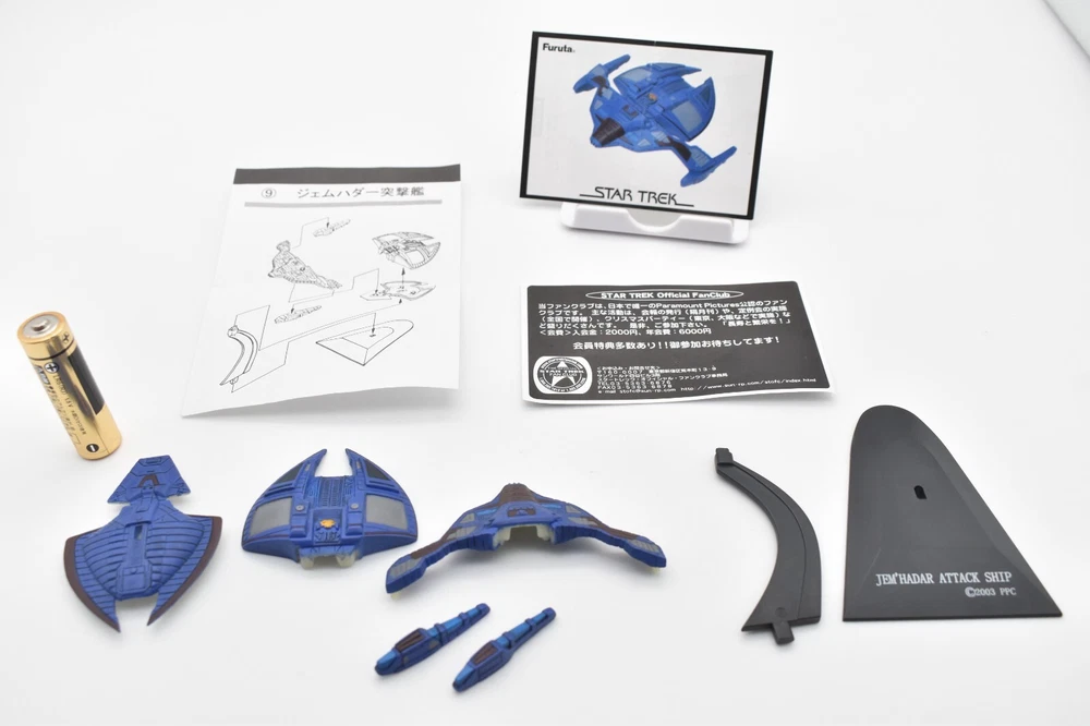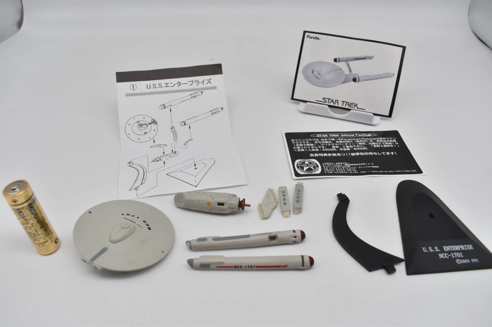 Description About This Items Furuta Star Trek Figure (Series1, Series2, Alpha & Beta) Released in 2003-2005. No matter how many starships you buy, shipping costs are the same. 2 buy get 10% off. 3 buy get 15% off. 4 or more buy get 20% off. To get shipping and multiple purchase discounts, add to cart and pay at once. Series 1 Released in 2003 in Japan. Normal 10 types and Secret 1 type. 1-1.U.S.S. ENTERPRISE NCC-1701-A 1-2. U.S.S. RELIANT NCC-1864 1-3. U.S.S. DEFIANT NX-74205 1-4. U.S.S. STAR GAZER NCC-2893 1-5. U.S.S. EQUINOX NCC-72381 1-6.DEEP SPACE NINE 1-7.KLINGON BIRD OF PREY 1-8. KLINGON ATTACK CRUISER 1-9.SPECIES 8472 BIO-SHIP 1-10.GALOR-CLASS WARSHIP 1-SECRET.ROMULAN WARBIRD Series 2 Released in 2004 in Japan. Normal 10 types and Secret 1 type. 2-1.U.S.S. ENTERPRISE NCC-1701 2-2.U.S.S. ENTERPRISE NCC-1701-B 2-3.U.S.S. ENTERPRISE NCC-1701-C 2-4.U.S.S. ENTERPRISE NCC-1701-D 2-5.Future U.S.S. ENTERPRISE NCC-1701-D 2-6.U.S.S VOYAGER 2-7.U.S.S. FARRAGUT NCC-60597 2-8.U.S.S. PROMETHEUS NX-59650 2-9.JEM' HADAR ATTACK SHIP 2-10.FERENGI MARAUDER 2-SECRET. U.S.S. ENTERPRISE NCC-1701-E Alpha Released in 2005 in Japan. Normal 5 types. Alpha-1.U.S.S. EXCELSIOR NCC-2000 Alpha-2.SHUTTLECRAFT GALILEO NCC-1701-7 Alpha-3.U.S.S. GRISSOM NCC-638 Alpha-4.PHOENIX Alpha-5.SPOCK Beta Released in 2005 in Japan. Normal 5 types. Beta-1.U.S.S. ENTERPRISE NCC-1701 Beta-2.U.S.S. PASTEUR NCC-58925 Beta-3.U.S.S RIO GRANDE NCC-72452 Beta-4.KAZON RAIDER Beta-5.BORG CUBE Appearance Good condition. There may be some scratches. Please check the photos for the condition of the item. Size:About 12cm x 10cm x 10cm Condition Used Included Items Figure x1 (Unassembled) Instruction x1 (or x2. photo as is) AA battery is for size indication only, not included Shipping Economy Shipping: No compensation. No tracking. It will be sent by US mail from Japan Post. You can see the USPS delivery status on eBay. It will arrive in about 2 weeks in the shortest. Standard Shipping: Registered Mail. With compensation and tracking. It will arrive in about 2 weeks in the shortest. Shipping is only available to the address registered in eBay. If you want us to send another address, please change your address on eBay and then place an order. Shipping is available from Monday to Friday. Weekends are not available because freight (shipping) companies are closed. We do not mark merchandise values below value or mark items as "gifts" - Japan, US and International government regulations prohibit such behavior. About Importer's Obligation Import duties, taxes, and charges are not included in the item price or shipping cost. These charges are the buyer's responsibility. Please check with your country's customs office to determine what these additional costs will be prior to bidding or buying. Thank you for your understanding. About us Thank you for visiting. We handle Japanese products from Tokyo Japan. The products we deal with are 100% authentic. If the item is used, we will take a photo of each item. Please check the photos carefully before purchasing. If the product you receive is different from the photos, we will refund your money. If you have any questions, please feel free to contact us. Thank you. Tokyo Explorer