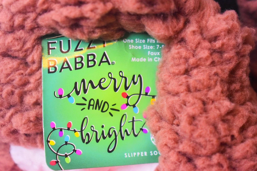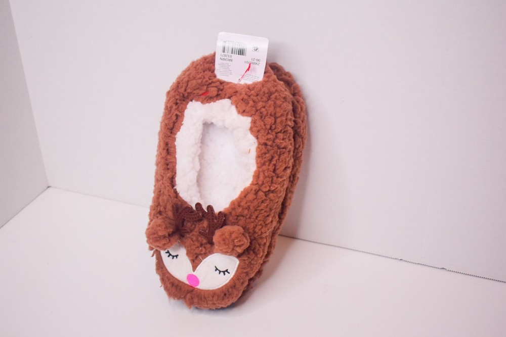 Fuzzy Babba Cozy Slipper Socks Reindeer Size 7-9.5 Brown White NWT NEW Winter.