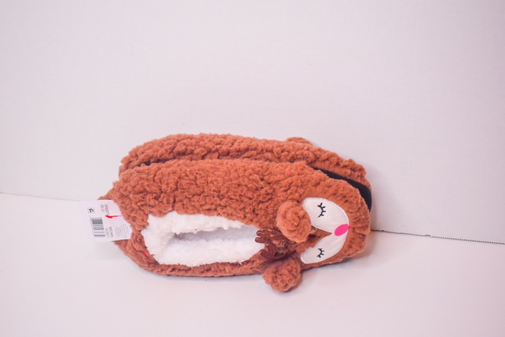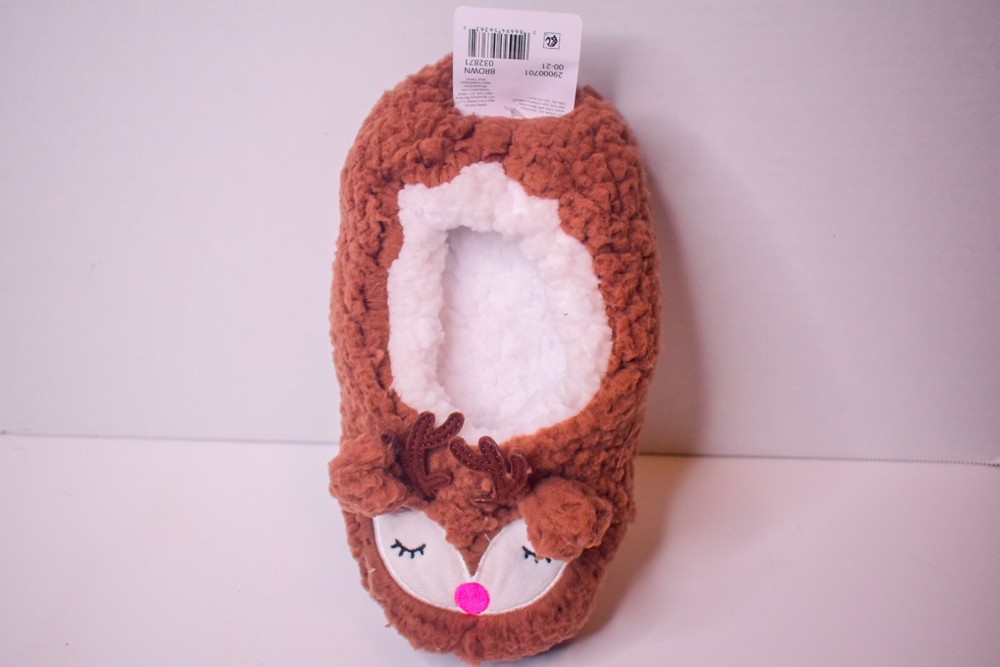 Fuzzy Babba Cozy Slipper Socks Reindeer Size 7-9.5 Brown White NWT NEW Winter....